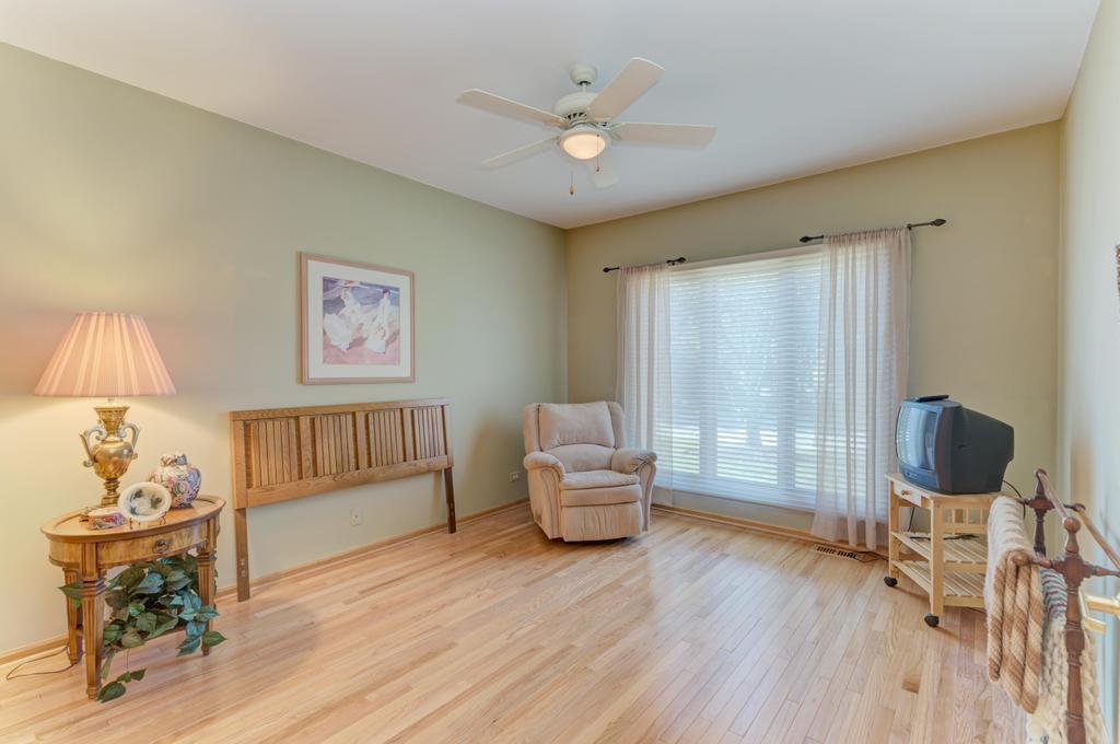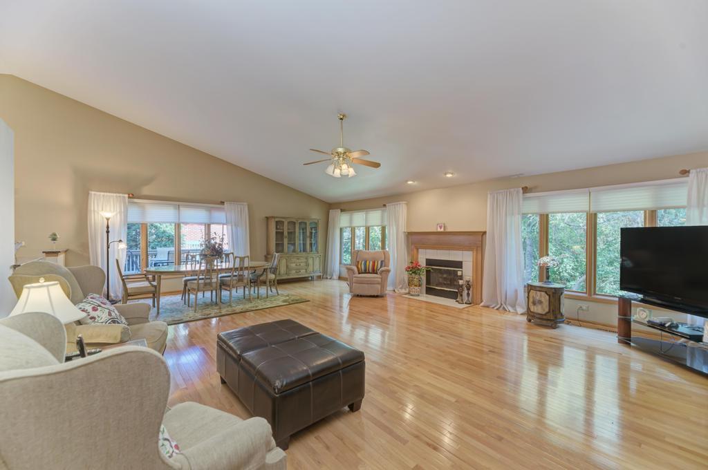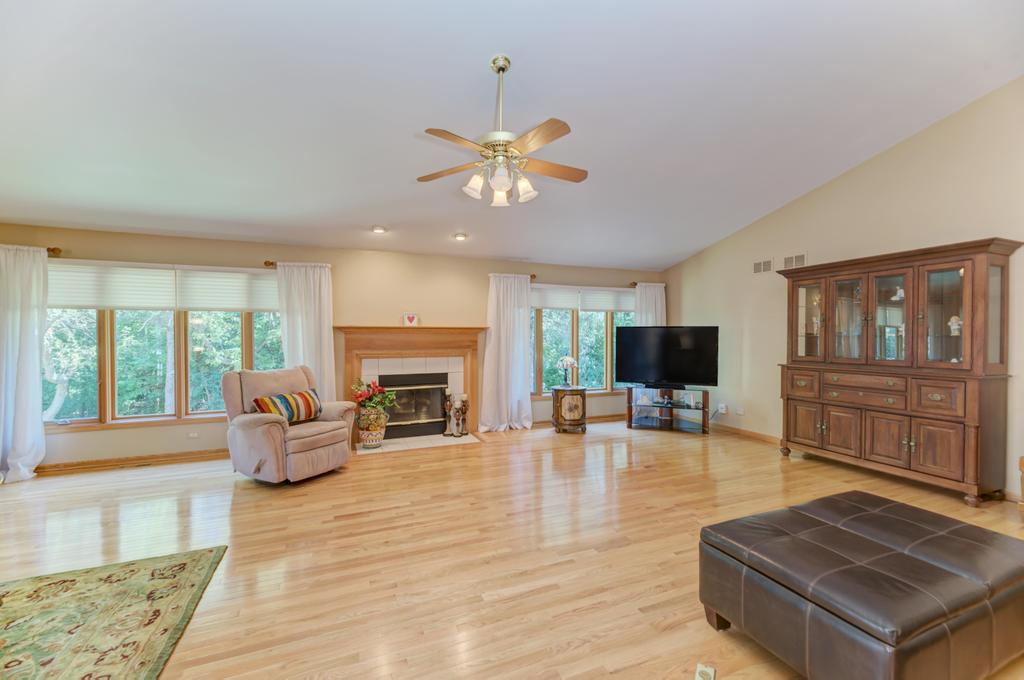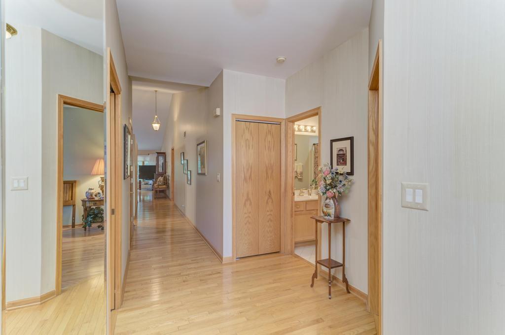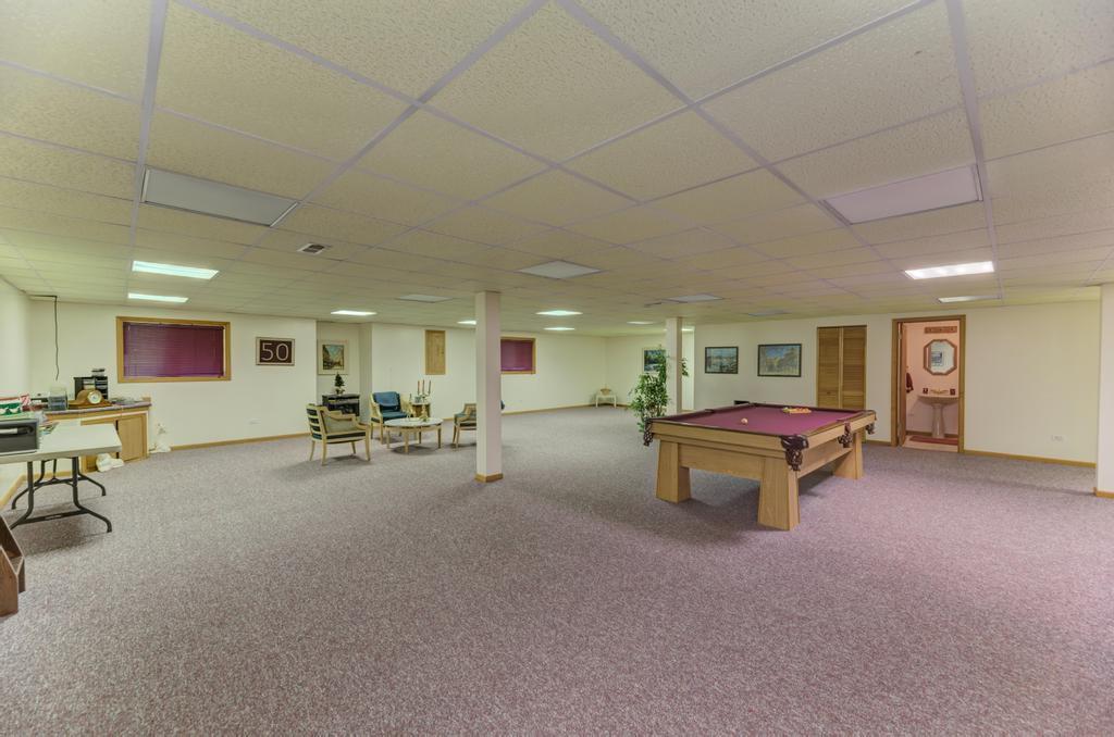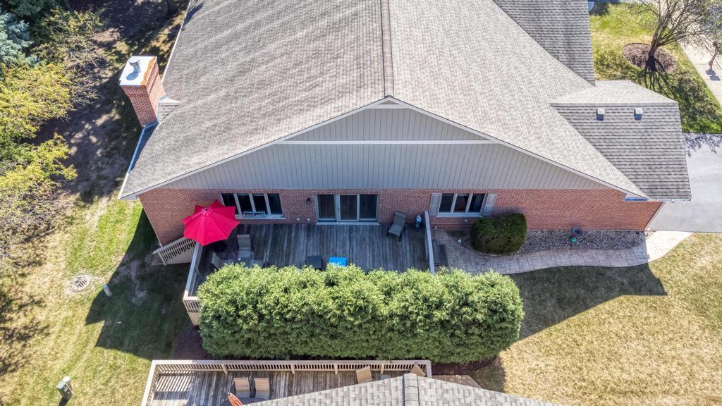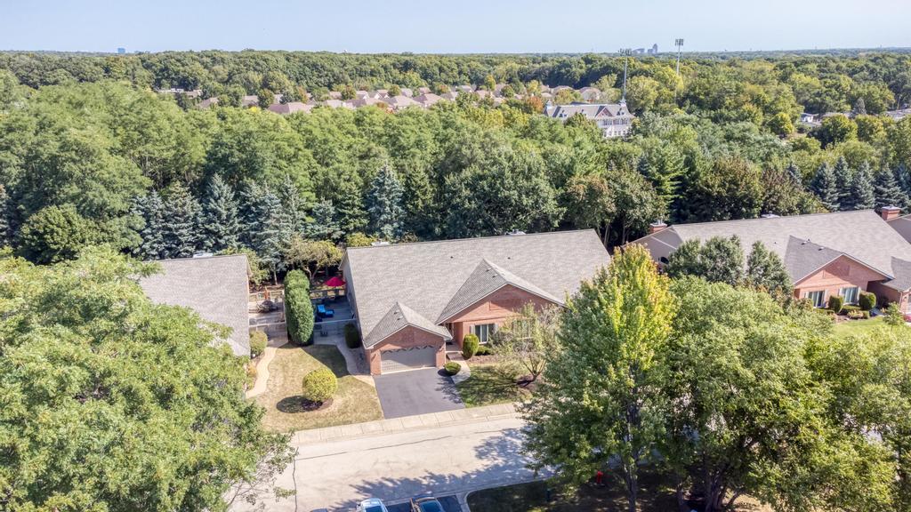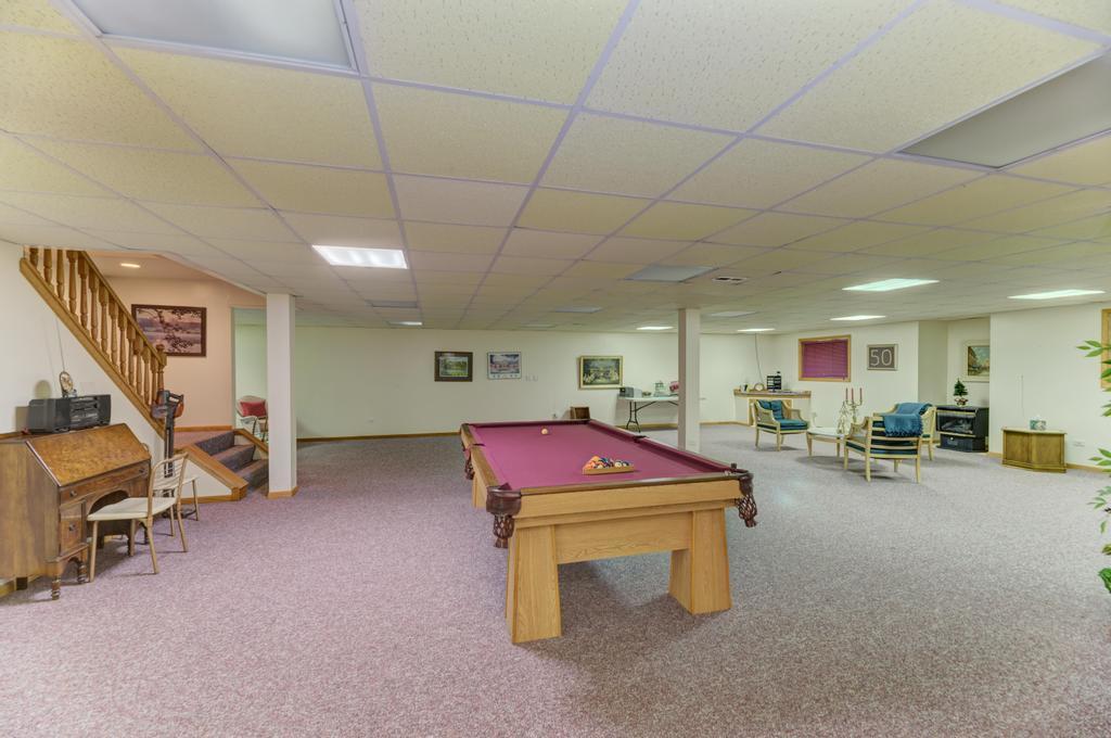 This home is a rare opportunity to own a ranch with an open floor plan in the highly sought-after Royal Courts Villas subdivision. This charming and inviting townhome offers a perfect blend of warmth and elegance. The spacious foyer welcomes you with gleaming hardwood floors that extend throughout the main living areas. The gourmet kitchen features granite countertops, a stylish ceramic tile backsplash, maple cabinets with pull-out shelves, and a full suite of appliances. Enjoy your morning coffee in the bright eat-in area, or step through the sliding glass doors to the expansive 32×14 deck, ideal for outdoor gatherings. The huge Great Room and Dining Room combination offers an inviting space for relaxation and entertainment, complete with a cozy gas-log fireplace, large windows, and hardwood floors. A versatile den with French doors can easily be converted into a third bedroom. The luxurious Primary Suite is a true retreat, boasting a spacious walk-in closet and an elegant bathroom with dual white marble vanities, a jacuzzi tub, separate shower, and a private toilet with a bidet. The second bedroom features a triple window, double closet, and hardwood floors, while the hall bath offers a tub, white marble vanity, and ceramic tile. Practicality meets convenience with a spacious laundry room equipped with a washer, dryer, sink, built-in ironing board, and direct access to the attached two-car garage. Wide stairs lead to the finished basement, providing even more living space. The home’s lower level is an entertainer’s paradise, featuring a 28×23 entertainment room with carpeting, an electric fireplace, a pool table (which stays), and a second kitchen with vinyl flooring and all appliances. Additionally, there is a full bathroom, a large storage room, and a walk-in cedar closet. Located in the top-rated District 13 and Lake Park High School areas, this home is perfectly positioned close to expressways, Metra, shopping, restaurants, parks, and the charming Old Town area – the list goes on! Don’t miss this fantastic opportunity.