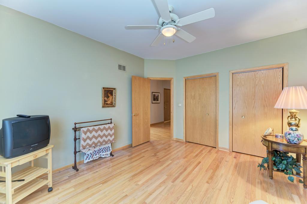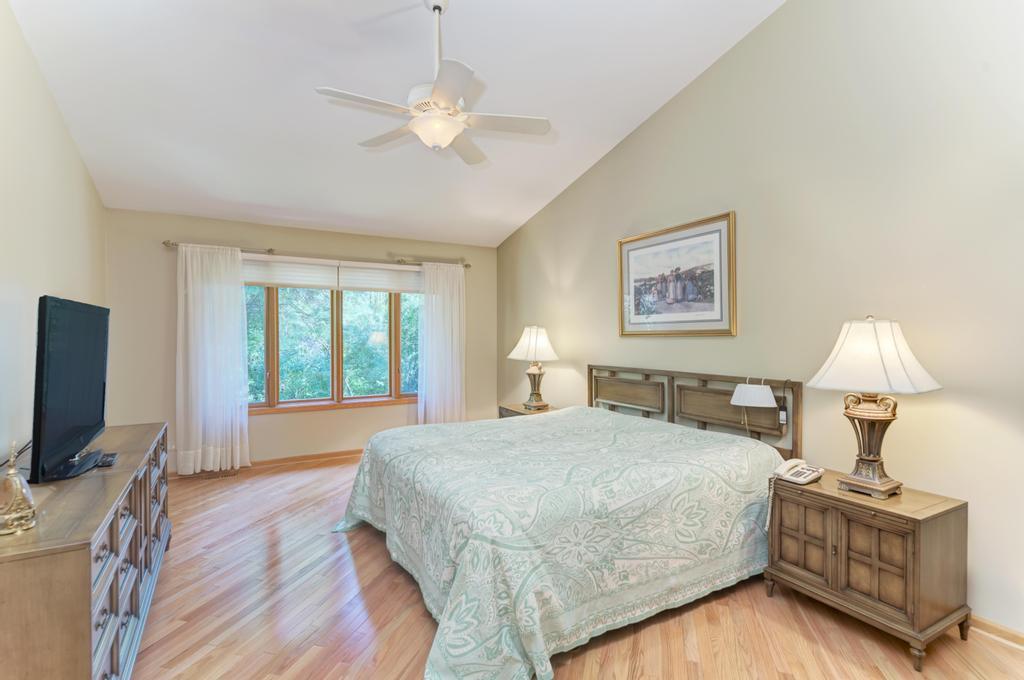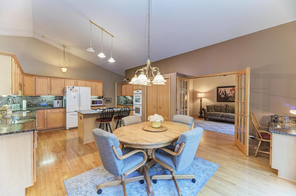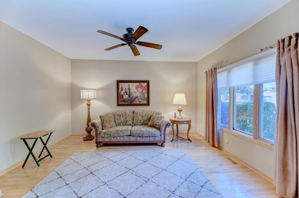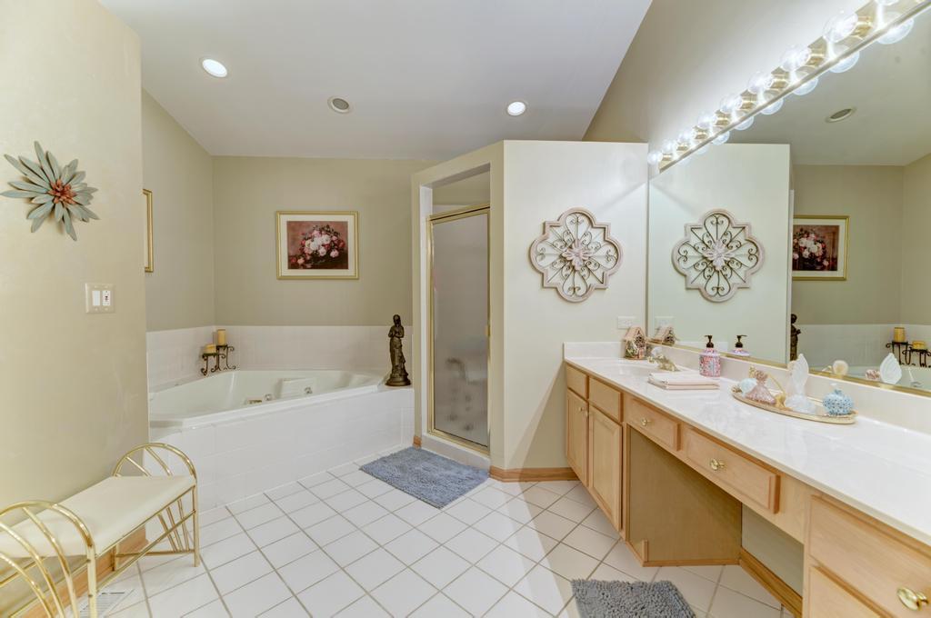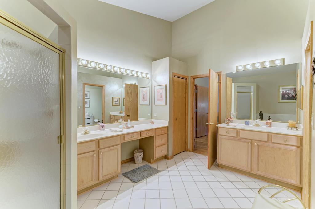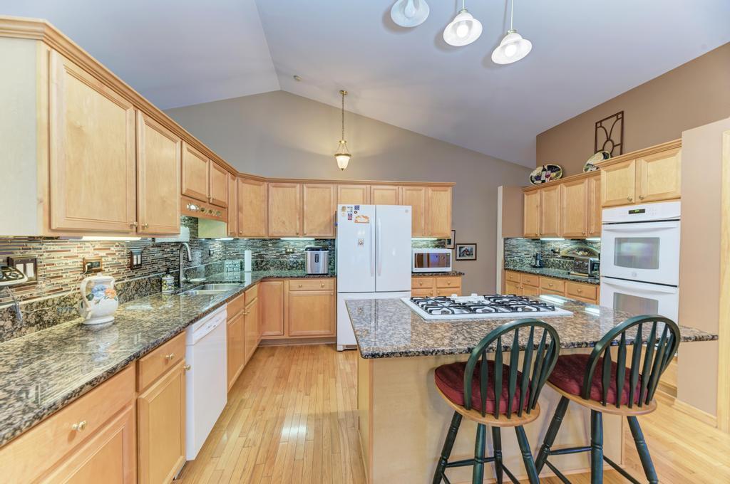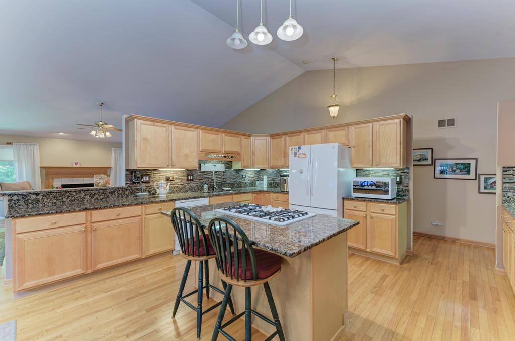 This home is a rare opportunity to own a ranch with an open floor plan in the highly sought-after Royal Courts Villas subdivision. This charming and inviting townhome offers a perfect blend of warmth and elegance. The spacious foyer welcomes you with gleaming hardwood floors that extend throughout the main living areas. The gourmet kitchen features granite countertops, a stylish ceramic tile backsplash, maple cabinets with pull-out shelves, and a full suite of appliances. Enjoy your morning coffee in the bright eat-in area, or step through the sliding glass doors to the expansive 32×14 deck, ideal for outdoor gatherings. The huge Great Room and Dining Room combination offers an inviting space for relaxation and entertainment, complete with a cozy gas-log fireplace, large windows, and hardwood floors. A versatile den with French doors can easily be converted into a third bedroom. The luxurious Primary Suite is a true retreat, boasting a spacious walk-in closet and an elegant bathroom with dual white marble vanities, a jacuzzi tub, separate shower, and a private toilet with a bidet. The second bedroom features a triple window, double closet, and hardwood floors, while the hall bath offers a tub, white marble vanity, and ceramic tile. Practicality meets convenience with a spacious laundry room equipped with a washer, dryer, sink, built-in ironing board, and direct access to the attached two-car garage. Wide stairs lead to the finished basement, providing even more living space. The home’s lower level is an entertainer’s paradise, featuring a 28×23 entertainment room with carpeting, an electric fireplace, a pool table (which stays), and a second kitchen with vinyl flooring and all appliances. Additionally, there is a full bathroom, a large storage room, and a walk-in cedar closet. Located in the top-rated District 13 and Lake Park High School areas, this home is perfectly positioned close to expressways, Metra, shopping, restaurants, parks, and the charming Old Town area – the list goes on! Don’t miss this fantastic opportunity.