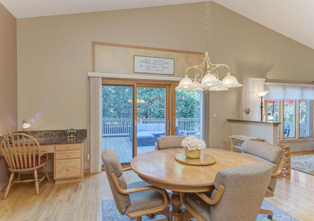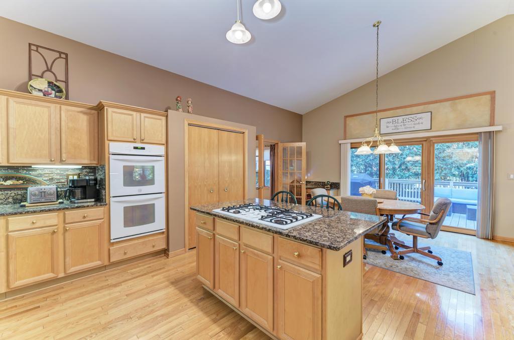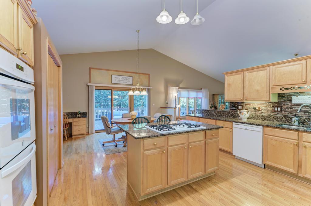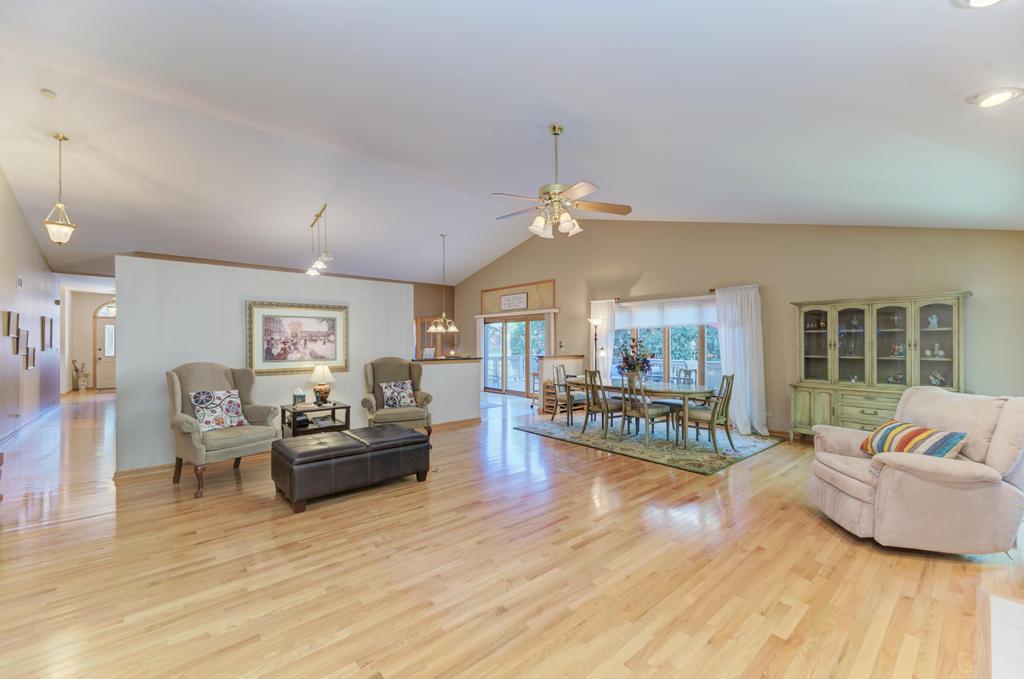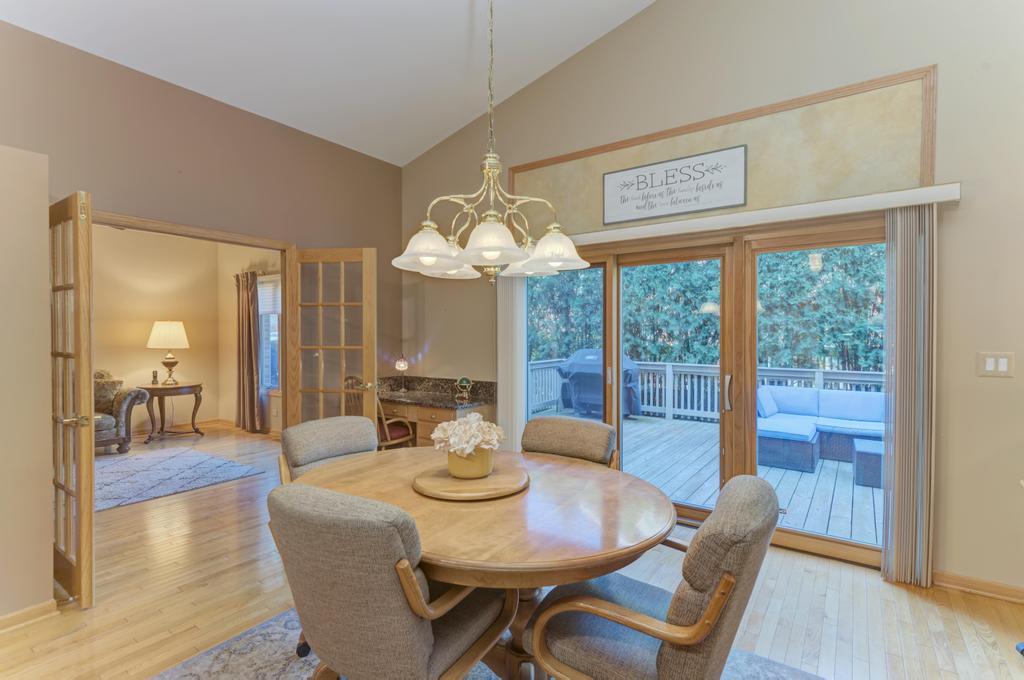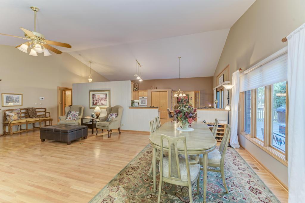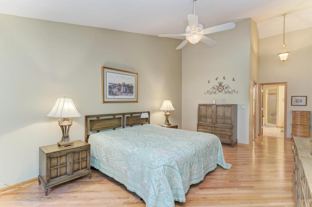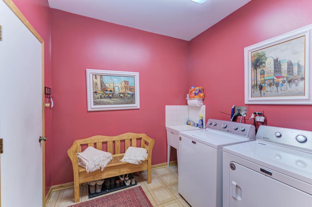 This home is a rare opportunity to own a ranch with an open floor plan in the highly sought-after Royal Courts Villas subdivision. This charming and inviting townhome offers a perfect blend of warmth and elegance. The spacious foyer welcomes you with gleaming hardwood floors that extend throughout the main living areas. The gourmet kitchen features granite countertops, a stylish ceramic tile backsplash, maple cabinets with pull-out shelves, and a full suite of appliances. Enjoy your morning coffee in the bright eat-in area, or step through the sliding glass doors to the expansive 32×14 deck, ideal for outdoor gatherings. The huge Great Room and Dining Room combination offers an inviting space for relaxation and entertainment, complete with a cozy gas-log fireplace, large windows, and hardwood floors. A versatile den with French doors can easily be converted into a third bedroom. The luxurious Primary Suite is a true retreat, boasting a spacious walk-in closet and an elegant bathroom with dual white marble vanities, a jacuzzi tub, separate shower, and a private toilet with a bidet. The second bedroom features a triple window, double closet, and hardwood floors, while the hall bath offers a tub, white marble vanity, and ceramic tile. Practicality meets convenience with a spacious laundry room equipped with a washer, dryer, sink, built-in ironing board, and direct access to the attached two-car garage. Wide stairs lead to the finished basement, providing even more living space. The home’s lower level is an entertainer’s paradise, featuring a 28×23 entertainment room with carpeting, an electric fireplace, a pool table (which stays), and a second kitchen with vinyl flooring and all appliances. Additionally, there is a full bathroom, a large storage room, and a walk-in cedar closet. Located in the top-rated District 13 and Lake Park High School areas, this home is perfectly positioned close to expressways, Metra, shopping, restaurants, parks, and the charming Old Town area – the list goes on! Don’t miss this fantastic opportunity.