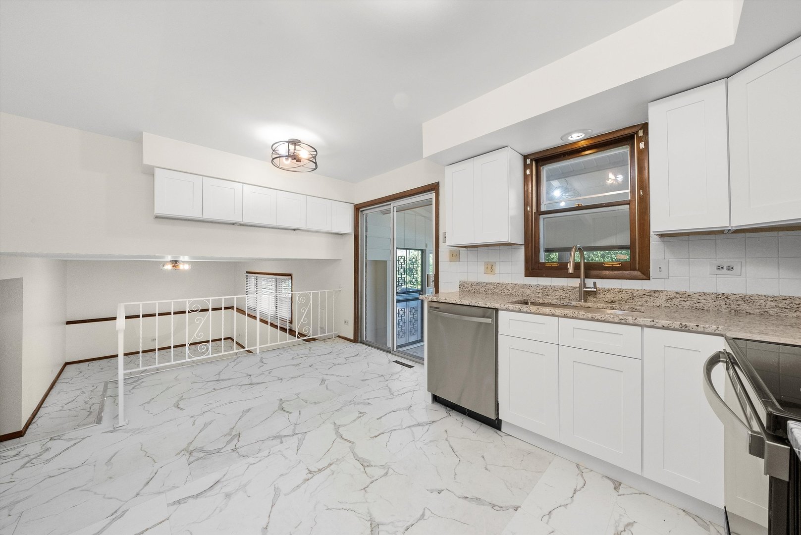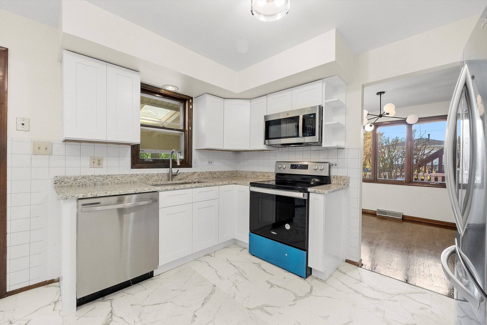 Charming 3-bed, 2-bath split-level home nestled on a quiet, tree-lined street in one of Homewood’s most established neighborhoods. Filled with natural light, the home offers a spacious living room with large windows and a seamless flow into the formal dining area, perfect for both everyday living and entertaining. The kitchen has been thoughtfully updated with new stainless appliances, modern white Shaker cabinets, and granite counters, and also offers space for a table, creating a functional area for cooking and everyday dining. Adjacent to the kitchen, the lower-level family room provides additional living space, along with a convenient full bath, laundry and storage area. Upstairs, you’ll find three generously sized bedrooms and a full hall bath. Just off the back of the home, a large versatile screened-in porch provides the perfect spot to relax, dine, or enjoy morning coffee while overlooking the peaceful backyard. One of the home’s most unique highlights is the private path along the side of the property that leads directly to Hollydale Park, offering convenient access to playgrounds, green space, and outdoor recreation-perfect for morning walks, pets, or simply enjoying nature. Includes an attached 2-car garage and a large driveway. Located minutes from parks, schools, shopping, dining, and the vibrant Homewood downtown district, this home also offers easy access to Metra and major highways for a smooth commute.