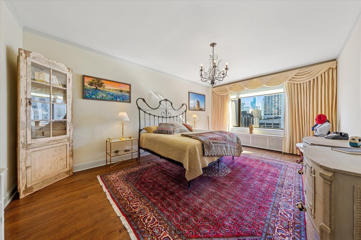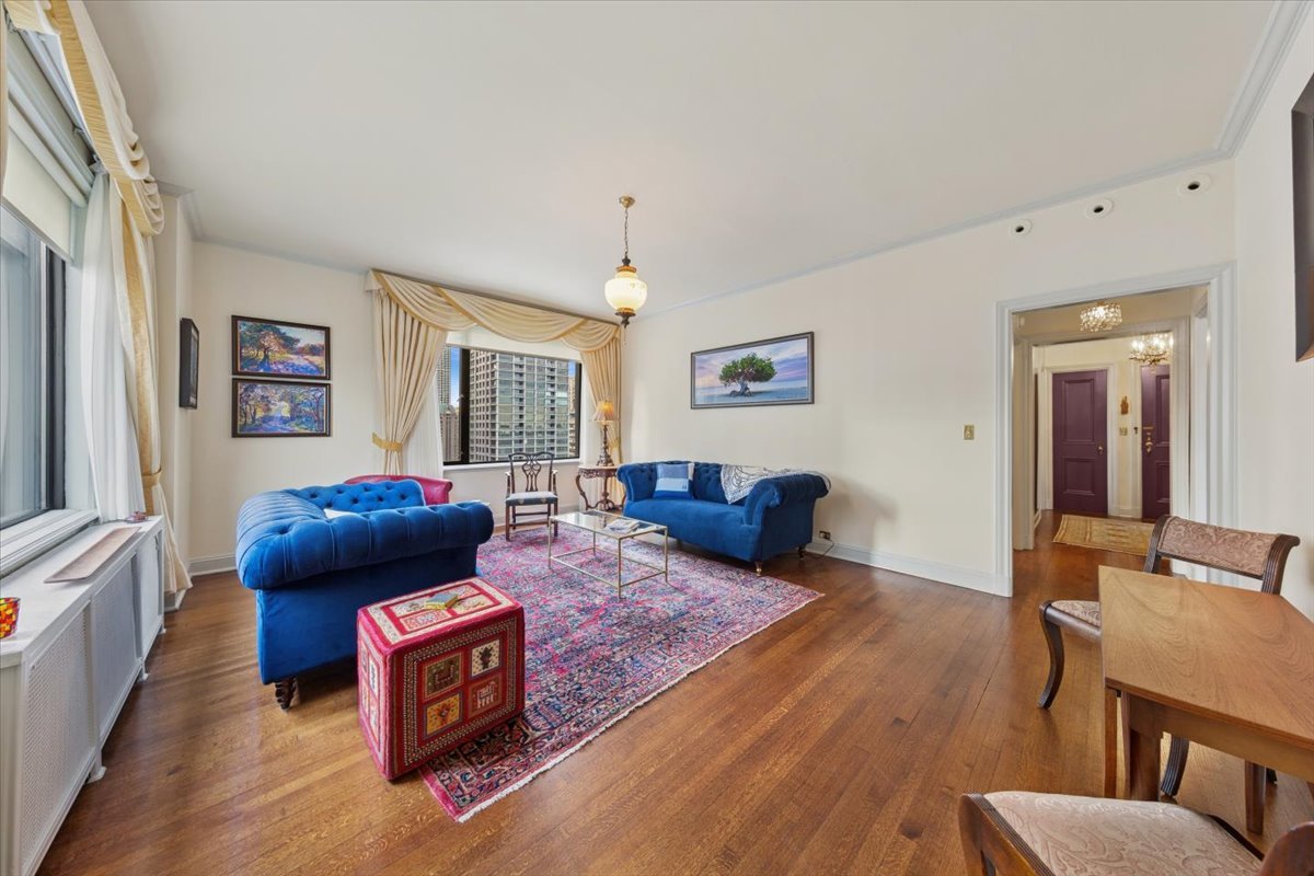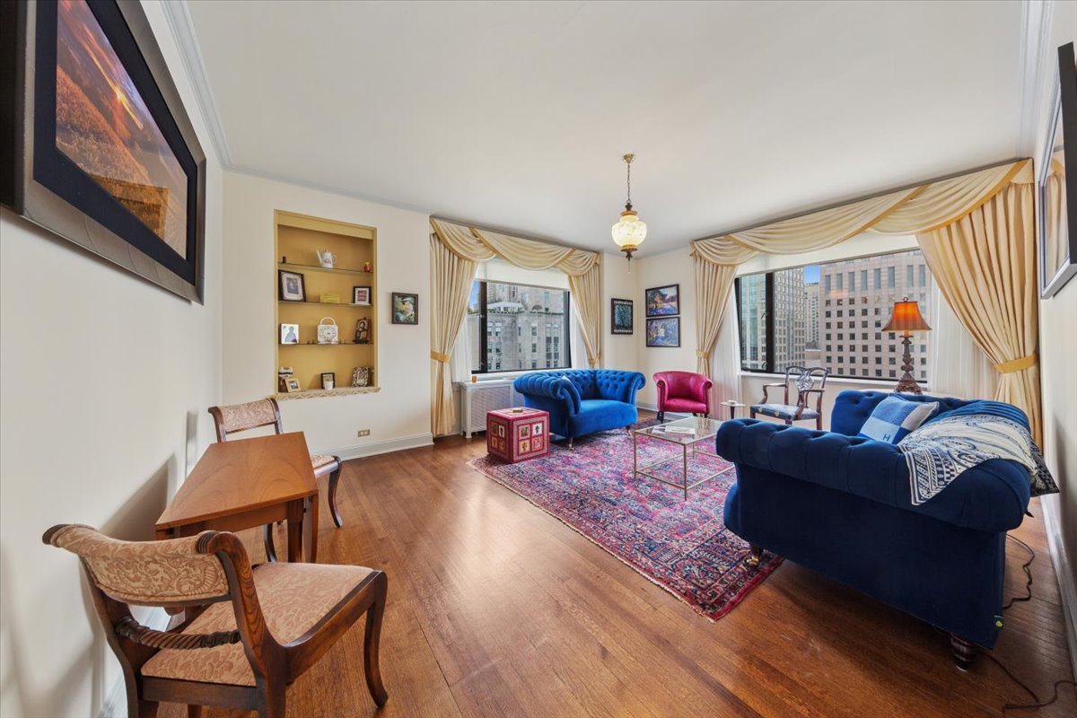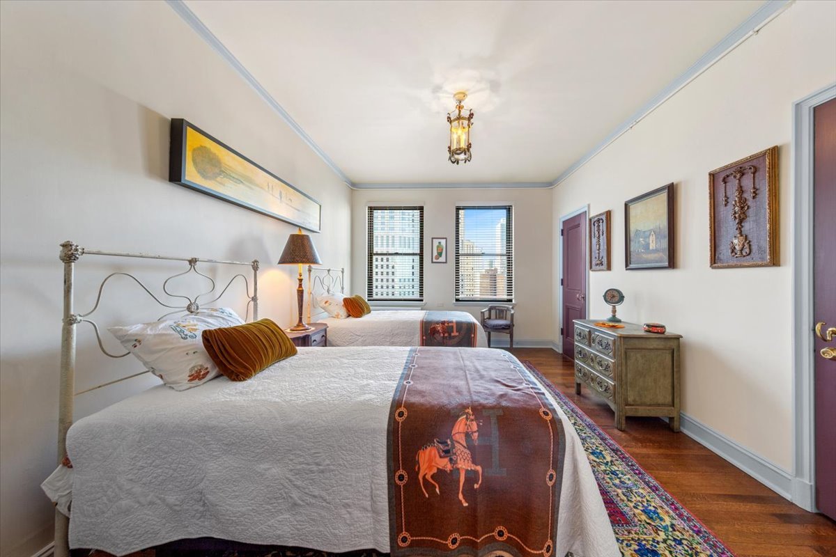Magnificent Drake Tower stunning 2-bedroom residence featuring views of Oak Street and Lake Shore Drive North. It is a combination of history and vintage charm along with the comforts of new spacepak central ac;Closets by design in primary, guest and utility closets; new window treatments throughout; new lighting in primary, guest bedrooms and livingroom; new kitchen faucet, tiled backsplash and Liebherr refrigerator. Lots more upgrades too numerous to mention. Recently painted throughout with Farrow & Ball paint. Hardwood flooring throughout; original crown molding, high ceilings and 2 large bedrooms with ensuite baths. This unit is perfection! Situated within the Benjamin Marshall-designed Drake Tower Residences, this elegant Gold Coast home features oak flooring, craftsman-inspired accents and original crown molding. A spacious and open living room with dining area and soaring ceilings. With its prime location enjoy summers at Oak Street Beach or wander the lakefront trail, both within walking distance of this must-see residence. Located in the landmarked East Lake Shore Drive District, this building offers amenities including on-site management, updated exercise facilities and a beautiful, secluded private patio. Drake Tower Cooperative offers full management services and assessments that include taxes, heat, water, door staff, attached garage parking. Parking is available for two cars at an additional $200 per vehicle.