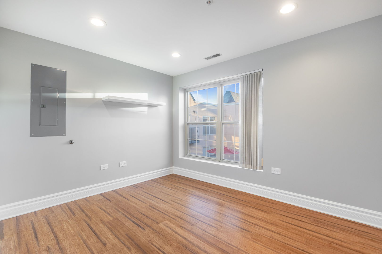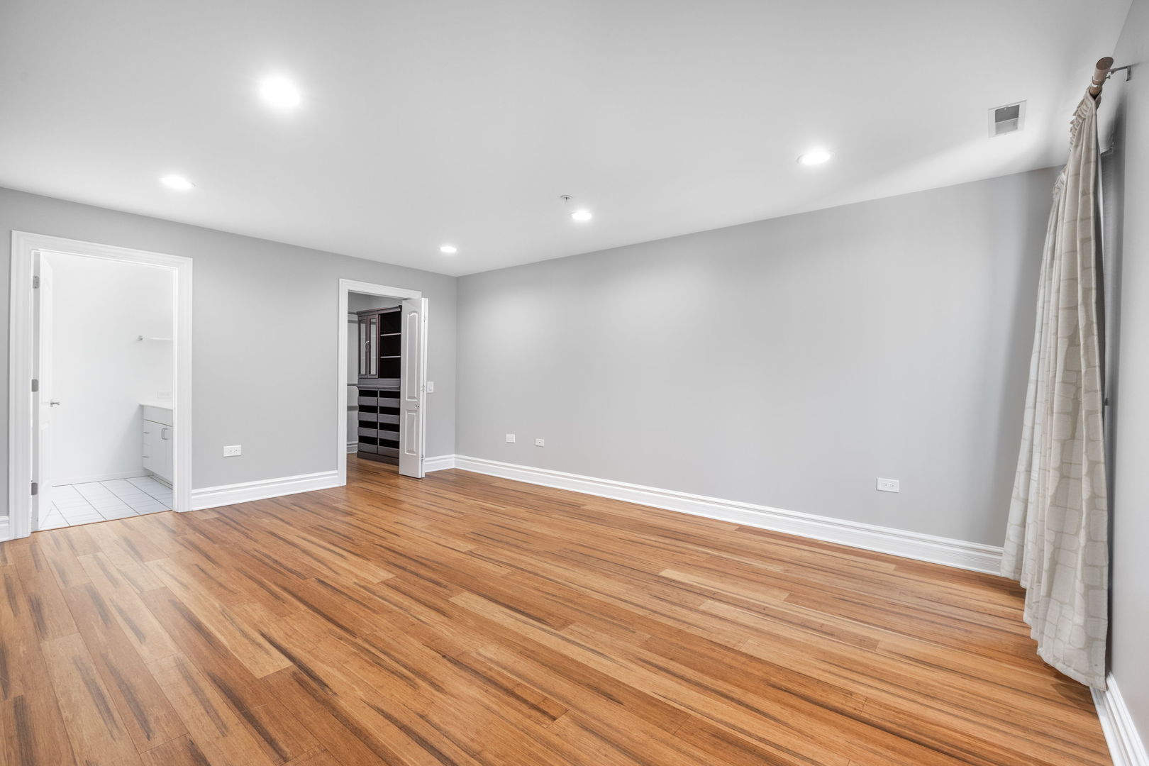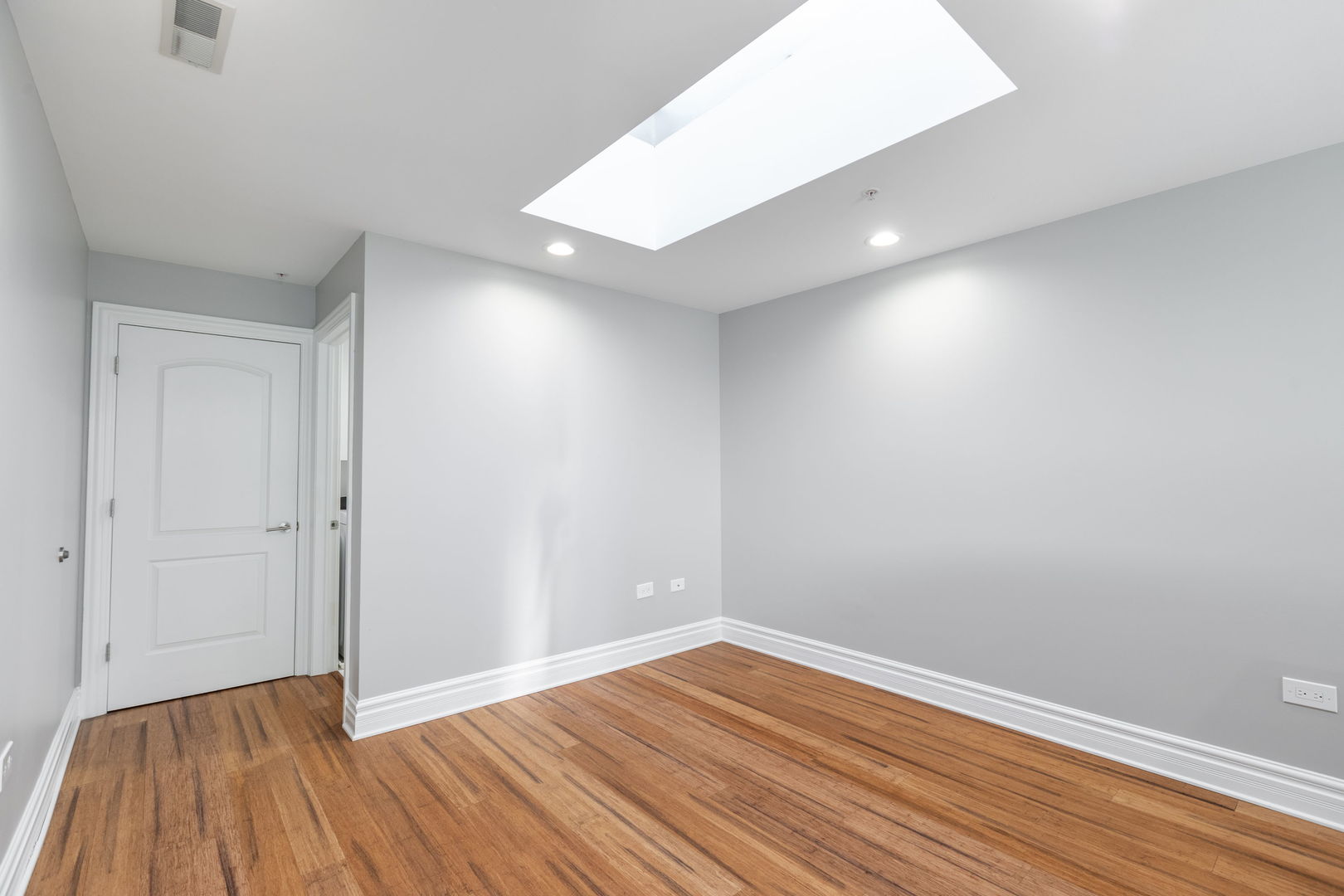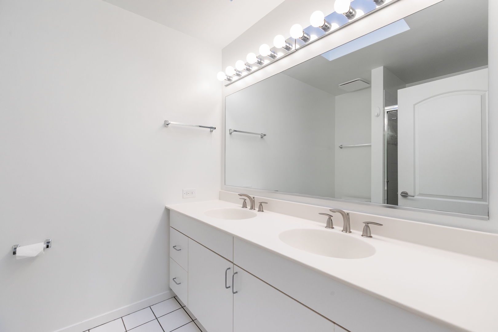 Welcome to one of the largest and most updated units in the heart of revitalized downtown Glenview-just steps from the Metra, boutique shopping, and a vibrant new restaurant scene. This stunning 2-bedroom, 2-bath condo offers an open-concept layout perfect for modern living. The beautifully renovated center kitchen features rich dark shaker cabinets, sleek quartz countertops, mosaic tile backsplash, and an oversized breakfast bar with ample seating-ideal for entertaining. The generous living room is filled with natural light and offers recessed lighting, a cozy gas fireplace, and access to a private Trex balcony. A separate dining area provides space for a full-sized table, offering flexibility for everyday living or hosting guests. The spacious primary suite includes a fully built-out walk-in closet and a stylish en-suite bathroom with a double vanity and walk-in shower. The second bedroom is perfect for guests, a home office, or both. Additional features include a large walk-in laundry room with full-size washer/dryer and storage cabinetry, a separate walk-in storage room, and two heated garage parking spots (47 & 48). Recent upgrades include a brand new building roof and new HVAC system for the unit. This move-in ready home combines size, style, and location-all within a secure, well-maintained building in one of the North Shore’s most desirable communities.