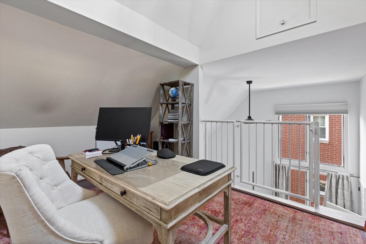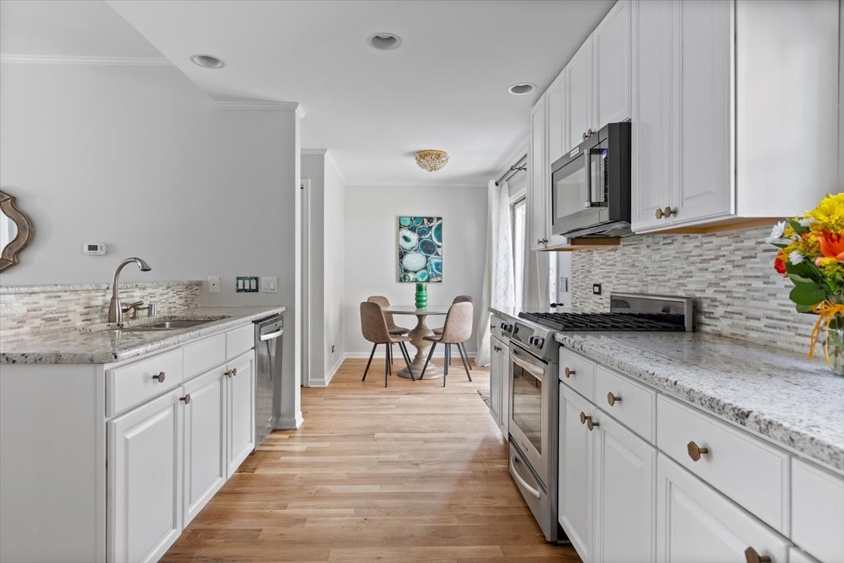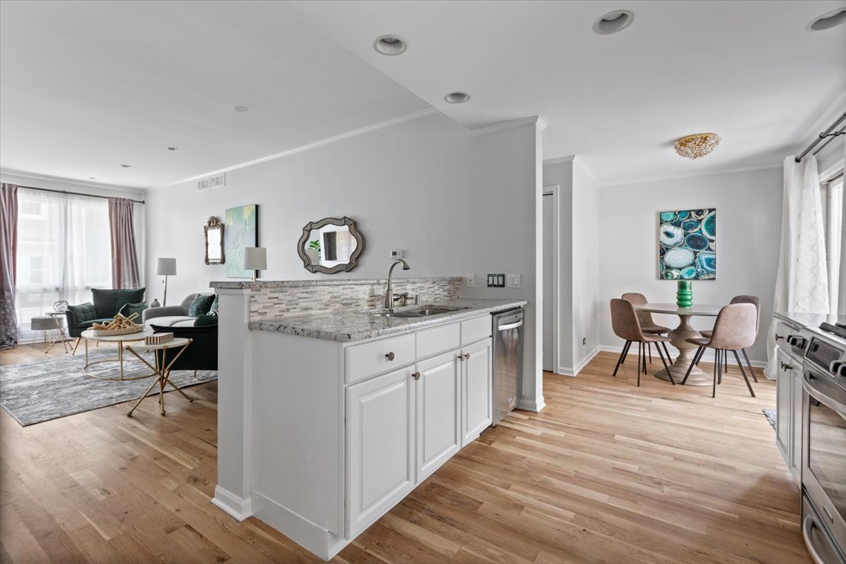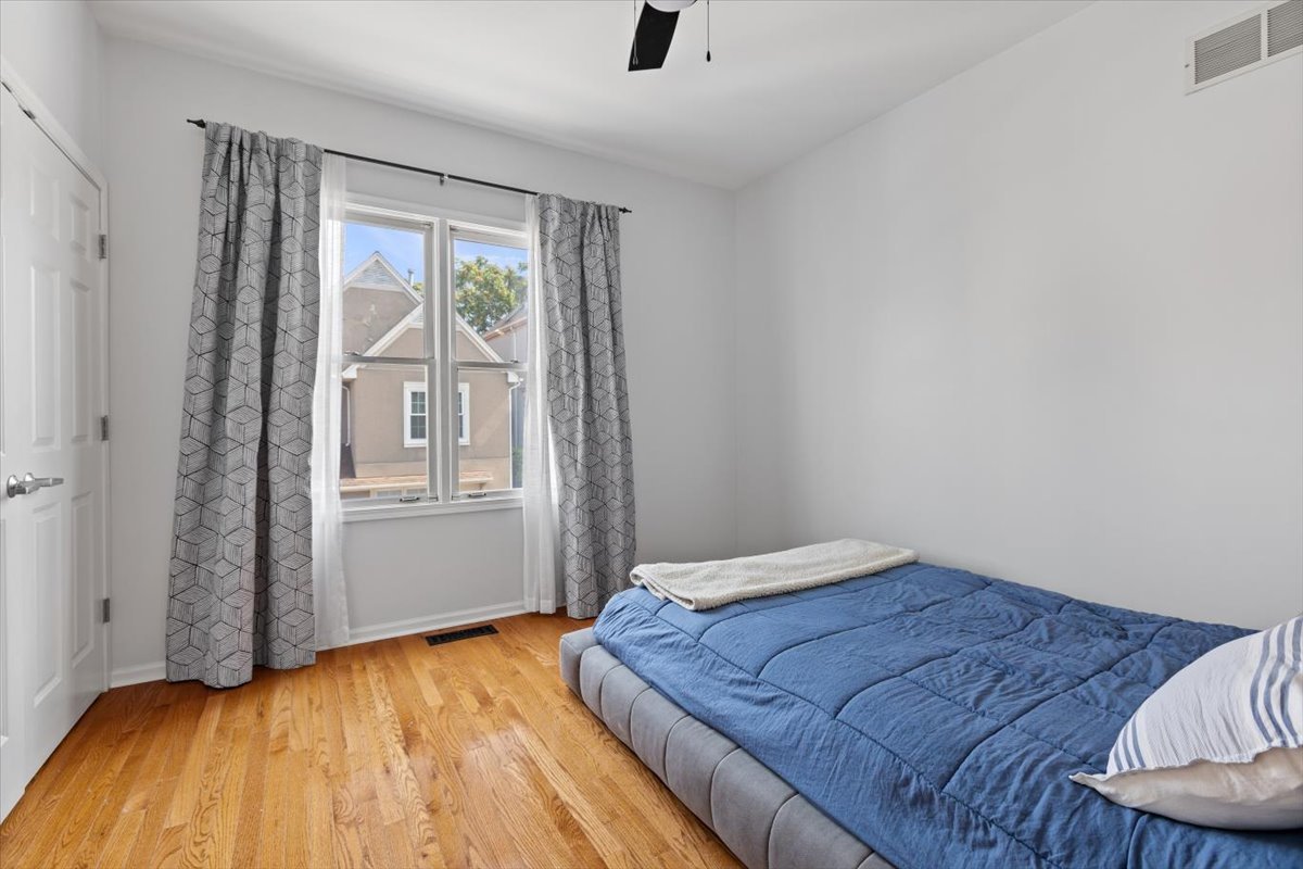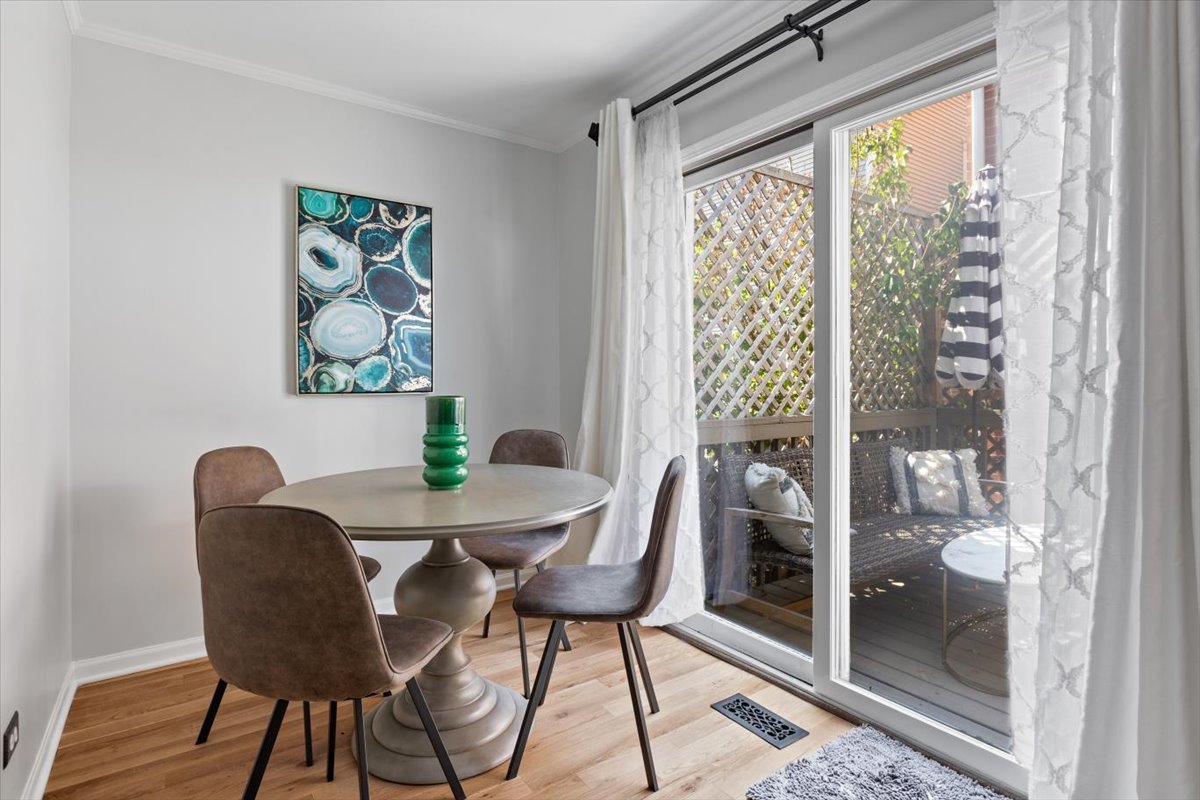 Discover elegance and smart living at this charming single family home located on a private gated street off of Diversey Parkway, nestled within the vibrant Chicago landscape. This thoughtfully designed 2-bedroom, 2-bathroom home offers an inviting and comfortable living experience, perfect for the discerning homeowner. Upon entering, be greeted by beautiful, newly-refinished hardwood floors that gracefully span the main living areas. The open layout seamlessly connects the living room, dining space, and kitchen, creating an ideal environment for both entertaining and tranquil evenings. The kitchen stands ready for culinary exploration with its modern stainless steel appliances, ensuring convenience at every turn. This property has been lovingly maintained through the years, and among the more recent and notable updates: the primary suite has some new windows, and its refreshed lofted space is ideal as a reading nook or office, also with additional storage. The primary bath has a new vanity, new plumbing, new lighting, new quartz counter with double sinks. The hallway bath has also been updated. Along with other updates, the home was fully painted within the past two years. It comes equipped with central air conditioning and gas-forced heat, providing year-round comfort. A dedicated washer and dryer add to the convenience, while the forced air system ensures efficient energy use. For those who value practicality, the property includes an on-site garage, offering security and ease for your vehicle. The blend of smart design and value-centric amenities make this residence an exceptional opportunity for a dynamic lifestyle. Despite its quiet location well off-street, don’t be fooled! This home is nicely placed with close proximity to many life amenities – Costco, Menards Hardware, Midtown Athletic Club, several wonderful restaurants, all the retail on Elston/Ashland/Western, several parks (including Chi Che Wang and Hamlin) and dog parks, the Jimmy Thomas Nature Trail along the River Walk, and easy public transportation to take you elsewhere around the city. Don’t miss the chance to make this elegant and value-minded home yours, where comfort and style harmoniously intersect in one of Chicago’s desirable locations.