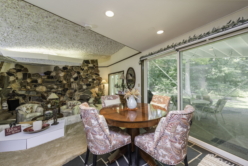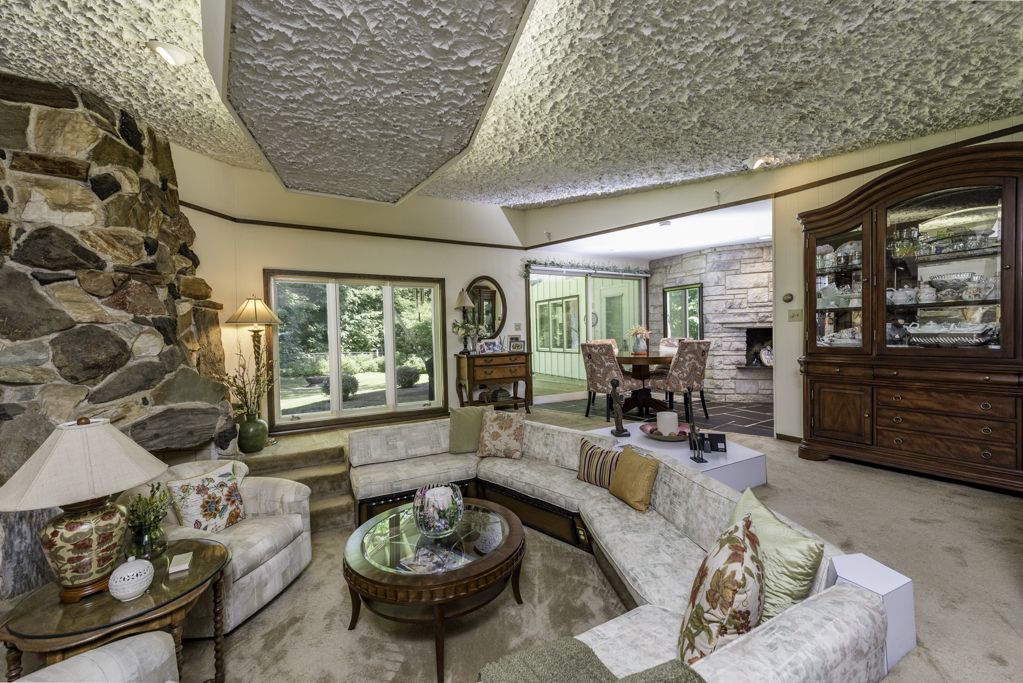 Very unique Ranch home overlooking the Ravine. The home features 3 bedrooms, one full bath, one half bath, and a quarter bath with a walk-in shower. A third bedroom is currently utilized as a TV room. The kitchen has granite Countertops and slate flooring. 2 fireplaces: kitchen wall, and a living room fireplace. The Sellers relocating and are offering to leave some furniture for the future buyer. A list of these items can be found in the Documents tab. Given its unique features and charming design, this home would also make a very popular AirBnB rental.