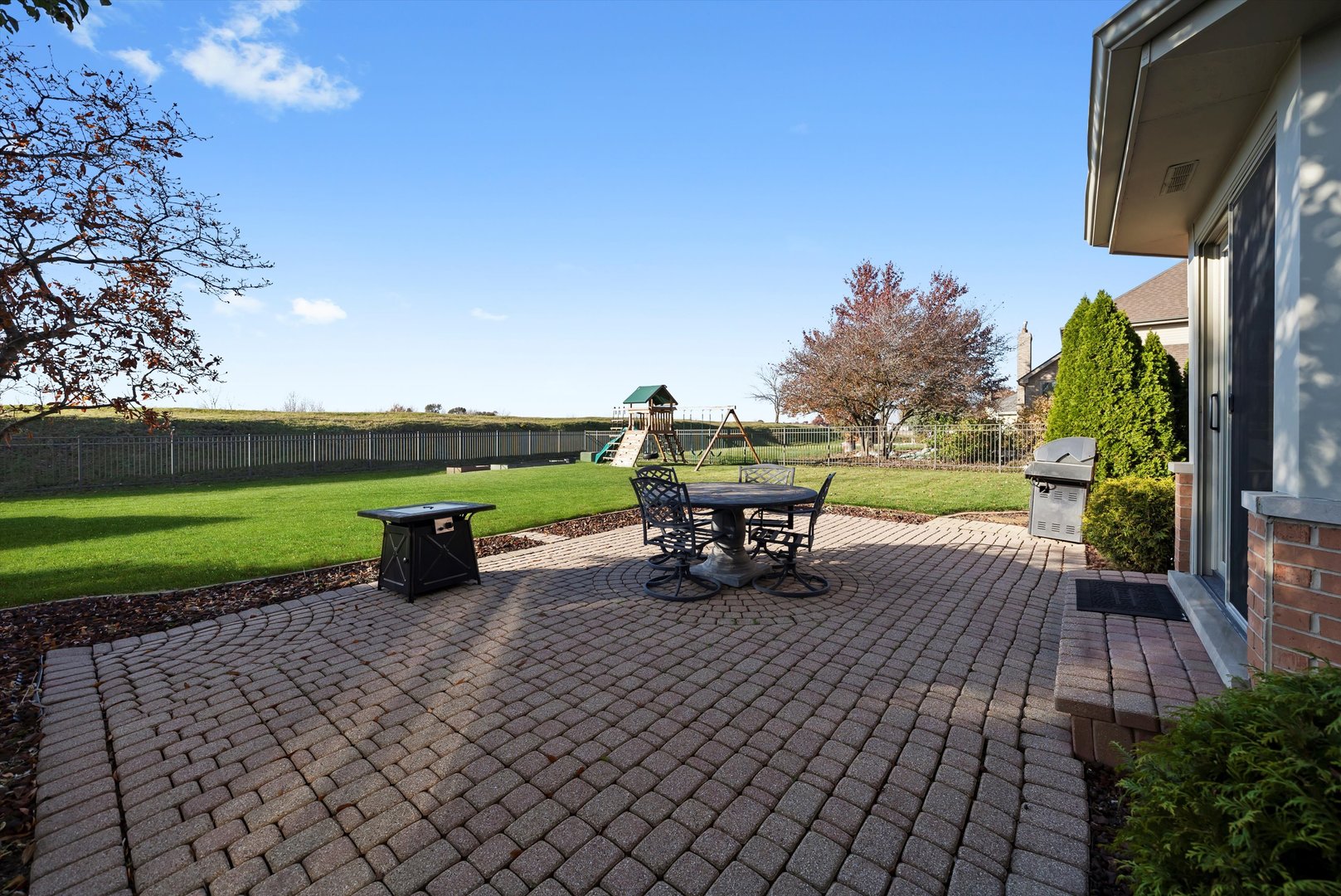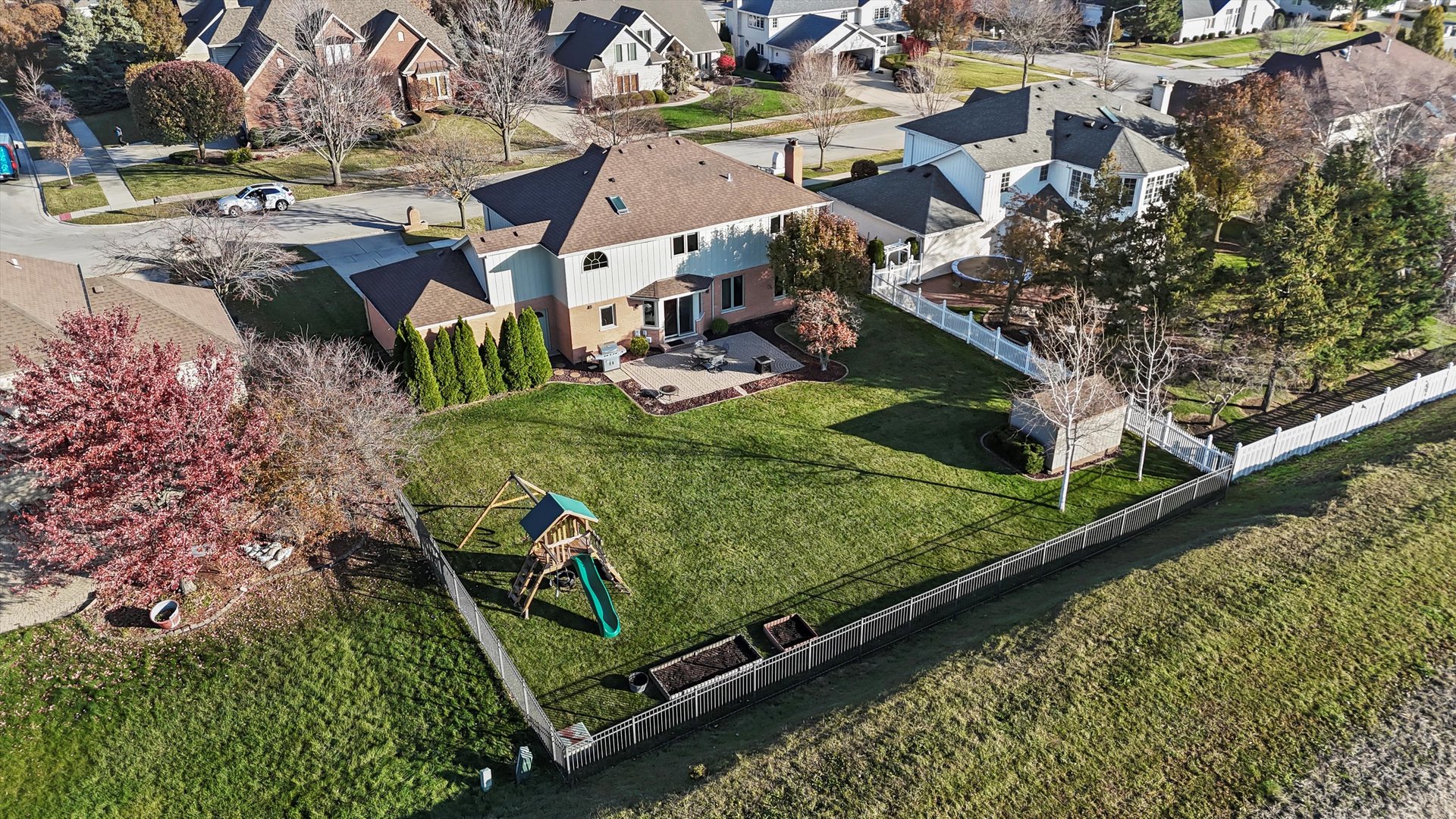 Welcome to this rarely available two-story brick home in the sought-after Pheasant Lake Subdivision. Offering timeless curb appeal, this spacious 4-5 bedroom residence welcomes you with a soaring two-story foyer that flows seamlessly into the main living areas. Sun-filled interiors feature an abundance of windows and generously sized rooms throughout. The expansive primary suite is a true retreat, complete with a soaking tub, separate shower, double vanity, and a large walk-in closet. The spacious, updated kitchen showcases white cabinetry, granite countertops, and stainless steel appliances, including a new dishwasher (2024). The kitchen opens to an oversized family room with a cozy fireplace-perfect for everyday living and entertaining. A separate dining room provides an ideal setting for hosting gatherings. The full unfinished basement (approximately 42 x 36) includes a finished bonus room and roughed-in plumbing for a future bathroom, offering endless potential for a recreation room or additional living space. Notable updates include: new fence (2020), NewWasher & Dryer (2025), sprinkler system in the front and backyard, exterior cedar freshly painted (2025), high-end Jeld-Wen windows installed in 2019 (except family room), roof and gutters replaced approximately 10 years ago,, storage shed, paver patio, and Dual HVAC serviced annually. (One furnace and C/A unit replaced) Outside, the newly fenced yard with Paver Patio creates a tranquil setting-perfect for family gatherings or entertaining. Welcome home!