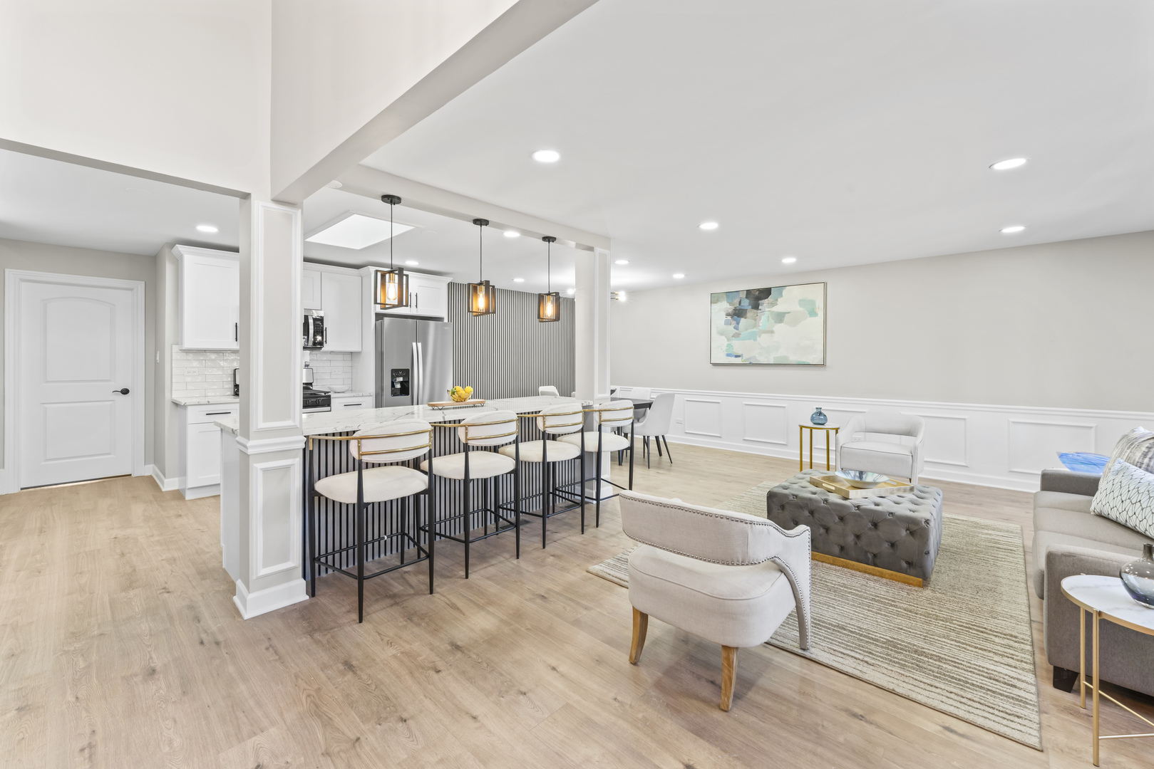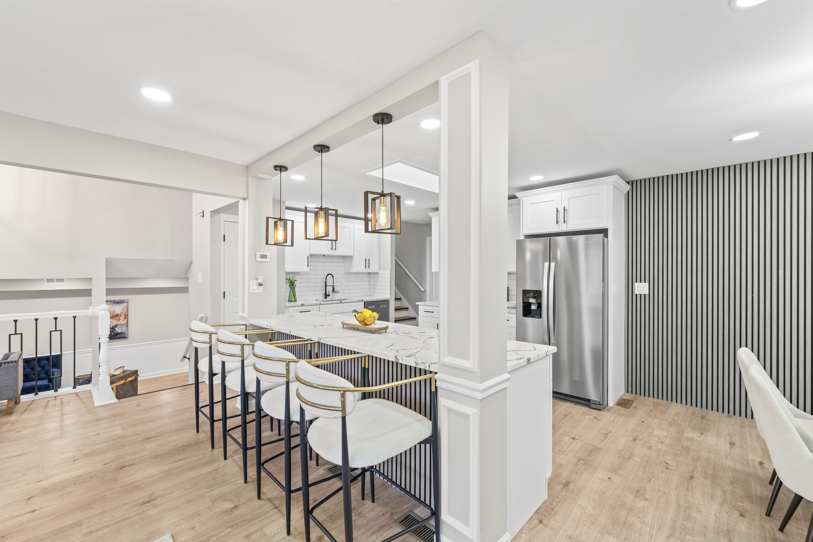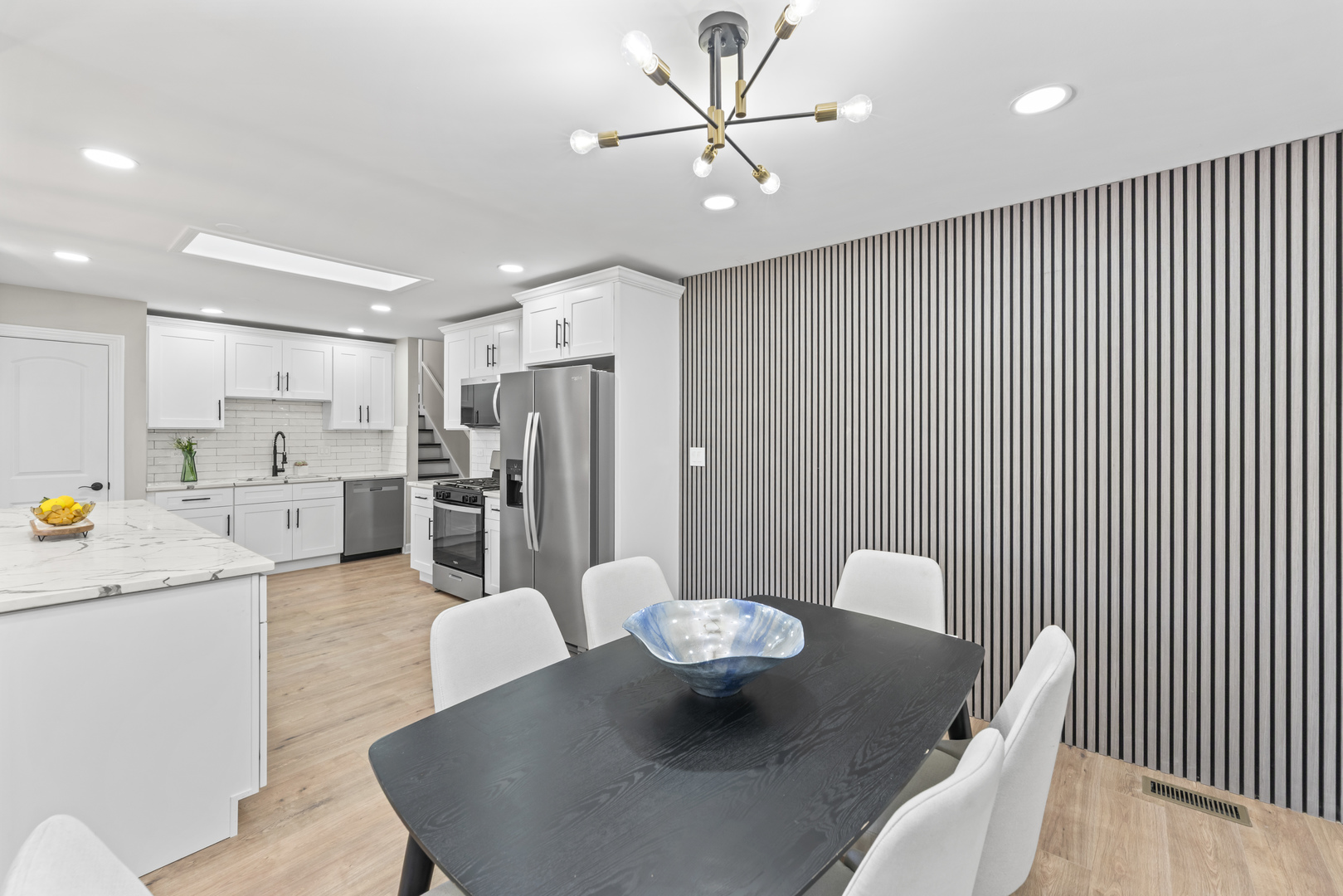 This BREATHTAKING and fully renovated tri-level townhome, nestled on a quiet cul-de-sac in the highly sought-after Eagle Ridge II community, offers the ultimate turn-key experience. Its prime location backs directly onto a serene, large park featuring a scenic walking trail. Every detail has been meticulously upgraded, starting with the installation of gorgeous new flooring throughout all levels and a fresh coat of paint. A crucial element of this top-to-bottom renovation includes all new trim and all new interior doors, upgraded to the modern 2-panel style, providing a clean, contemporary look throughout the entire residence. The open-concept layout highlights the HUGE and stunning new kitchen, designed for both luxury and utility, featuring amazing new white cabinets, a sophisticated white quartz countertop, and elegant tile backsplash, all complemented by a brand new stainless steel appliance package. The kitchen’s centerpiece is a massive 113-inch center island with a counter overhang, making it the perfect breakfast bar. Beyond the custom millwork, which includes elegant wainscoting and chair rail, the dining room boasts a stylish accent wall, adding depth and character to the space, and the living area features a very nice and cozy fireplace, perfect for cool evenings. The staircase has been modernized with new rail spindles. The entire electrical system has been modernized with new can lighting, designer light fixtures, and even new electric outlets and switches. The home features three spacious bedrooms, including a luxurious master suite, and two and a half completely brand new, custom-finished bathrooms, plus the added convenience of a laundry closet with a utility sink. For entertainment, the lower level boasts a newly installed wet bar. Storage is plentiful, with generous closet space throughout and the convenience of pull-down stairs in the 2.5-car attached garage for easy attic access. Enjoy low-maintenance living and an unbeatable location just minutes from shopping, dining, the Metra station, and easy access to the interstate. This is a complete, amazing transformation offering true luxury living in the suburbs.
