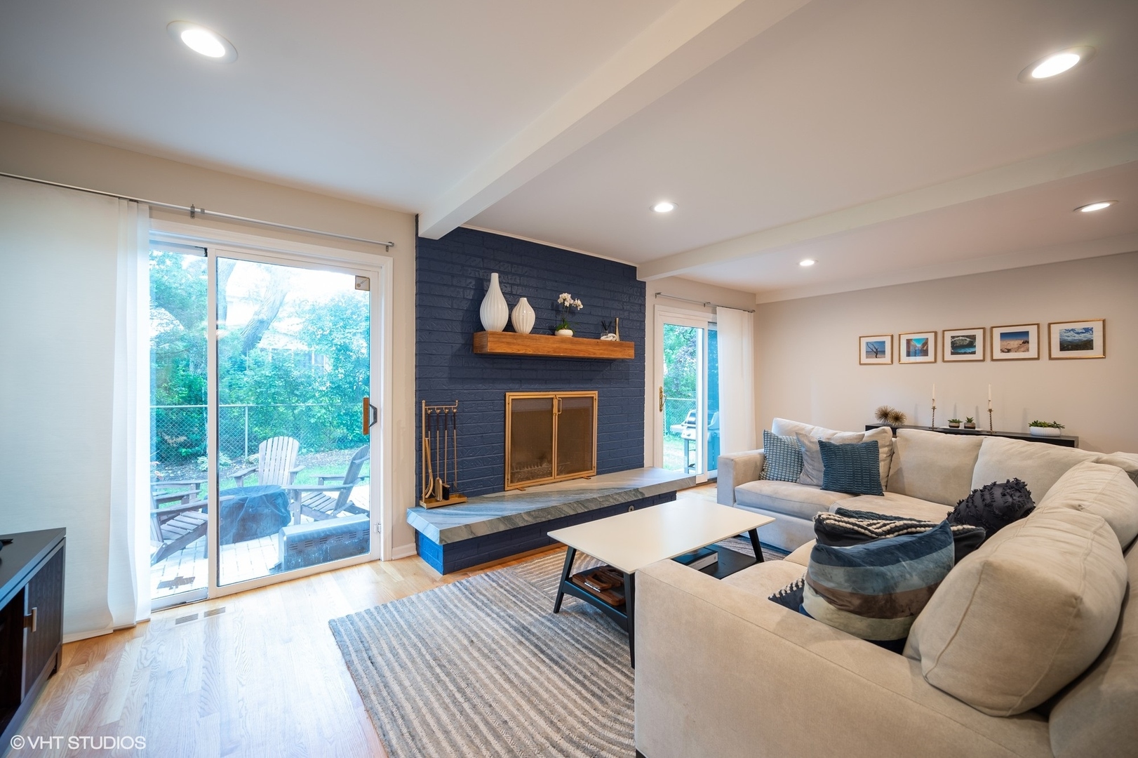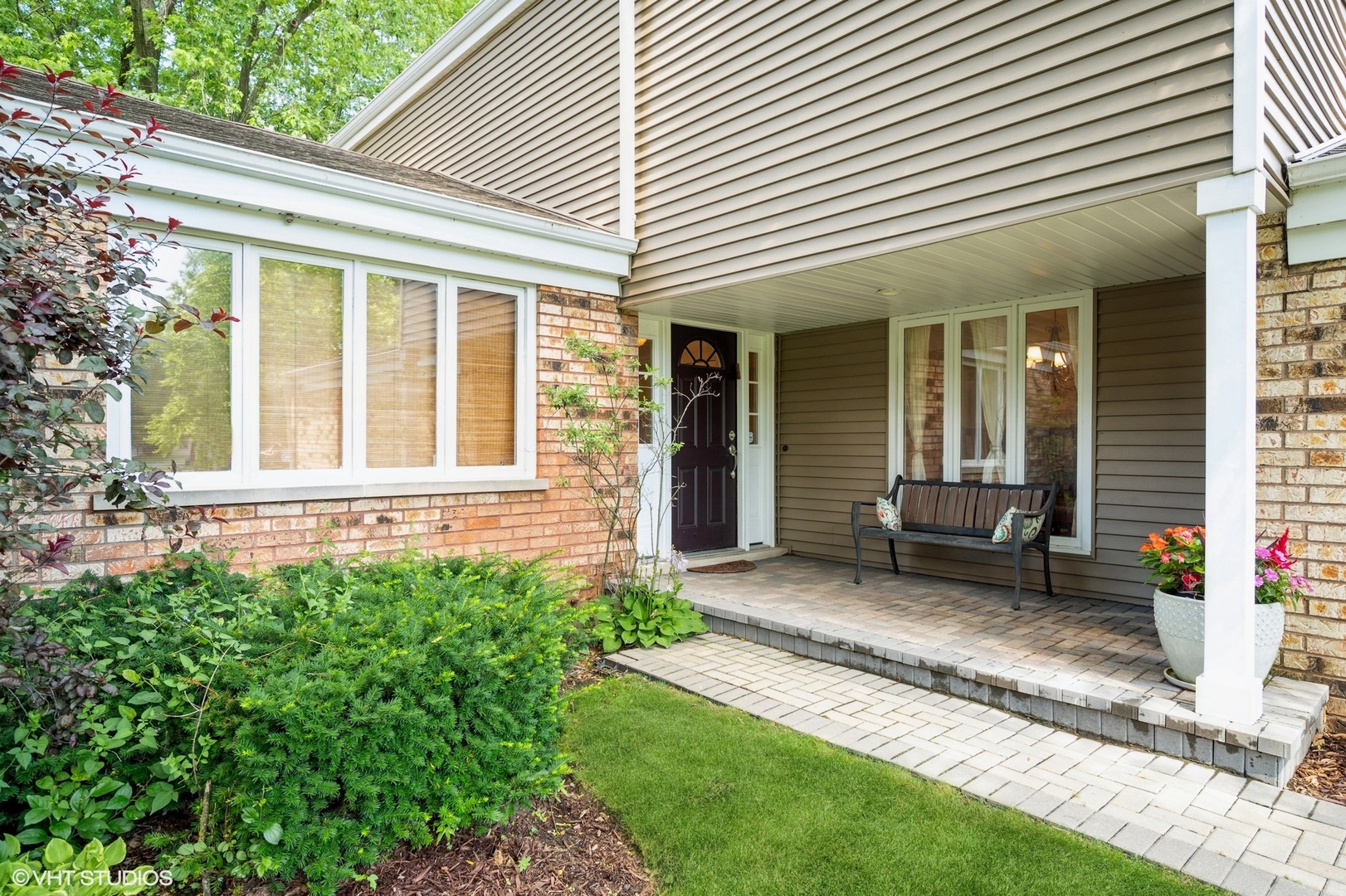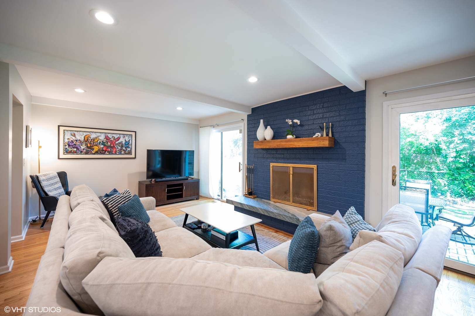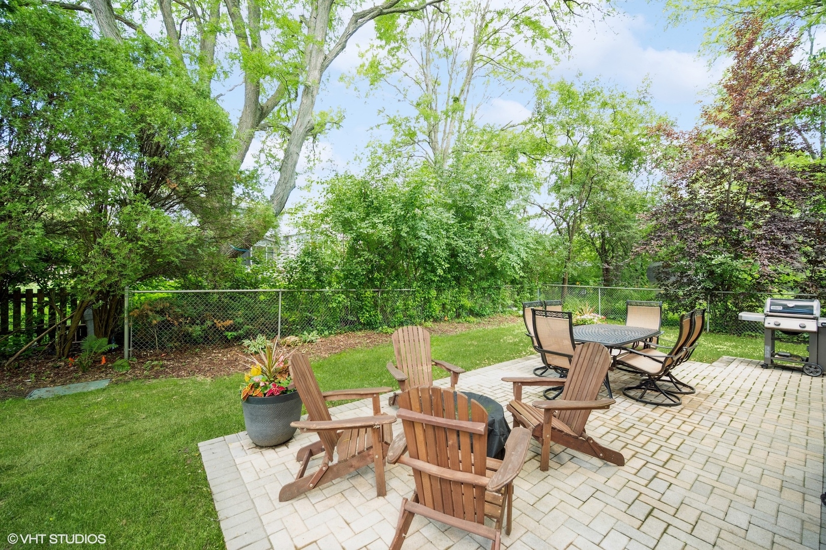 Prepare to fall in love with this beautifully updated & move-in ready colonial located on a quiet street in popular Sherwood Forest. An immaculate brick paver front walk leads to a charming, covered porch & the front door opens to a graciously sized & welcoming foyer. The 1st floor boasts gorgeous hardwood flooring, recessed lighting, and a terrific circular floor plan for easy entertaining and daily living. Fabulous eat-in kitchen features 42″ cabinets, granite countertops, newer stainless steel LG appliances including a French door fridge/freezer, 5 burner gas oven/range, microwave (2019) and Bosch dishwasher (2021) with a generously sized table area plus a peninsula with stool seating – all open to the family room. The stunning family room has a striking brick surround wood burning fireplace w/ a gas starter, gorgeous quartzite hearth, a dramatic charcoal colored dry bar (plumbed to be a wet bar) with quartz countertop & floating wood shelving, and double sliding glass doors overlooking the paver patio & fenced backyard. Sunny & spacious living room w/ vaulted ceiling, formal dining room w/ chair rail molding, neutral/updated powder room, and convenient 1st floor laundry/mud room with brand new LG front load W/D (2025), laundry chute, exterior door to a separate dog run and access to the oversized attached garage outfitted with an EV charger. The roomy primary suite features an organized WIC and updated bath w/ Carrera marble floors, handsome navy “his & her” vanities, glass enclosed shower and LED/anti-fog mirrors. Ample secondary bedrooms all with large, organized closets and share a big hall bath with dual white sink vanities w/ marble counters. The basement is finished with luxury vinyl plank flooring in both the recreation room & office, has a huge mechanical/storage room plus two concrete crawl spaces for additional storage. Other upgrades include a brand-new roof (2025), new siding (2022), updated HVAC (2015) and easy access to parks, downtown HP & downtown Deerfield, Ravinia, Lake MI, transportation, shopping, recreation and so much more.