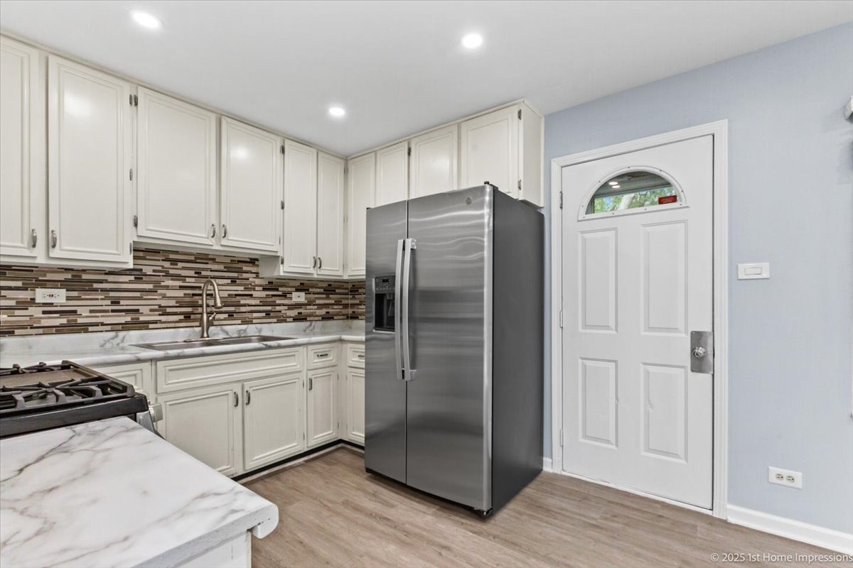 Stunningly Updated Split-Level Home in Hazel Crest is ready for the new Homeowners!! Welcome to 18120 Versailles Lane, a beautifully updated 3-bedroom, 2-bath home that blends modern style with everyday comfort. From the moment you arrive, you’ll be impressed by the home’s striking blue exterior, inviting curb appeal, and spacious yard perfect for entertaining, gardening, or simply relaxing outdoors. Step inside to find a bright, open-concept living space filled with natural light and modern recessed lighting. The newly updated kitchen features elegant white cabinetry, stainless steel appliances, marble-look countertops, and a stylish mosaic backsplash – perfect for cooking and entertaining alike. The home’s versatile split-level design offers generous living areas, spacious bedrooms, and two tastefully remodeled bathrooms. The attached 2-car garage provides convenience and extra storage space, while the large backyard offers endless possibilities for family gatherings or outdoor fun. Located in a quiet, established neighborhood near parks, schools, and shopping, this home is the perfect combination of style, comfort, and location. SCHEDULE YOUR SHOWING TODAY AND BRING YOUR OFFER!