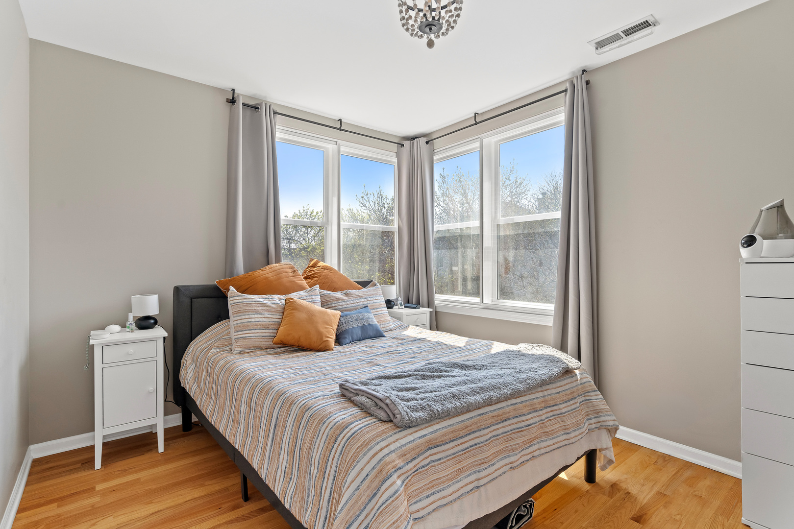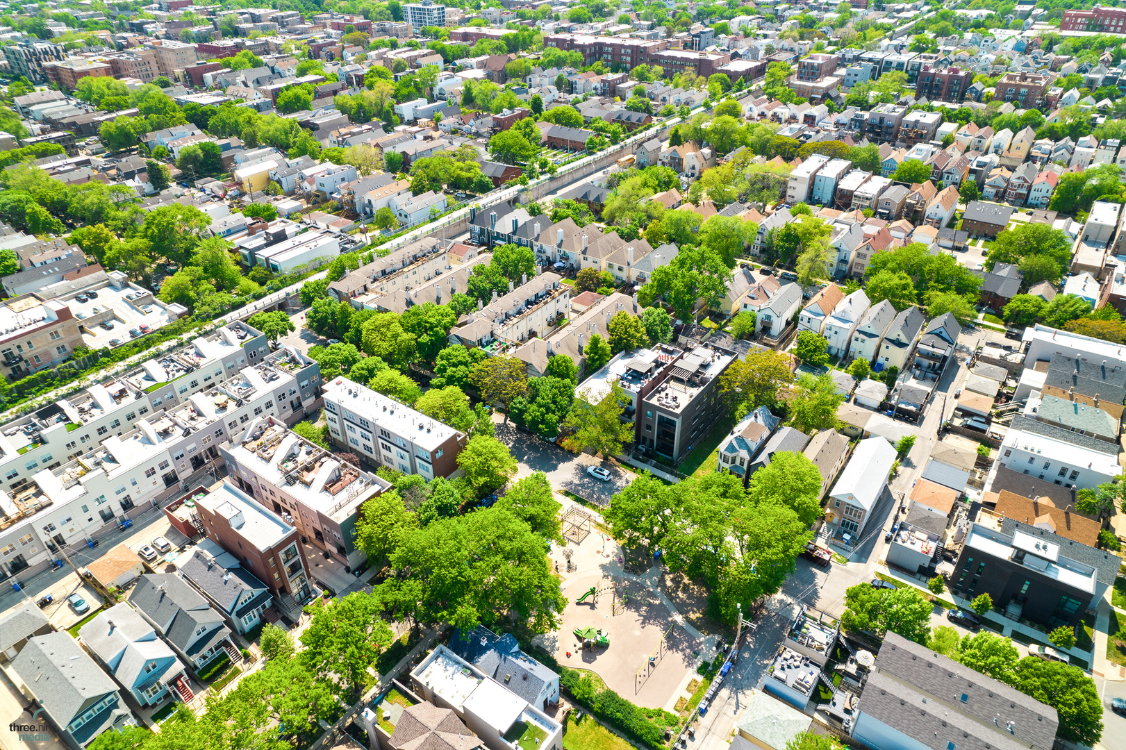 Bright and sunny corner end-unit townhouse ideally located near the heart of Bucktown, just steps from the 606 Trail at Rockwell, Lucy Flower Park, and the Western Blue Line. The open-concept main level features a renovated kitchen with new stainless-steel appliances, maple cabinetry, granite countertops, and hardwood floors throughout. The living and dining area offers a cozy gas fireplace and built-in TV nook. The second level includes two bedrooms, a full bath, and laundry. The top floor features a fully enclosed third bedroom or den with an en-suite bath and access to a spacious new roof deck, perfect for entertaining or relaxing outdoors. Additional updates include all-new energy-efficient windows installed last year, a new garage door, and dual-zoned heating for comfort and efficiency. Enjoy move-in-ready living in one of Chicago’s most sought-after neighborhoods, schedule your showing today and see everything this Bucktown gem has to offer.
