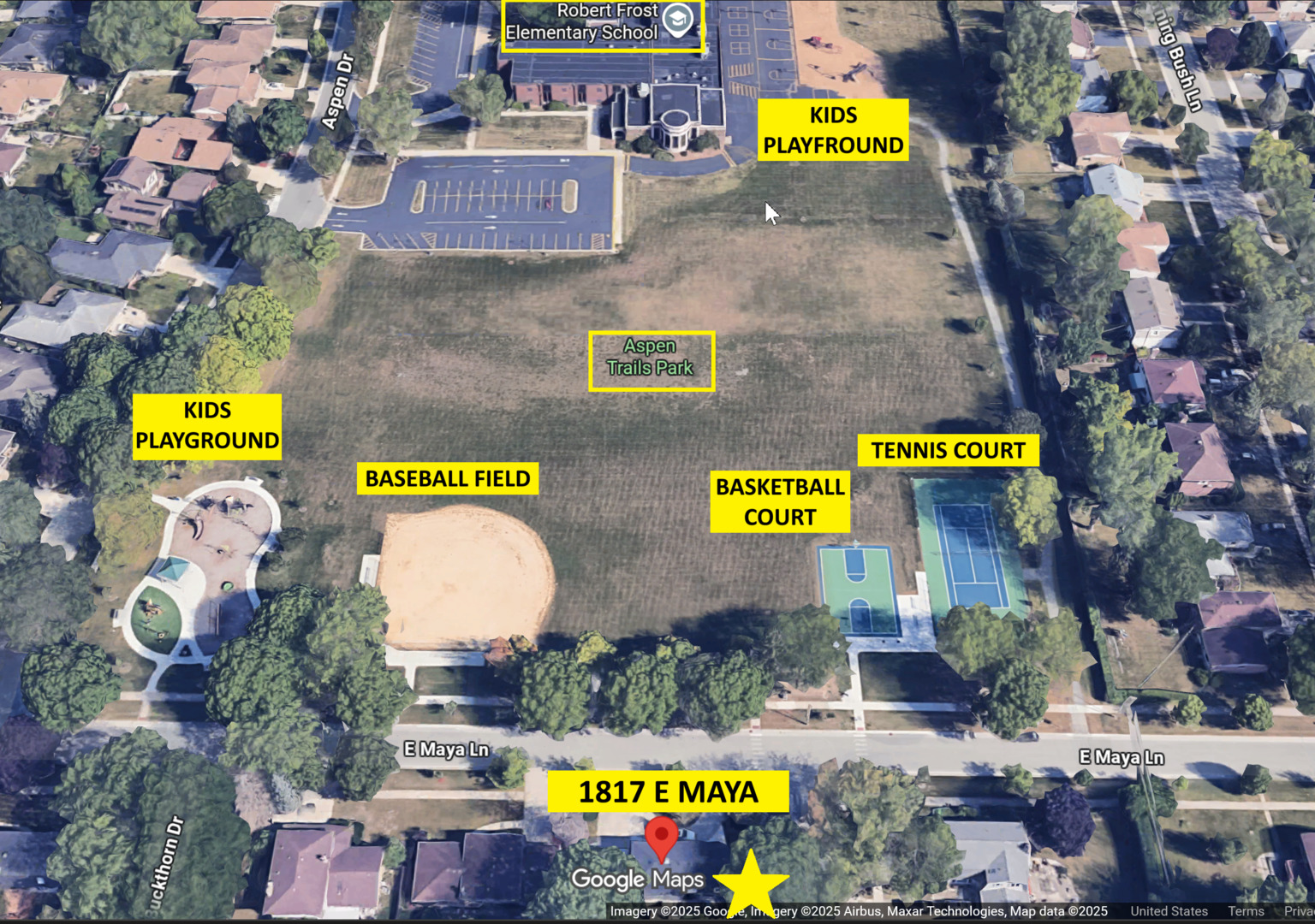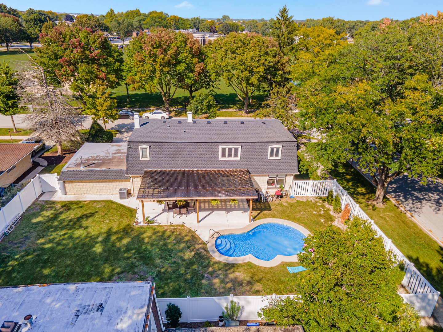 Welcome to this beautifully updated, true 5-bedroom, 2.1-bath home that offers modern elegance, spacious living, and a backyard designed for entertaining. Come inside to a very bright, open floor plan that flows seamlessly from the spacious living and dining spaces into the kitchen, ideal for entertaining. Modern sleek kitchen, accented by a beautiful kitchen island, featuring white cabinets, stainless steel appliances, and quartz countertops. Built-in drawer-style microwave, tons of storage, and a large pantry. Additional living space in the cozy family room with a wood-burning (gas starter) fireplace. Upstairs, you’ll find a large private primary suite with an updated bath, double vanity, and a walk-in closet. A stunning main bathroom with 4 additional sizable bedrooms, all freshly painted with new carpet and lots of closet space, finishes off the 2nd floor. Step outside to a large fenced backyard with a massive covered patio and your gorgeous sparkling in-ground pool. Perfect for hosting, gatherings, and all the summer parties! Fully finished heated 2-car garage. A partially finished full-size basement offers you another whole level of potential living space. Newer Roof (2021). Right across from Aspen Trail Park with kids’ playgrounds, baseball field, basketball, and tennis courts. This move-in-ready home perfectly combines comfort, style, and convenience. Don’t miss your chance to make it yours!