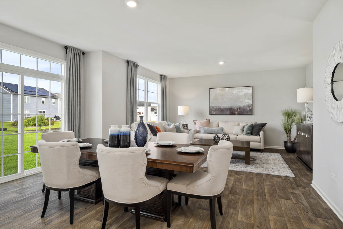 Discover yourself at 1819 Legacy Pointe Blvd. in Plainfield, Illinois, a beautiful new home in our Whisper Glen community. This home will be ready for a Spring move-in! The homesite includes a beautiful stone facing on the garage, and fully sodded yard. This Holcombe plan offers 2,356 square feet of living space with a flex room, 4 bedrooms, 2.5 baths, 9-foot ceilings on first floor, and full basement. Entertaining will be easy in this open-concept kitchen and family room layout with a large island with an overhang for stools and modern shaker cabinetry. Additionally, the kitchen features a walk-in pantry, modern stainless-steel appliances, quartz countertops, and easy-to-maintain luxury vinyl plank flooring. Enjoy your private getaway with your large primary bedroom and en suite bathroom with a raised height dual sink, quartz top vanity, and walk-in shower with chic wall surrounds and decorative glass shower doors. Convenient walk-in laundry room, 3 additional bedrooms with a full second bath and a linen closet complete the second floor. All Chicago homes include our America’s Smart Home Technology, featuring a smart video doorbell, smart Honeywell thermostat, smart door lock, Deako smart light switches and more. Exterior and Interior Photos are of similar home and model home. Actual home built may vary.