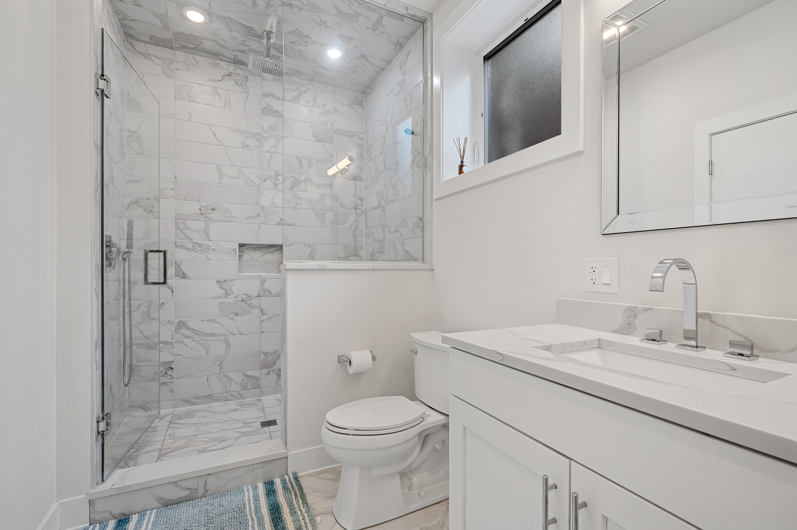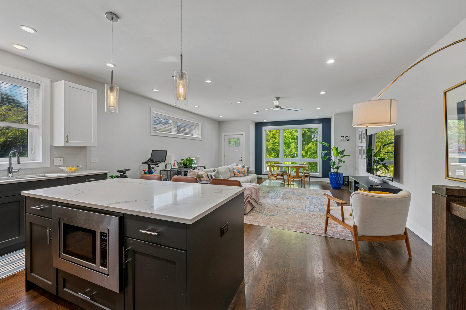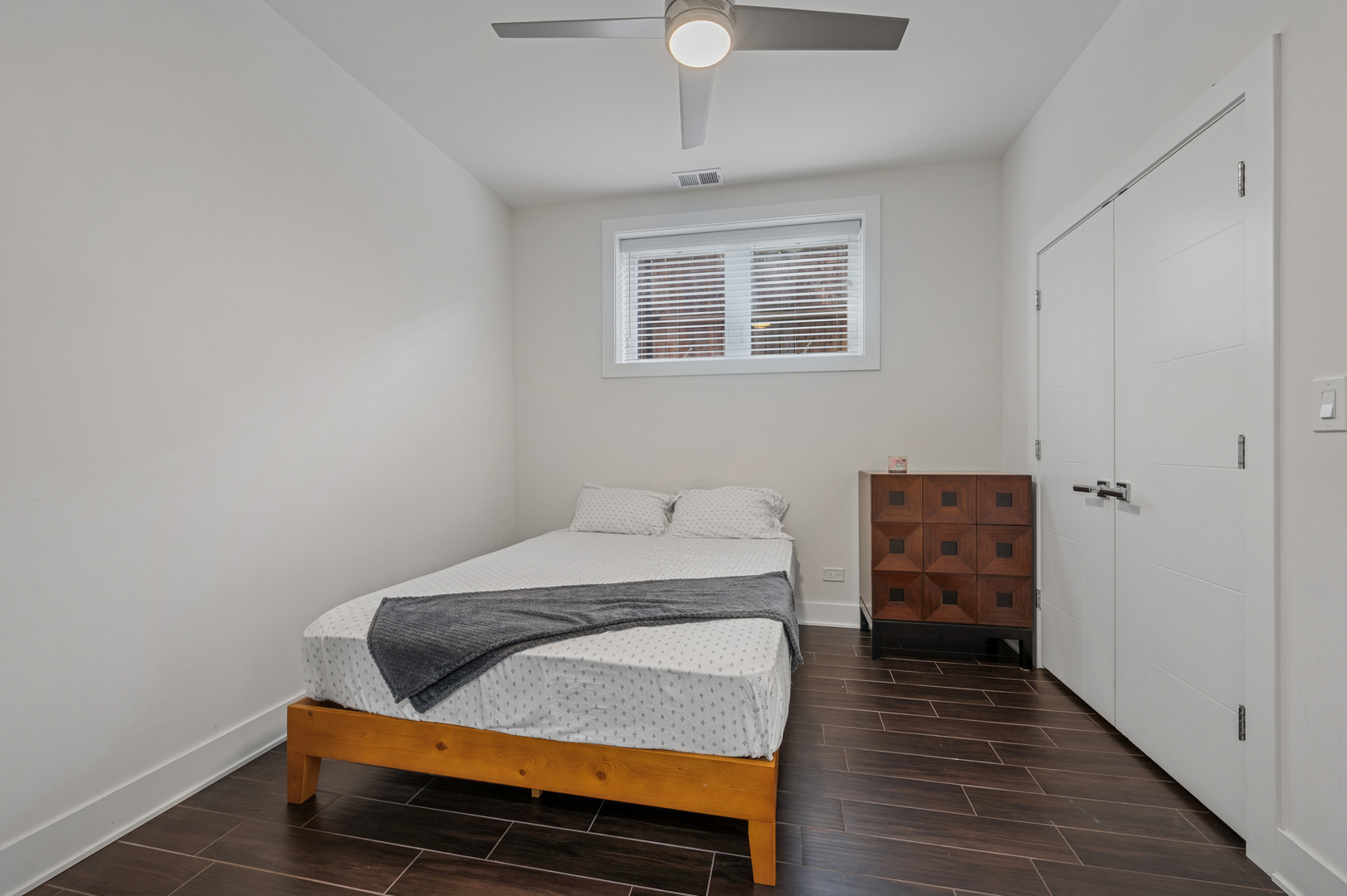 Don’t miss this spectacular 3-bedroom, 3-bath duplex down featuring the best of red-hot Logan Square. Built in 2019, this home is part of a boutique 8-unit building, nestled in a quiet neighborhood right next to the 606 Trail. The main level features an expansive, open-concept living, kitchen, and dining area with abundant natural light from the south & west-facing windows. The chef-inspired kitchen boasts a full stainless steel KitchenAid appliance package, stylish two-tone cabinetry, and quartz countertops. A versatile third bedroom with built in Murphy bed and a full bath complete this level. The lower level is a private sanctuary, with a luxurious primary bedroom that includes a huge custom walk-in closet and a spa-like en-suite bath with a rain-head shower and a separate soaking tub. A generously sized second bedroom also features an en-suite bathroom with custom tile work, making it perfect for guests or family. This home truly lives like a single-family residence with tons of interior storage, an in-unit W/D & additional storage closet. Enjoy a common rooftop deck with incredible skyline views overlooking the 606. One parking space is included in the price. Pet friendly! Located in a quiet and friendly neighborhood, you’ll have unparalleled access to the best of Logan Square, with local favorites like Giant & Scofflaw within a short distance. Life has never been so good!