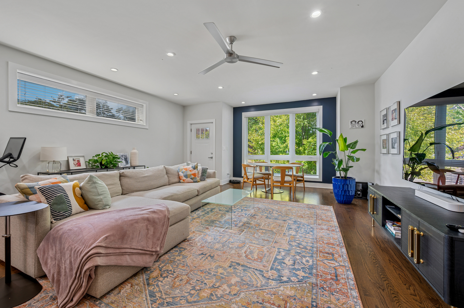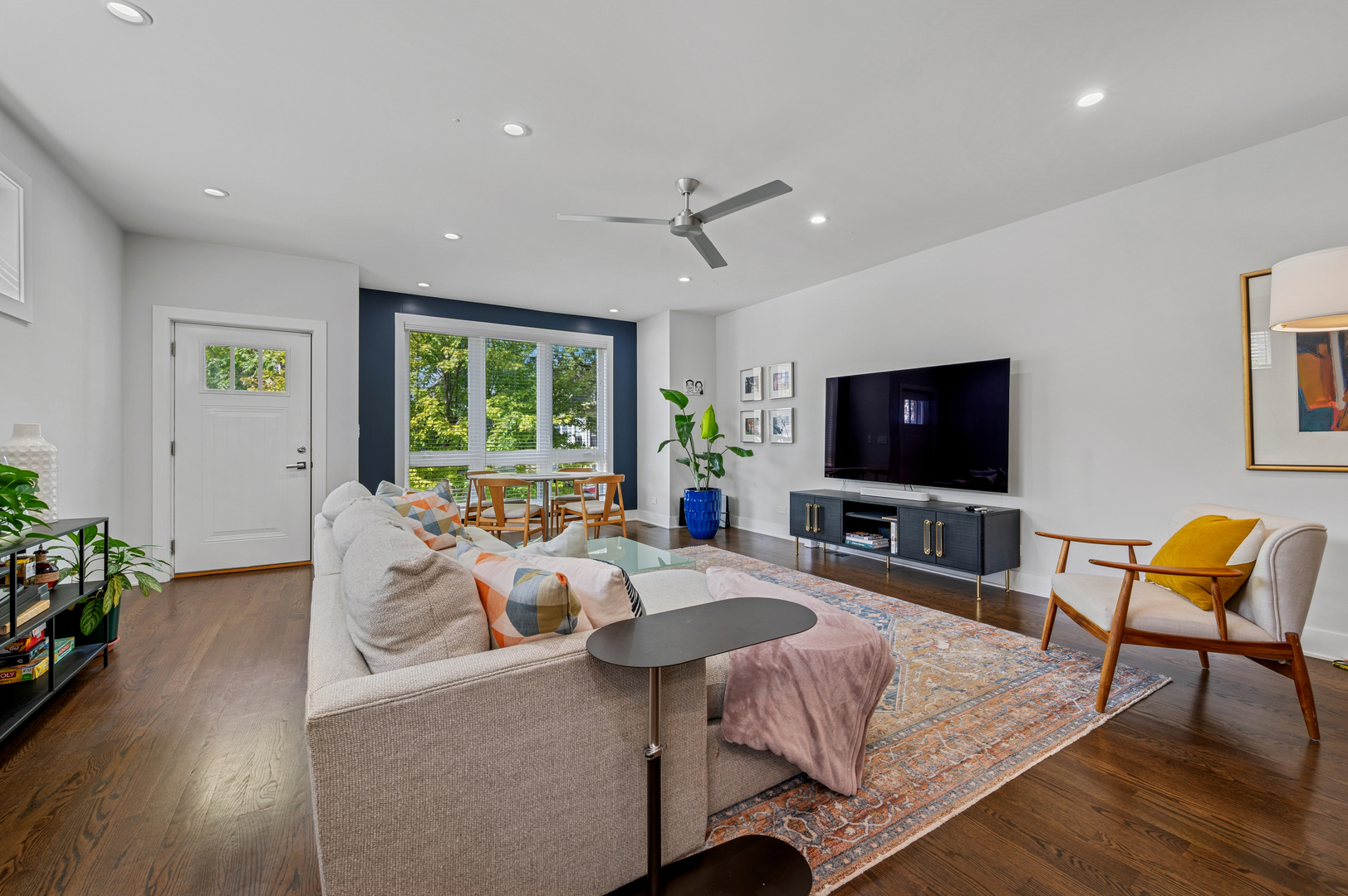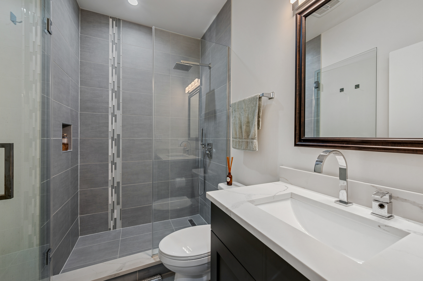 Don’t miss this spectacular 3-bedroom, 3-bath duplex down featuring the best of red-hot Logan Square. Built in 2019, this home is part of a boutique 8-unit building, nestled in a quiet neighborhood right next to the 606 Trail. The main level features an expansive, open-concept living, kitchen, and dining area with abundant natural light from the south & west-facing windows. The chef-inspired kitchen boasts a full stainless steel KitchenAid appliance package, stylish two-tone cabinetry, and quartz countertops. A versatile third bedroom with built in Murphy bed and a full bath complete this level. The lower level is a private sanctuary, with a luxurious primary bedroom that includes a huge custom walk-in closet and a spa-like en-suite bath with a rain-head shower and a separate soaking tub. A generously sized second bedroom also features an en-suite bathroom with custom tile work, making it perfect for guests or family. This home truly lives like a single-family residence with tons of interior storage, an in-unit W/D & additional storage closet. Enjoy a common rooftop deck with incredible skyline views overlooking the 606. One parking space is included in the price. Pet friendly! Located in a quiet and friendly neighborhood, you’ll have unparalleled access to the best of Logan Square, with local favorites like Giant & Scofflaw within a short distance. Life has never been so good!