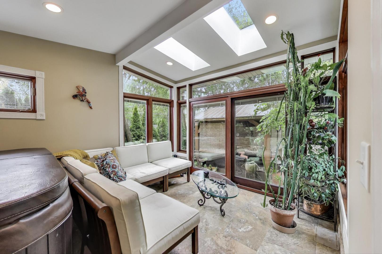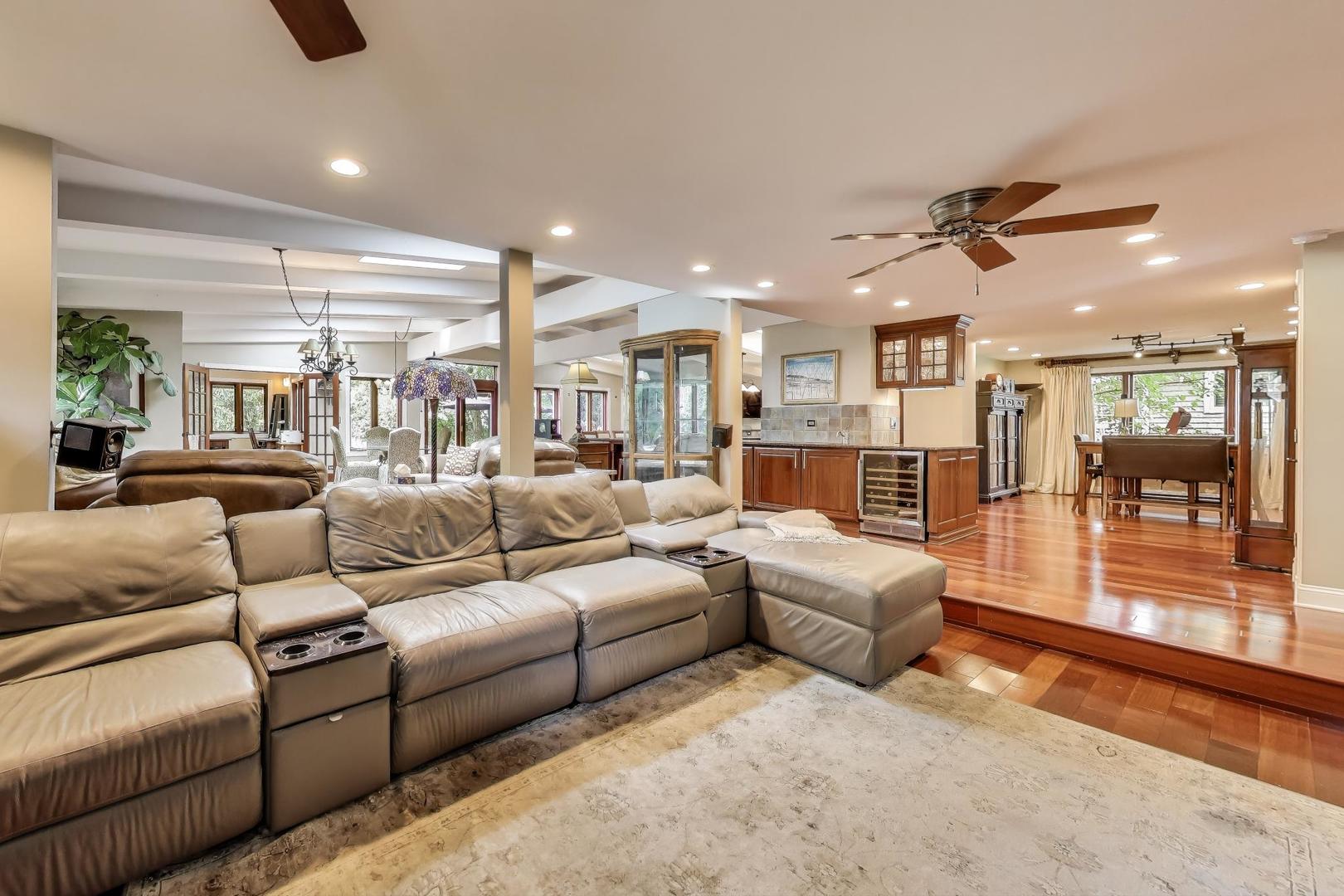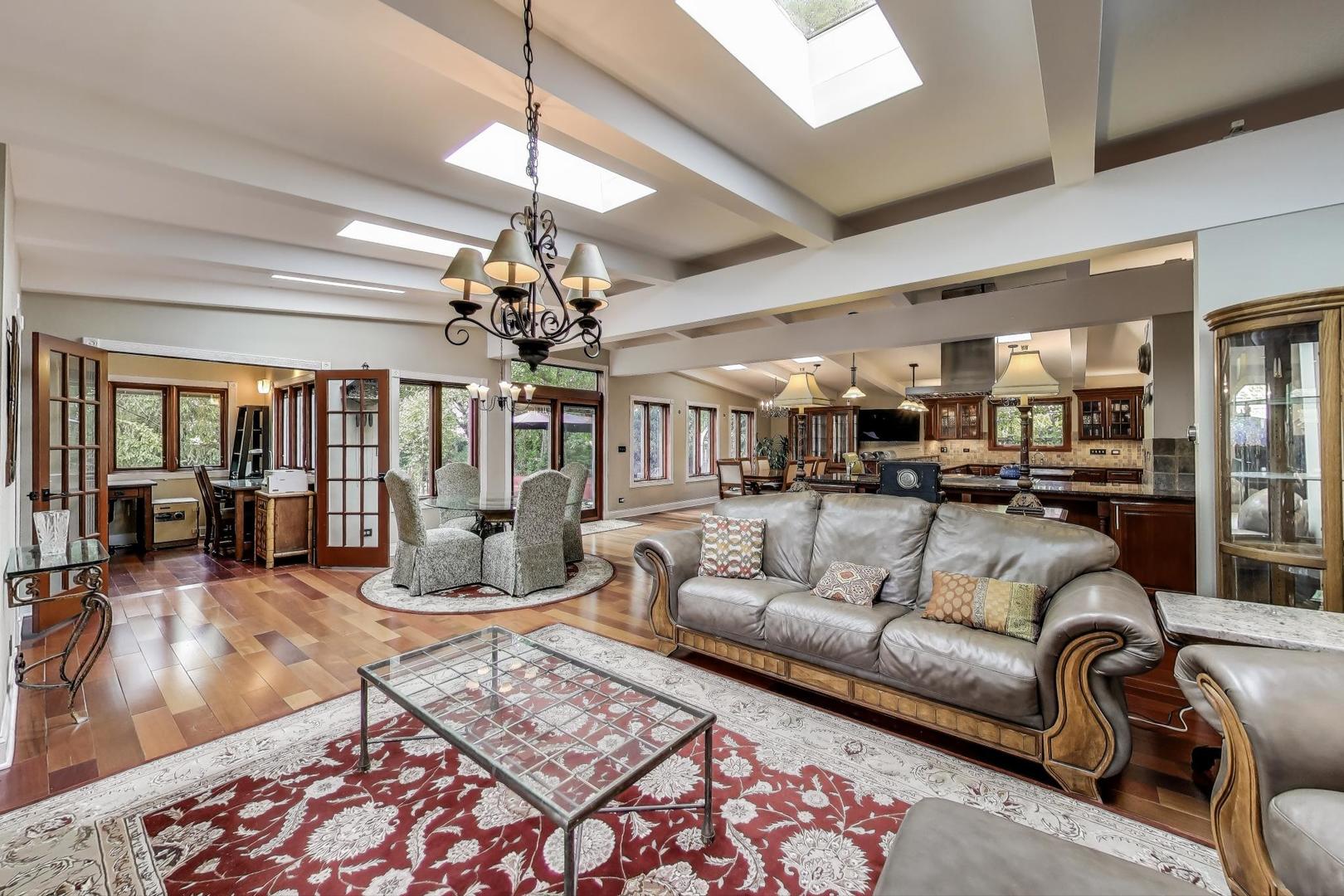 Ready for that dramatic “WOW” when you open the front door… Once in a lifetime chance to buy and enjoy this “expanded” entertaining residence. Move in ready and can close quickly. Photos show sellers furnishings prior to moving with some rooms showing empty. If you have been contemplating major addition to your home… avoid the costs, the delays, the dust and all the life interruptions that it would cause… it’s done here and fair taxes. Starting with massive 50′ x 25′ great room addition to entire back of home – over 4,300 square feet of living space (13 rooms) 2,824 of first floor living space alone and an additional 2,000+ square feet of finished basement with great storage. Incredible main level expansion offers huge open chef’s kitchen centered between great room – family room (with fireplace) – huge eating area/breakfast room – 1st floor butler’s / laundry room – large office – heated sunroom with hot tub – formal living room and separate dining room. Newer hardwood floors throughout – vaulted & beamed ceilings with numerous skylight – custom kitchen – top stainless steel appliances – Wolf 6 burner & 2 burner griddle stove top & oven – unlimited granite countertops – eating areas and more. Master bedroom also expanded with Kohler designed including marble & ceramic mosaics. Enjoy private yard, brick patio with firepit, screened pergola and outdoor kitchen with pizza oven. Prairie Trails School (Pre & Kindergarten -one block away), Indian Grove Elementary, River Trails Middle School, and Hersey High School. Easy access to Chicago via Prospect Heights Metra Train station 1.4 miles away. 1 mile to Woodland Trails Pool. Randhurst Village is nearby with stores, restaurants, movie theaters, and shopping.