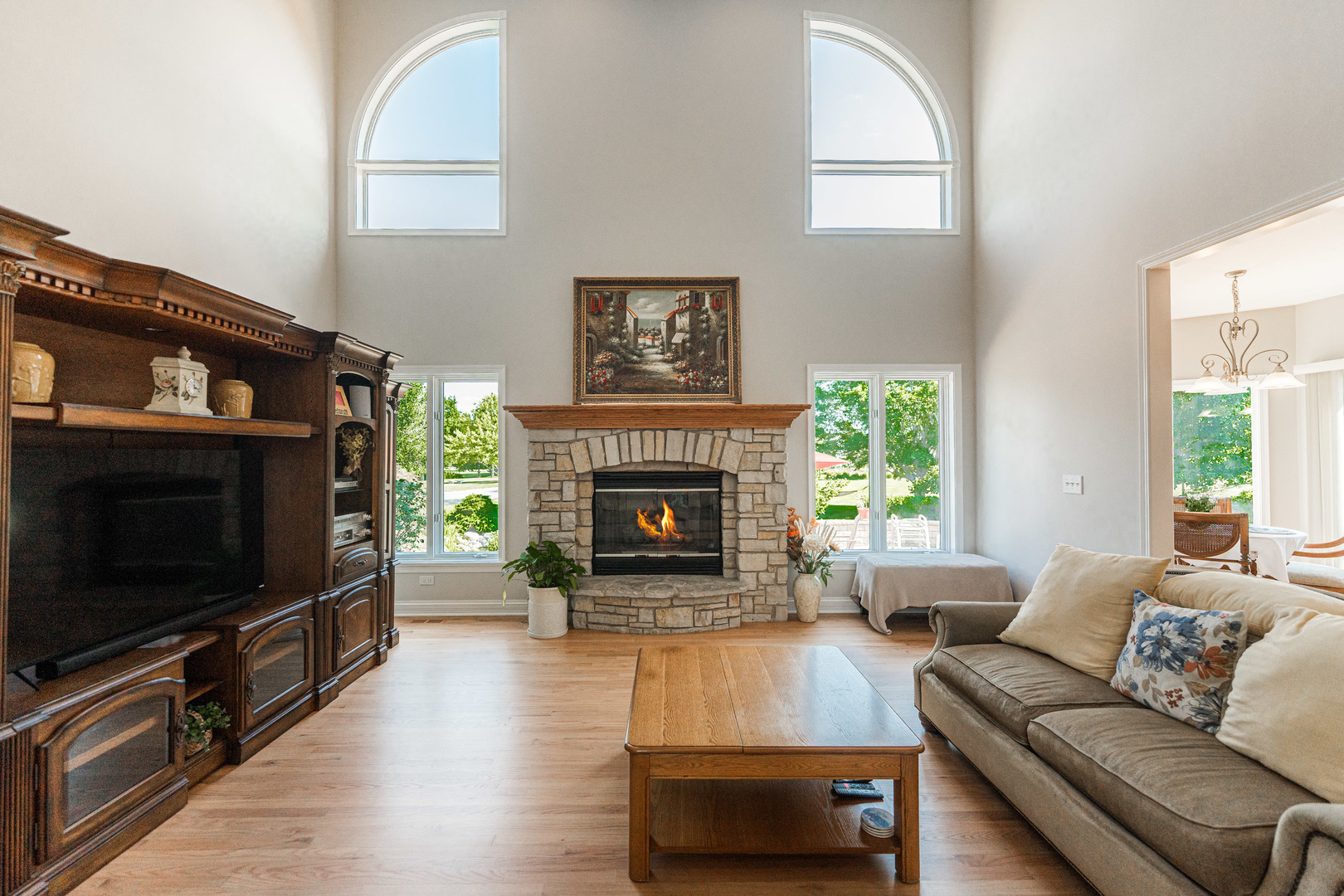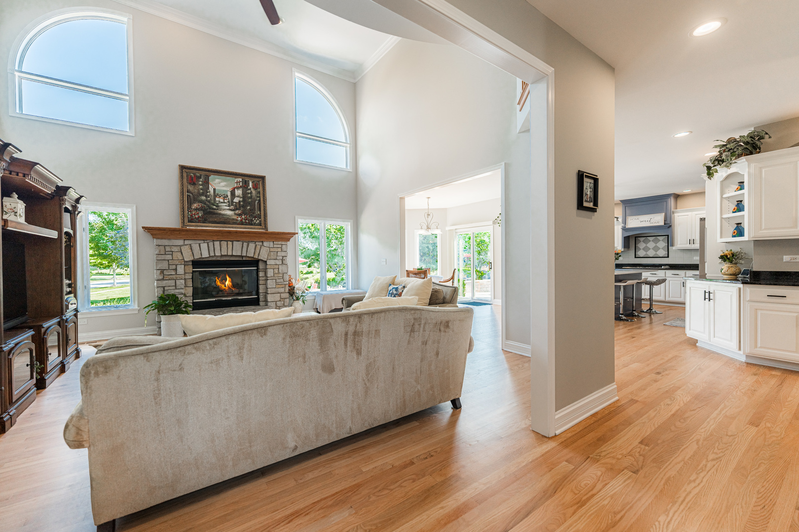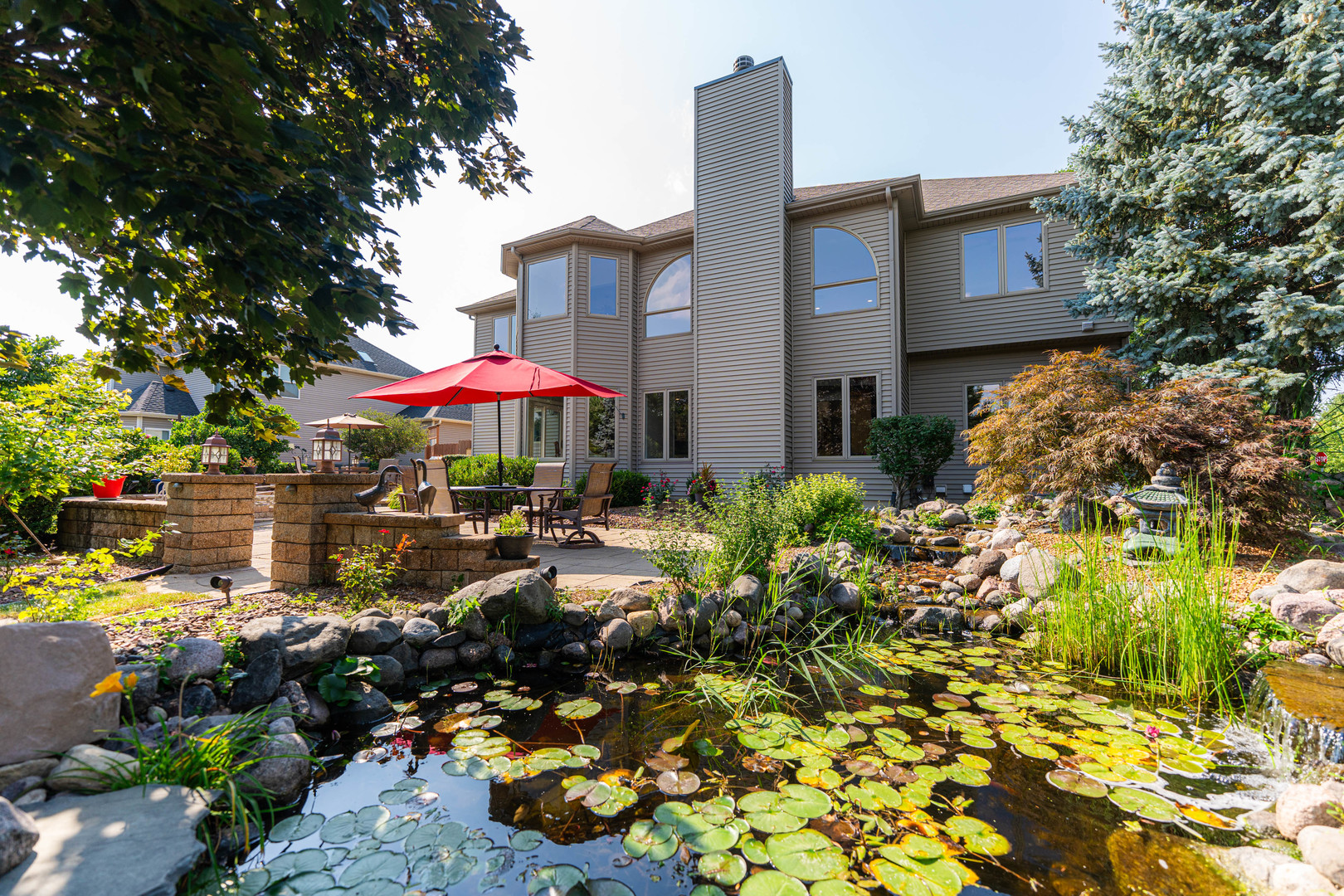 **SOLD BEFORE PROCESSING** Stunning Overstreet-Built Custom Home | Naperville School District 204 – Neuqua Valley HS Located in the desirable Fairways of Augusta subdivision, this exceptional 6-bedroom, 5-bathroom custom home by renowned Overstreet Builders offers timeless craftsmanship, modern updates, and serene pond views-all within the sought-after Neuqua Valley High School attendance area. Set on a prime corner lot with open space and a natural pond behind, this single-owner home welcomes you with soaring ceilings, elegant architectural details, and abundant natural light. The two-story family room features a striking natural stone fireplace, flowing seamlessly into the formal dining room with a statement chandelier in the Foyer and into the open-concept kitchen. The kitchen boasts freshly refinished hardwood floors, quartzite countertops, custom cabinetry, stainless steel appliances, and newly updated KitchenAid refrigerator and dishwasher (2024). A sunroom and breakfast area overlook the professionally landscaped backyard with a low-maintenance koi pond-your private outdoor oasis. The main level includes a versatile bedroom or office with an adjacent full bath-perfect for guests or multi-generational living. Upstairs, you’ll find four spacious bedrooms with vaulted ceilings, ceiling fans, and walk-in closets. The luxurious master suite offers extended sitting space with tranquil views, a spa-like bath with a steam shower, soaking tub, dual vanities, a separate toilet room, and a large organized walk-in closet. The junior suite has its own full bath, while the remaining 2 bedrooms share a Jack-and-Jill bath. An additional and convenient second-floor laundry adds everyday ease. The newly finished basement (2024) extends your living space with a large recreation area, fireplace, bedroom, full bath, fitness space, and plenty of storage. Recent updates include fresh paint throughout (2024), new carpet (2024), refinished wood floors (2024), and a whole-home humidifier (2024). Additional features include a 3-car garage, high ceilings throughout, and easy access to I-55, downtown Naperville, downtown Plainfield, and several local golf courses. This move-in-ready home combines elegance, functionality, and unbeatable location-an exceptional find in Naperville District 204. Square Footage Comments: 3678 sqft first and second floor with an additional 1400 sqft of approx finished basement space providing over of 5000 sqft of living space.