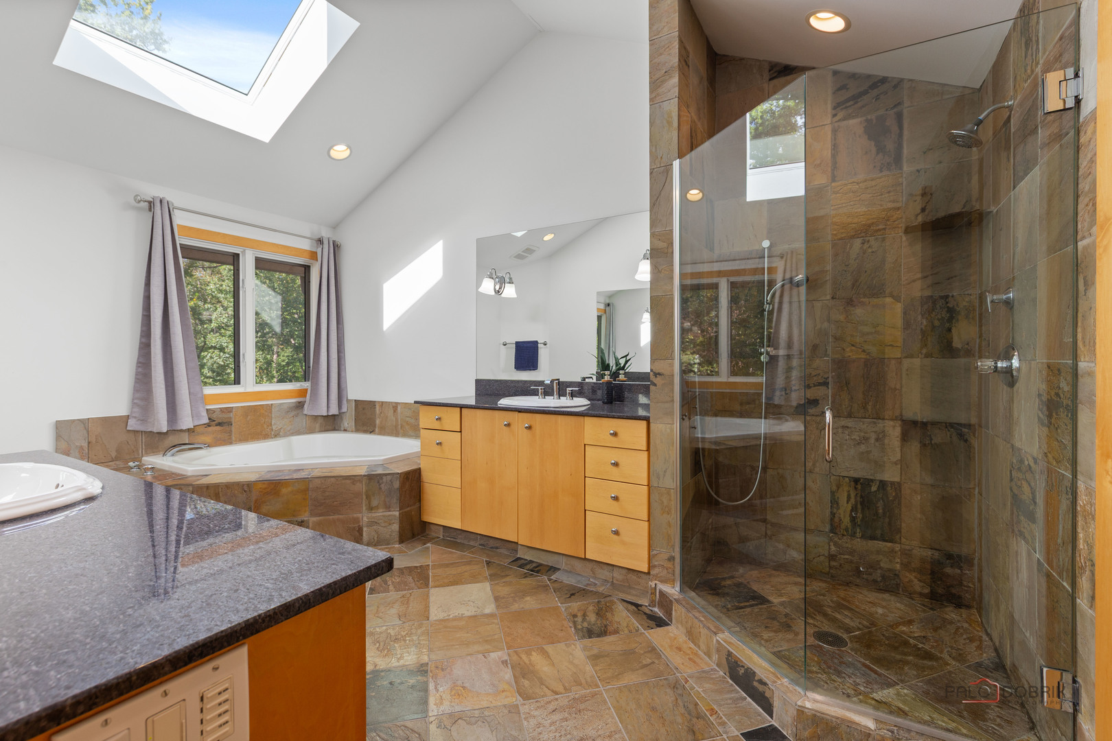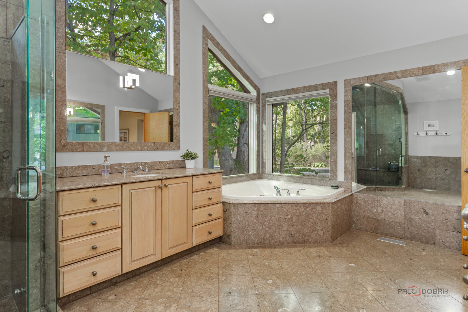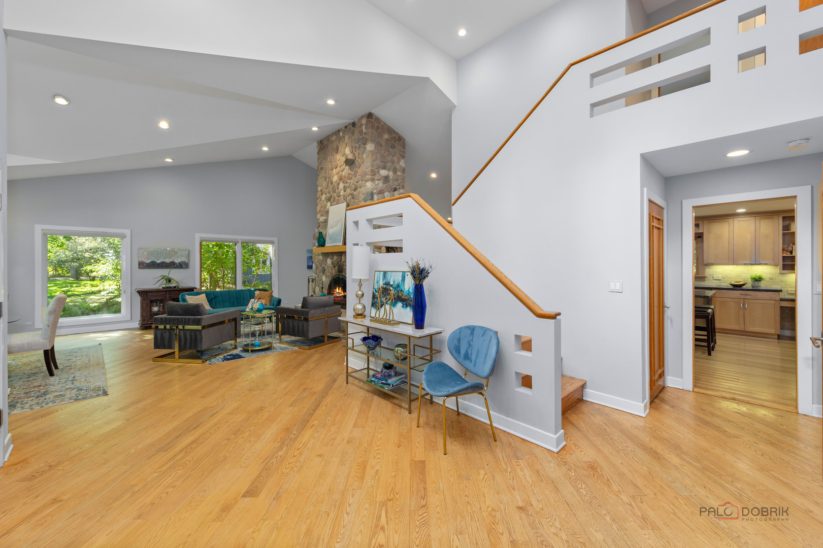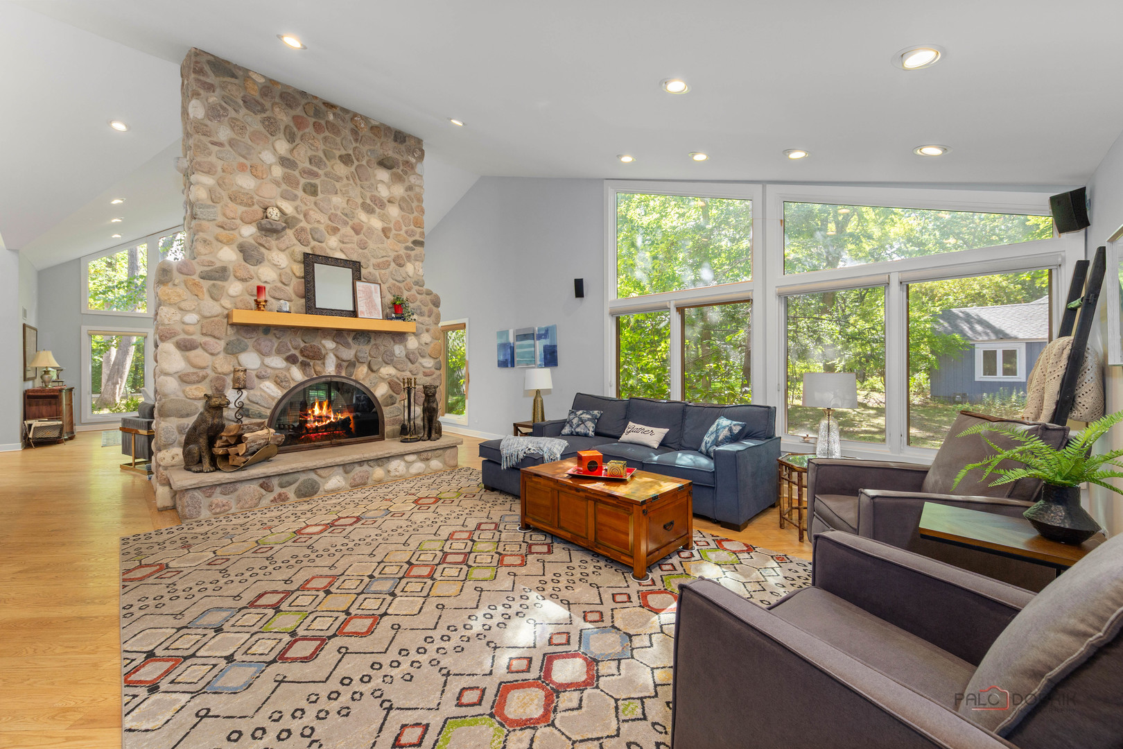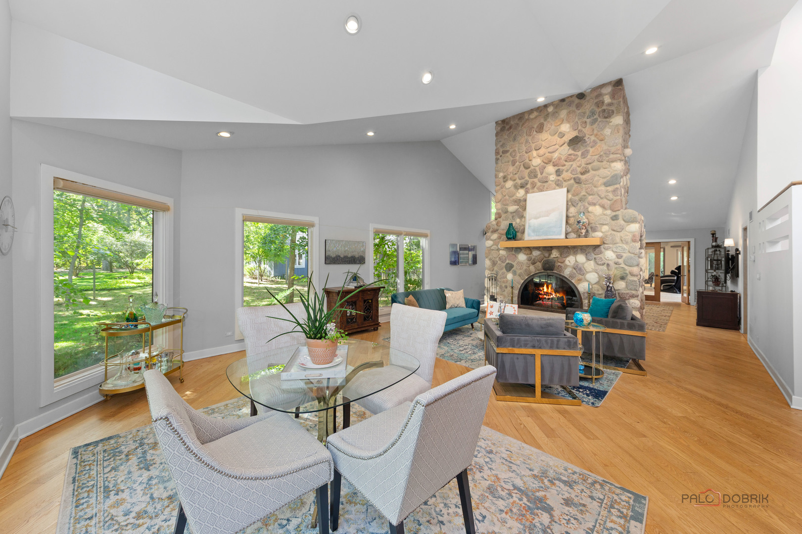 Unbelievable Dream Home in Riverwoods! NEW 2024 roof, skylights, and gutters. Tucked away on nearly 2 wooded acres, this private oasis offers the perfect blend of luxury, comfort, and resort-style living. The beautifully landscaped backyard features a heated in-ground pool with slide, newer equipment including heater and automatic pool cover, and a spectacular pool house-complete with a lounge area, wet bar, and full bath, making outdoor entertaining effortless. Inside, the home is equally impressive. This stunning 5-bedroom, 6-bath residence boasts soaring ceilings, gleaming hardwood floors, skylights, and floor-to-ceiling windows that flood the space with natural light. A grand two-story entry sets the tone, leading into the expansive living room with a dramatic floor-to-ceiling multi-sided stone fireplace, shared with the cozy family room. The formal dining room offers the perfect setting for gatherings, with direct access to the patio for seamless indoor/outdoor entertaining. At the heart of the home is the gourmet kitchen, featuring a large island with breakfast bar, granite countertops, stainless steel appliances that have all been replaced since 2021, and abundant cabinetry. The main level primary suite is a showstopper-your personal retreat with vaulted ceilings, two spacious walk-in closets, access to a serene screened-in porch, and a spa-like ensuite with dual vanities, whirlpool tub, and separate steam shower. An elegant office with French doors and a second main-level bedroom with shared ensuite add to the flexible floor plan. Upstairs, discover a second optional primary suite with vaulted ceilings, private ensuite, walk-in closet, and a private balcony overlooking the breathtaking grounds. Two additional bedrooms and a full bath complete the upper level. The finished basement offers endless possibilities with a large recreation room, full bath, exercise room, and laundry area. Additional highlights include a circular driveway with heated garage, newer fenced-in backyard, two sheds, and proximity to the Edward L. Ryerson Conservation Area-a large nature preserve offering hiking, snowshoeing, wildlife viewing, and a charming farm area. Easy access to highways, yet tucked away in peaceful privacy. This one-of-a-kind property truly has it all-space, luxury, and the perfect setting to make lifelong memories.