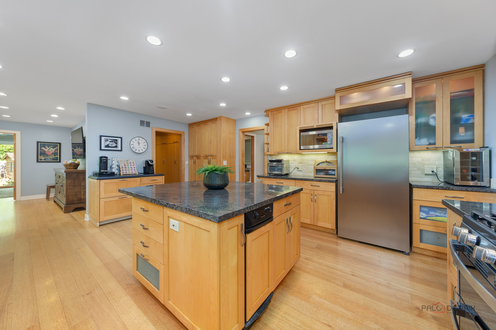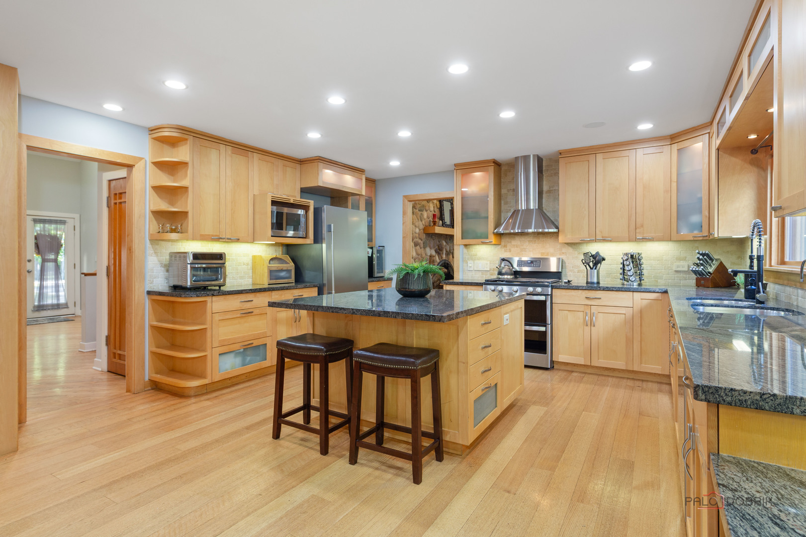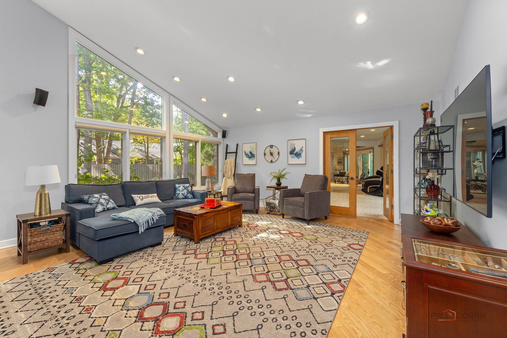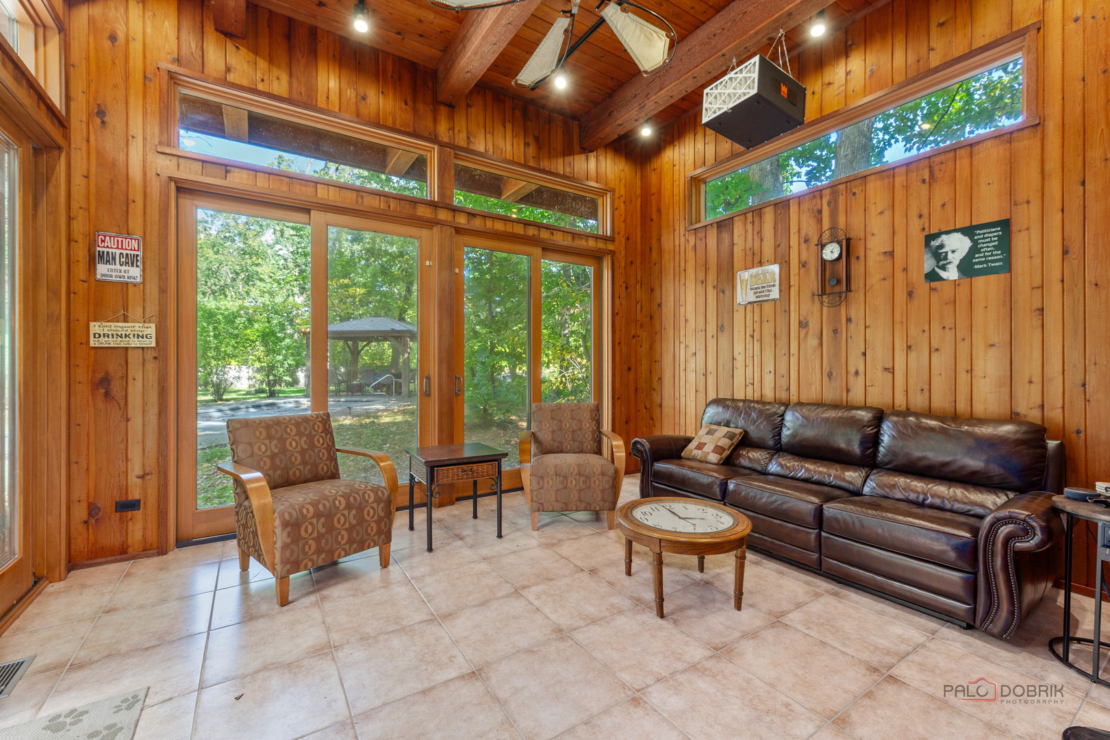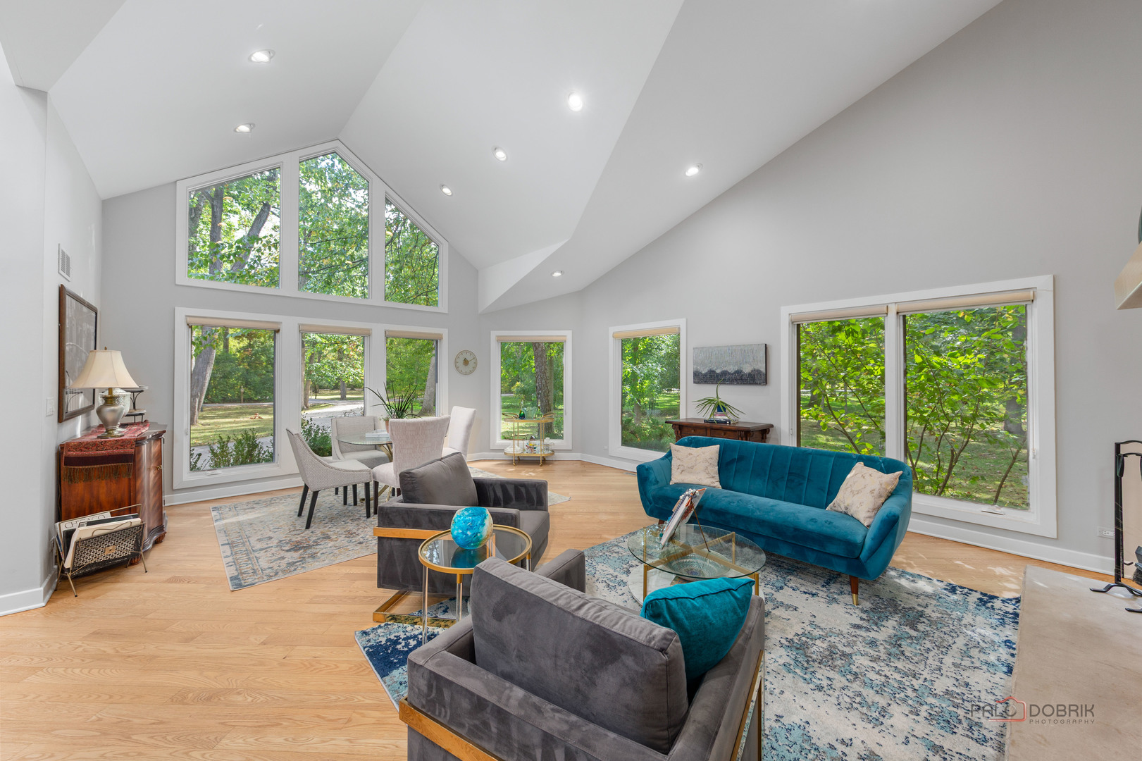 Unbelievable Dream Home in Riverwoods! NEW 2024 roof, skylights, and gutters. Tucked away on nearly 2 wooded acres, this private oasis offers the perfect blend of luxury, comfort, and resort-style living. The beautifully landscaped backyard features a heated in-ground pool with slide, newer equipment including heater and automatic pool cover, and a spectacular pool house-complete with a lounge area, wet bar, and full bath, making outdoor entertaining effortless. Inside, the home is equally impressive. This stunning 5-bedroom, 6-bath residence boasts soaring ceilings, gleaming hardwood floors, skylights, and floor-to-ceiling windows that flood the space with natural light. A grand two-story entry sets the tone, leading into the expansive living room with a dramatic floor-to-ceiling multi-sided stone fireplace, shared with the cozy family room. The formal dining room offers the perfect setting for gatherings, with direct access to the patio for seamless indoor/outdoor entertaining. At the heart of the home is the gourmet kitchen, featuring a large island with breakfast bar, granite countertops, stainless steel appliances that have all been replaced since 2021, and abundant cabinetry. The main level primary suite is a showstopper-your personal retreat with vaulted ceilings, two spacious walk-in closets, access to a serene screened-in porch, and a spa-like ensuite with dual vanities, whirlpool tub, and separate steam shower. An elegant office with French doors and a second main-level bedroom with shared ensuite add to the flexible floor plan. Upstairs, discover a second optional primary suite with vaulted ceilings, private ensuite, walk-in closet, and a private balcony overlooking the breathtaking grounds. Two additional bedrooms and a full bath complete the upper level. The finished basement offers endless possibilities with a large recreation room, full bath, exercise room, and laundry area. Additional highlights include a circular driveway with heated garage, newer fenced-in backyard, two sheds, and proximity to the Edward L. Ryerson Conservation Area-a large nature preserve offering hiking, snowshoeing, wildlife viewing, and a charming farm area. Easy access to highways, yet tucked away in peaceful privacy. This one-of-a-kind property truly has it all-space, luxury, and the perfect setting to make lifelong memories.