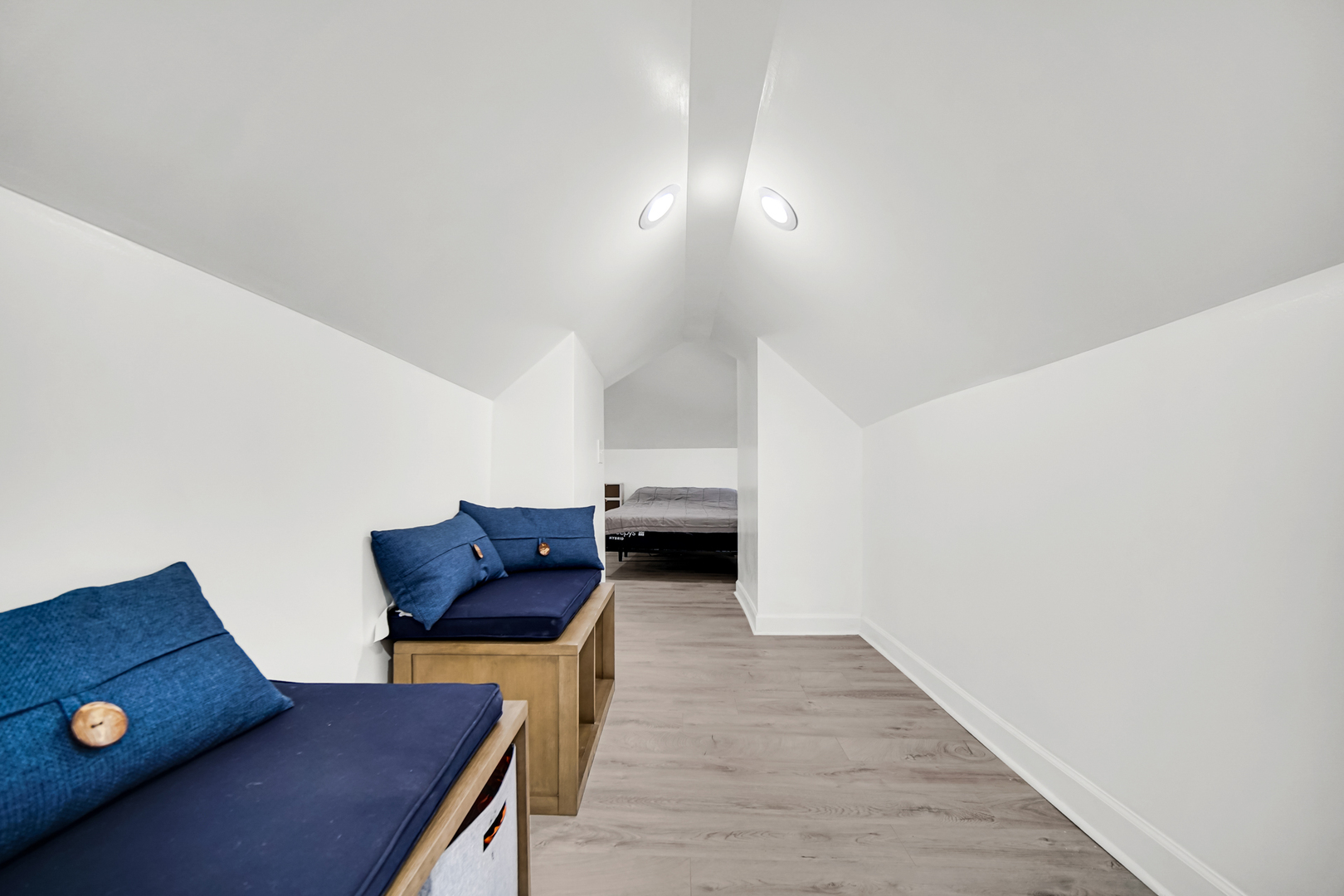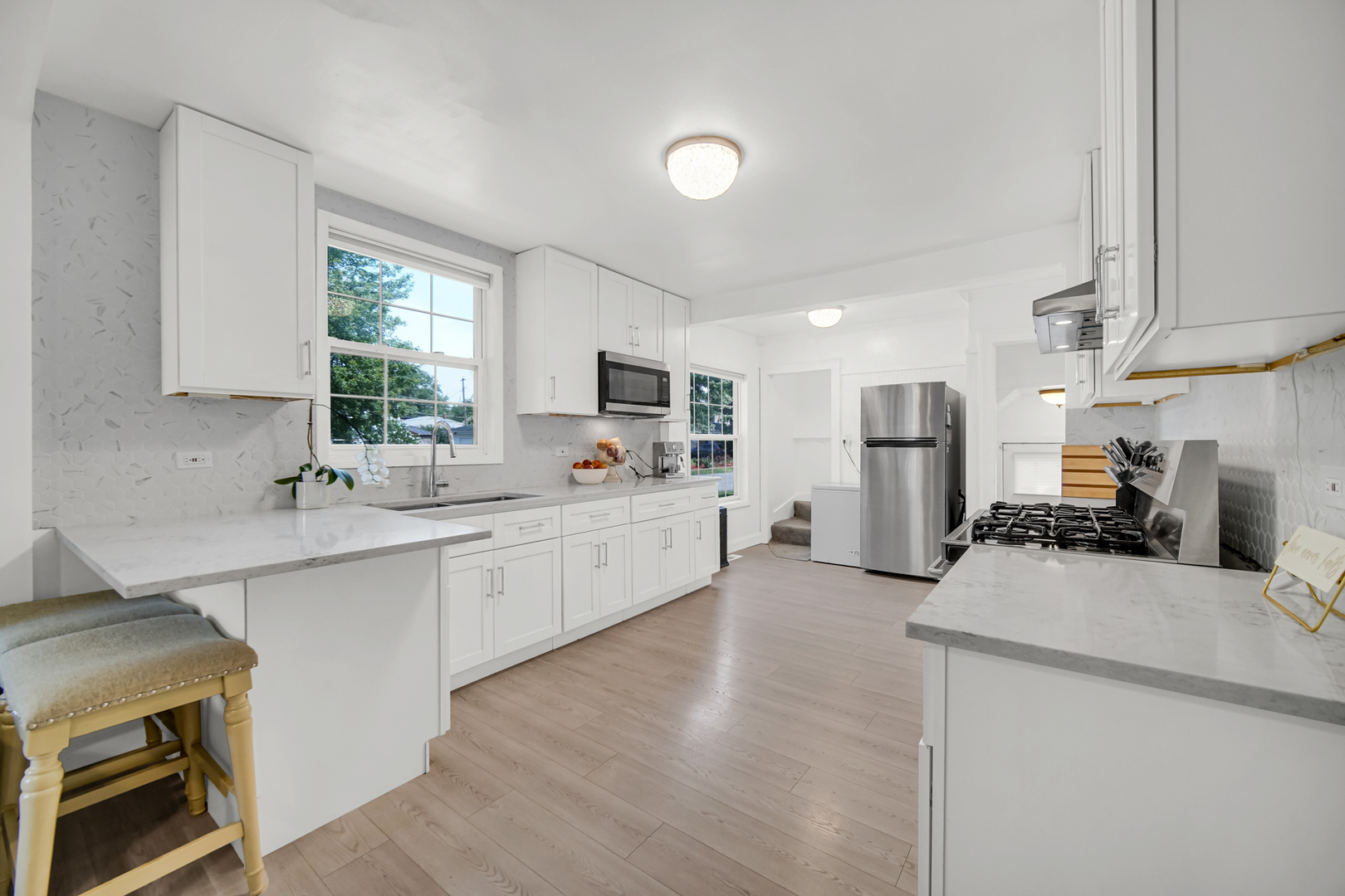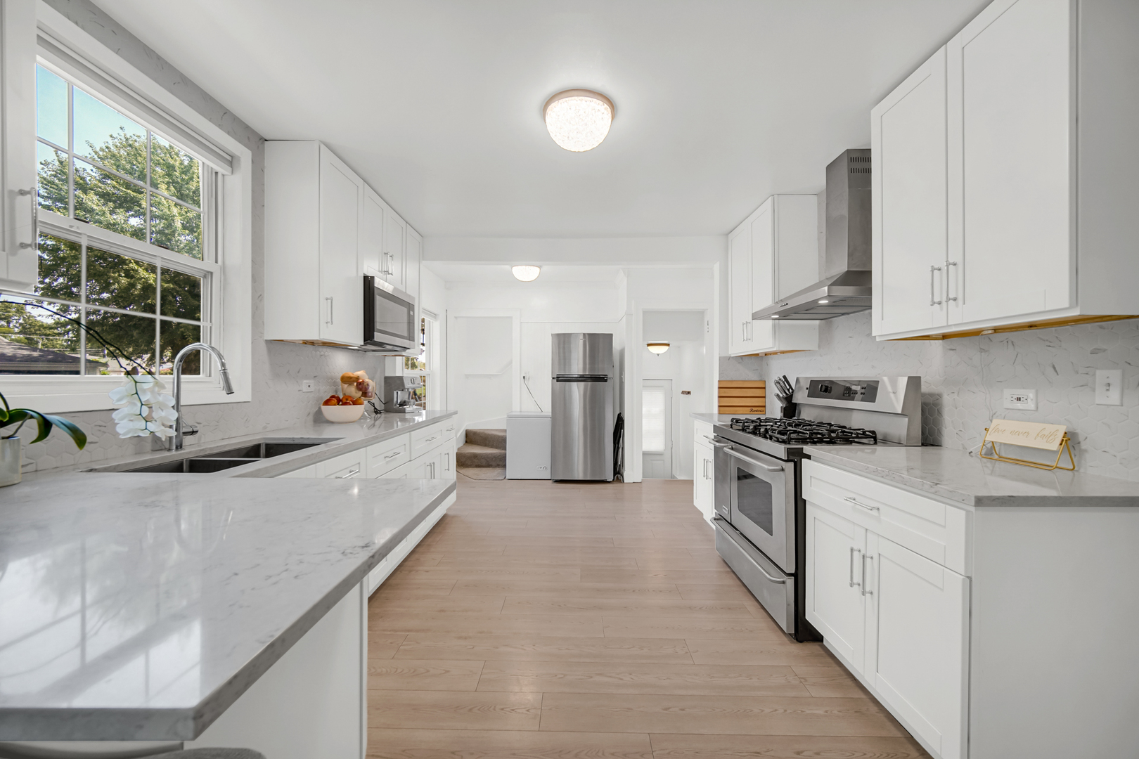 Gorgeous 3 bed, 2 bath in lovely Lansing! Beautiful newly rehabbed kitchen with stainless steel appliances and an airy open floor plan. Two modern rehabbed full bathrooms. Large primary suite on top floor offers great privacy. New furnace in 2023, updated evaporator coil on AC unit, new ductwork, updated electrical and plumbing. Freshly cleaned gutters. New paint and new soffit on garage. New front porch. New window screens. Lots of updates here! Home boasts a large deck and yard as well as a bonus room and a full basement. Minutes from Indiana, which means no taxes on food and cheaper gas. Make a viewing appointment today!