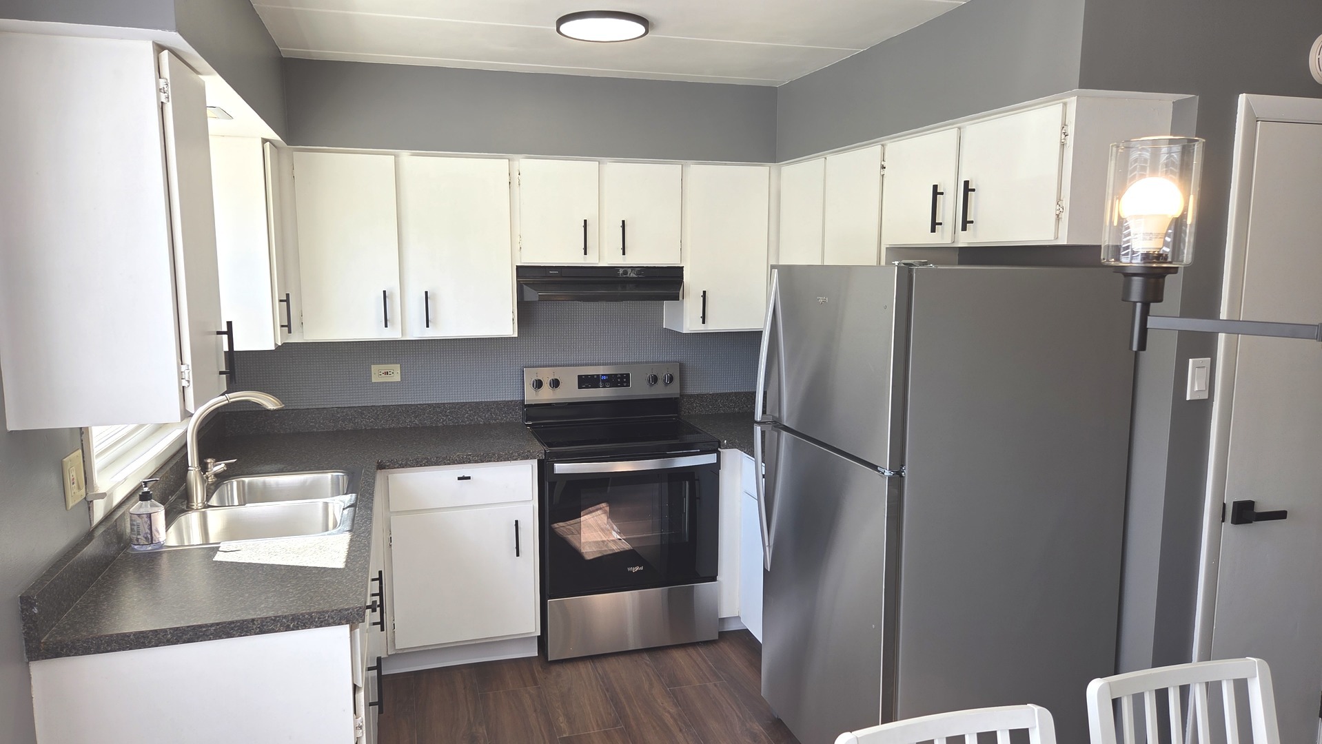 This condo has what you’re looking for and some of what you didn’t even expect! Two bedrooms, two new bathrooms, three parking spots include one outdoor space and your own deeded 2-car garage. This is the best unit in the building–biggest unit, in great condition, and the ONLY unit with a garage. Kitchen has new stainless fridge and range. New LVP flooring throughout entire unit. Entire condo has been painted. Bathrooms are new. Quiet Flexicore building ensures a peaceful experience without hearing neighbors. Also comes with a storage unit. Units can be rented but is currently at it’s cap. Assessments include water and heat.