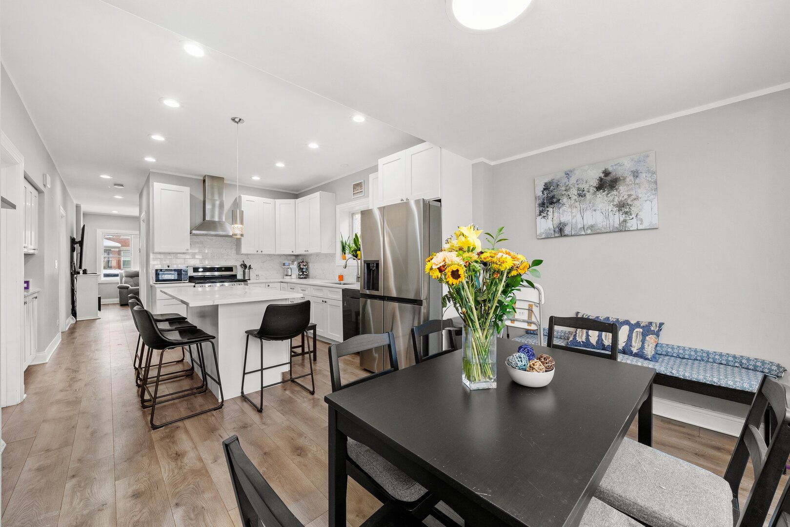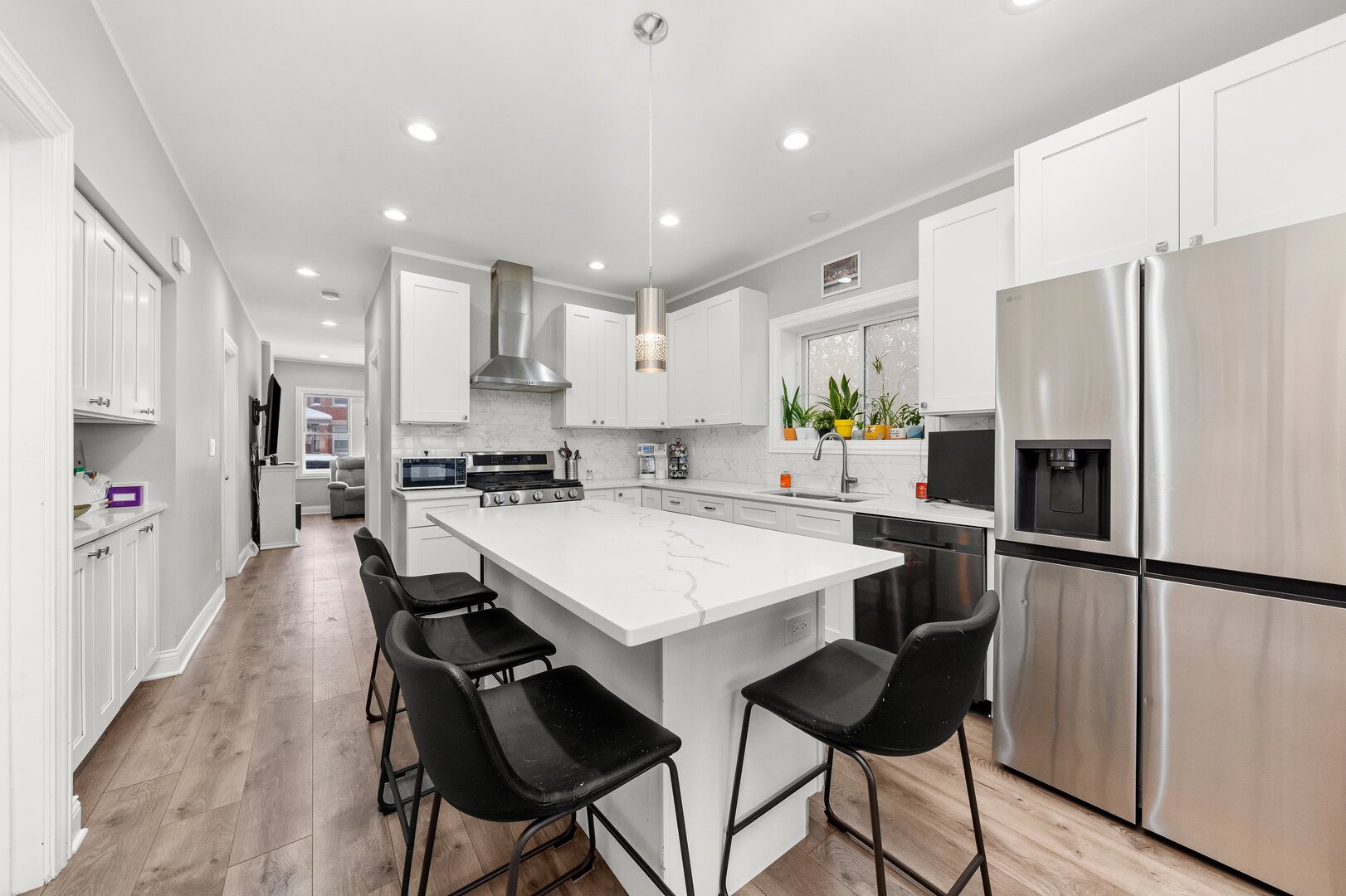 Welcome to this well-maintained and move-in ready 4-bedroom, 2-bathroom home offering a comfortable layout and thoughtful updates throughout. Step into a brand-new kitchen featuring modern quartz countertops, new cabinetry, and new appliances-a bright, fresh space perfect for everyday cooking. The separate dining area overlooks the backyard, allowing natural light to fill the room and creating a pleasant setting for meals and gatherings. The finished basement adds valuable additional living space-ideal for a family room, entertainment area, or a private retreat for guests. Notable improvements include a newer roof, newer windows, updated plumbing and electrical, new siding, and new fencing, providing both function and peace of mind. Outside, the home features an oversized yard with a concrete pad ready for outdoor dining, weekend cookouts, or setting up a cozy seating area. The 2-car garage and new vinyl fencing complete the exterior, offering both convenience and privacy. Located within walking distance to the Metra station, shopping, schools, and everyday amenities, this home offers easy living in a desirable location. A welcoming property with great space and modern comfort-schedule your showing today.
