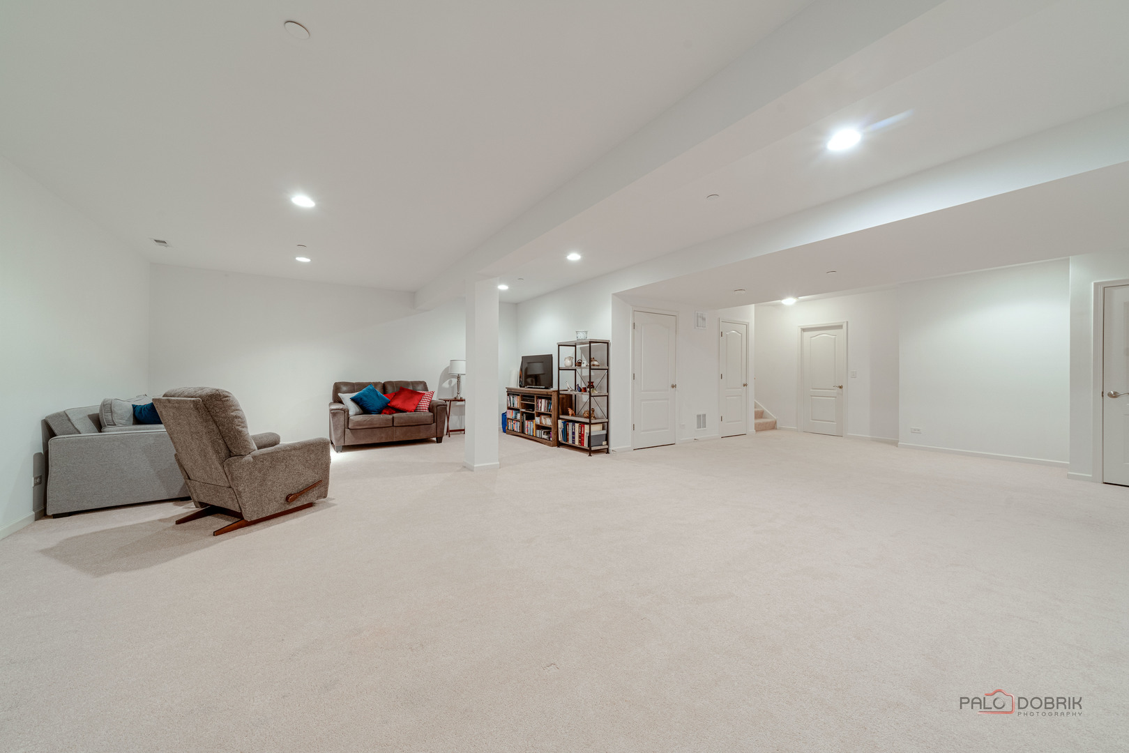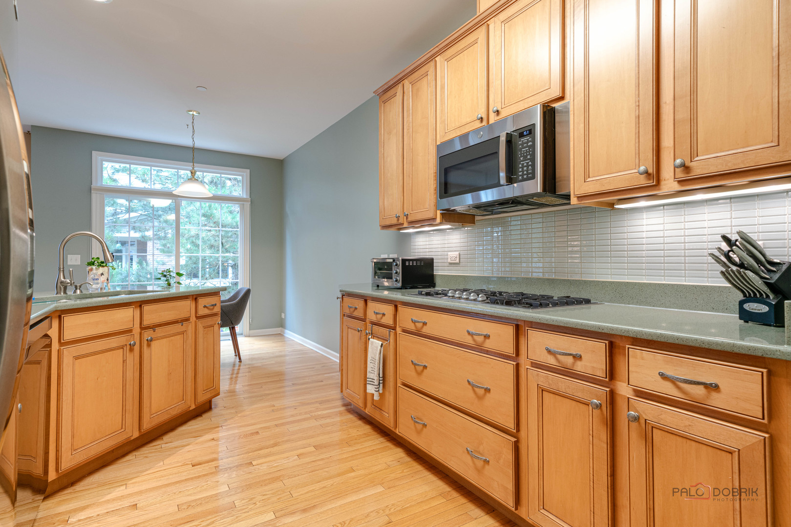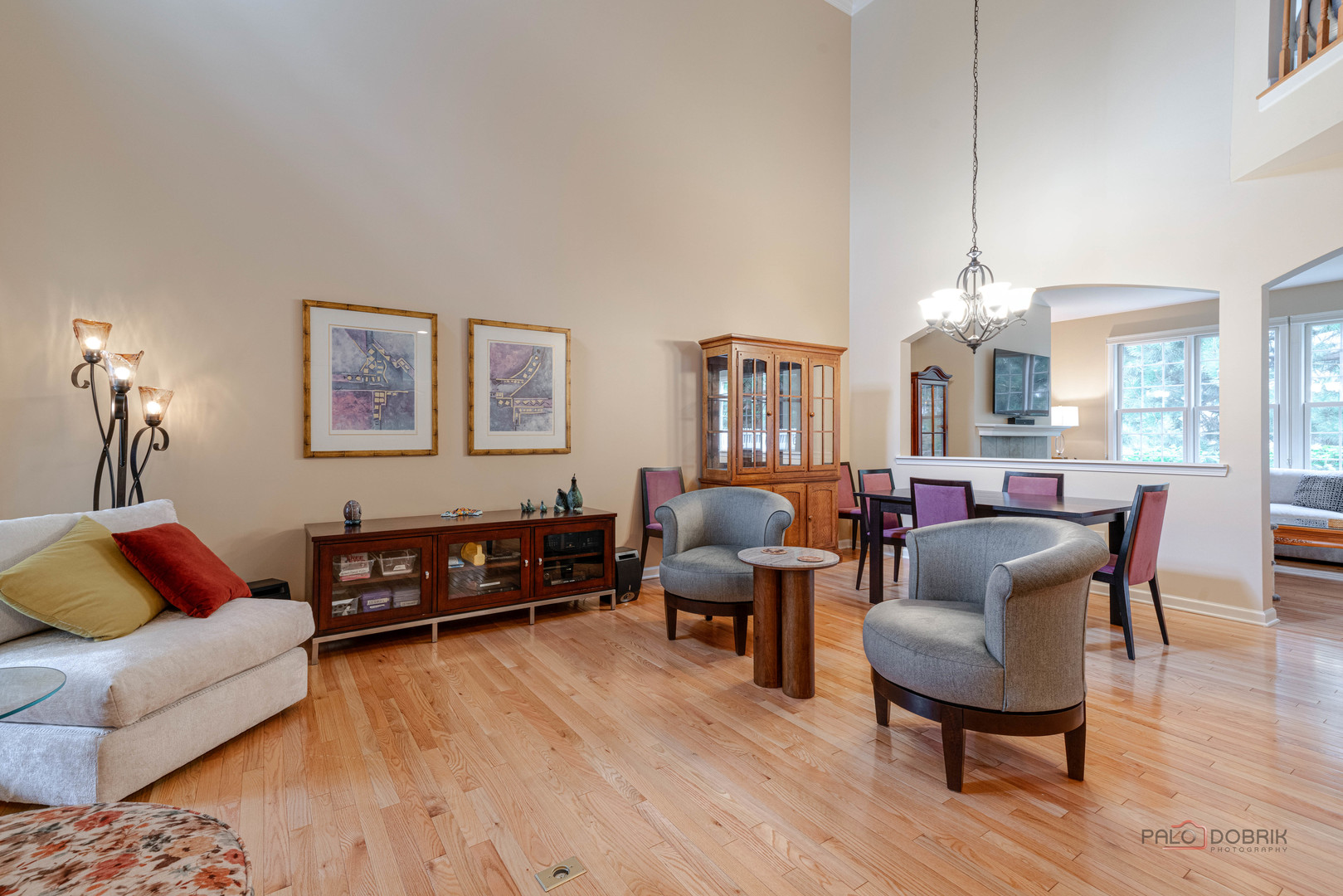 Remarkable and spacious maintenance free living in Victoria Park, a premier 55+ townhome community located in NW Libertyville. Inside the front door you will be greeted by an inviting foyer highlighted by beautiful hardwood flooring that leads the way to the grand two-story living/dining room combo illuminated with natural light. The updated kitchen with breakfast area has open views to the family room and fireplace. The cozy family room basks in natural light and warmth, courtesy of large windows and a charming gas fireplace, perfect for relaxing evenings at home. The adjacent kitchen is a chef’s delight, featuring ample cabinets topped with crown molding, undercabinet lighting, quality stainless steel appliances, including a new refrigerator and dishwasher, and a generous walk-in pantry, providing all the storage you will need for your kitchen essentials. New homeowners can enjoy casual meals in the sunlit breakfast area, which offers sliding door access to your private patio. This spot is perfect for enjoying the fresh air or for entertaining guests at your next summer BBQ. A large powder room completes the main level. Upstairs you will find all new carpet and plenty of space for everyone to call their own. The primary suite offers a high vaulted ceiling, two large walk-in closets, and a private bath with a dual sink vanity, a large whirlpool tub, and a separate shower. The conveniently located laundry room includes a utility sink and new washer and dryer. A full hall bathroom, and two additional bedrooms with large closets complete the second level. The hall bathroom has a recently completed walk-in shower! In the finished and carpeted basement, you’ll find plenty of additional living area with storage and rough-in plumbing for the addition of a full bathroom. This is a large versatile space that can adapt to your lifestyle; be it as a home theater, fitness area, second family room or hobby room. A new water heater with on-demand hot water pump has been installed. There is a large attached two car garage with remote opener. New garage door spring has recently been installed. This wonderful neighborhood is conveniently located minutes from Independence Grove recreational area and bike path, local shopping, restaurants and conveniences. The neighborhood community center includes many scheduled activities and has a gym available to all residents. There is also dedicated walking path around the community. 55 years of age or older Community-occupancy by persons under age 21 is prohibited.