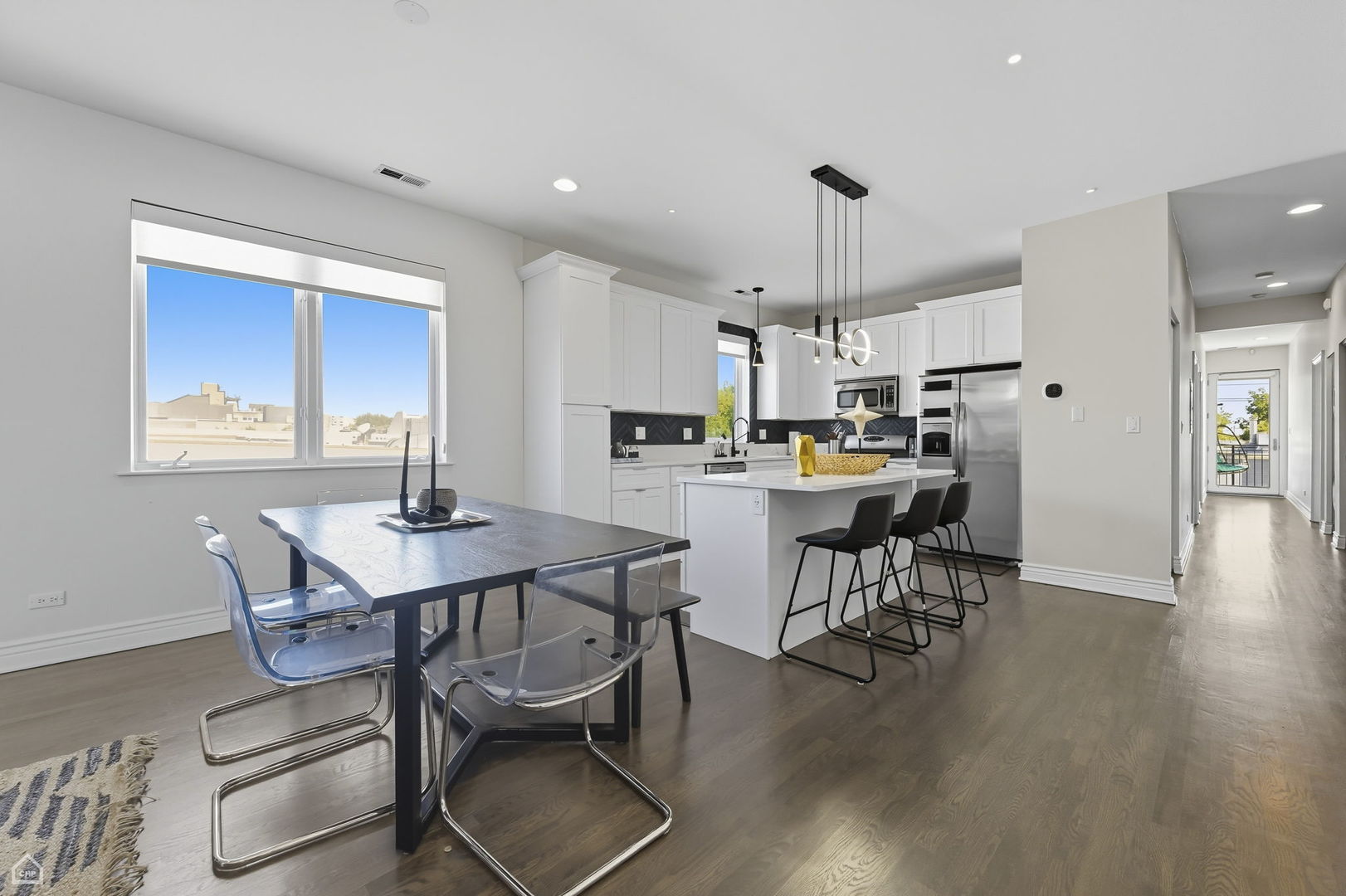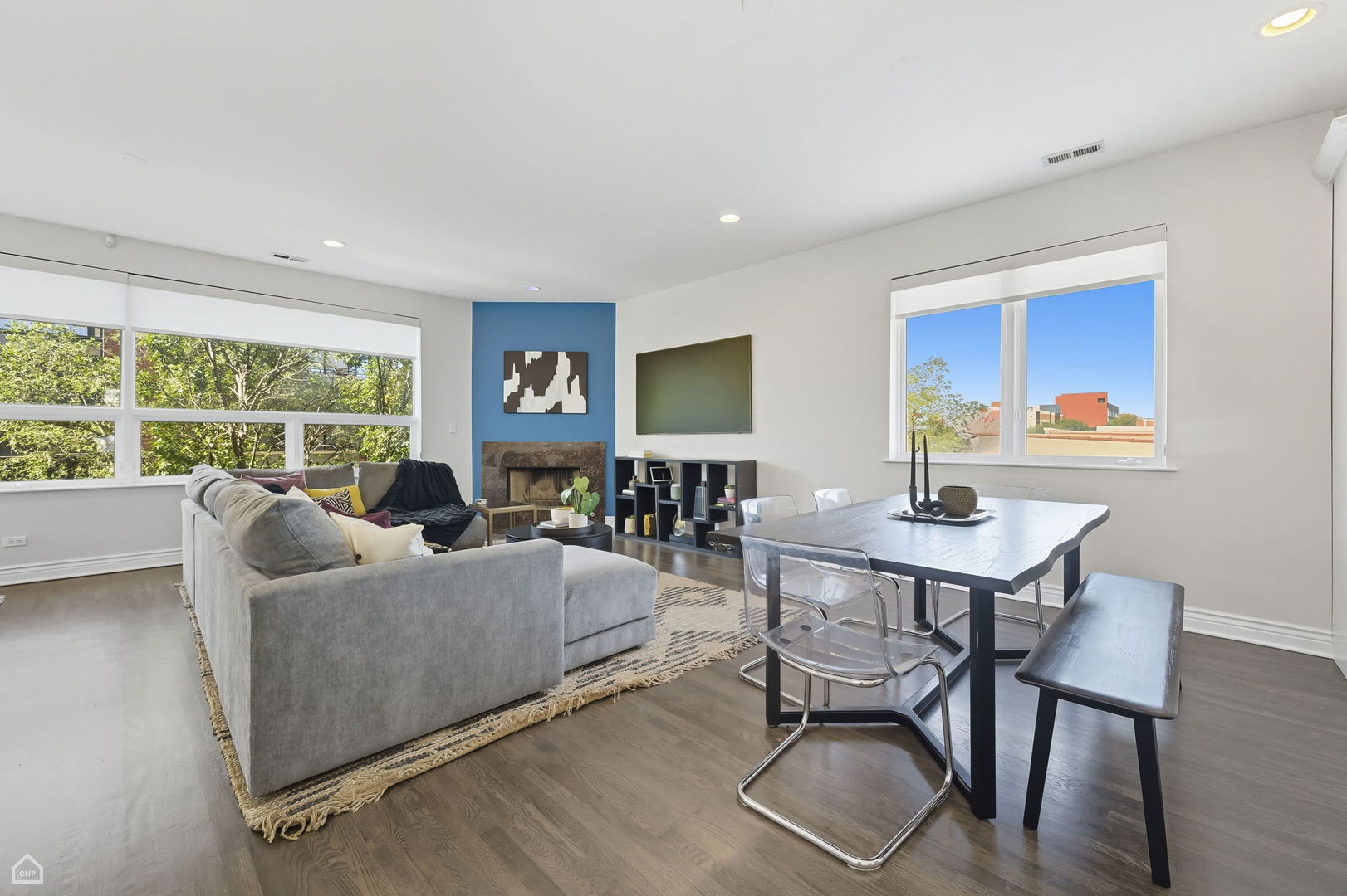 This beautifully updated, light-filled home in an intimate elevator building truly has it all! The open-concept living, dining, and kitchen area is perfect for both everyday comfort and entertaining, highlighted by refinished hardwood floors, a gas-start wood-burning fireplace, and oversized windows that flood the space with natural light. The newly renovated kitchen is a showpiece with pristine Calacatta Andria quartz countertops, white soft-close cabinetry with abundant storage, and a shimmering Dominica herringbone glass mosaic backsplash. The spacious primary suite offers direct access to a private deck, a walk-in closet with a custom adjustable shelving system, and a spa-like bath with dual vanities, a walk-in shower, and a separate jacuzzi tub. Two additional bedrooms provide versatility, with fresh paint, trim, and doors for a crisp, move-in-ready feel. Outdoor living is effortless with a southeast-facing deck and built-in gas line for year-round grilling-perfect for morning coffee or entertaining. There’s also potential to create your own private rooftop oasis above. Additional updates throughout include new electrical outlets and bidet attachments in the bathrooms, adding thoughtful convenience at every turn. Rounding out this exceptional home are a full-size washer and dryer, limited shared walls for privacy, and the option to have a rare luxury of two side-by-side garage parking spaces. Stylish, functional, and move-in ready, this residence is a rare find that checks every box. Walker and Biker’s dream! Just steps from the 606 trail with direct access to Park 567, this location offers everything you can possibly imagine! Transportation is effortless with the Western Blue Line 1 block away, Damen Blue Line just 3 blocks, and the Milwaukee bus outside your door. Coffee shops (Ipsento next door), grocery stores, gyms, yoga studios, dining, shopping, nightlife and daycare are all within blocks. Perfectly situated between Wicker Park and Logan Square, you’ll enjoy the best of both neighborhoods! Come see for yourself!