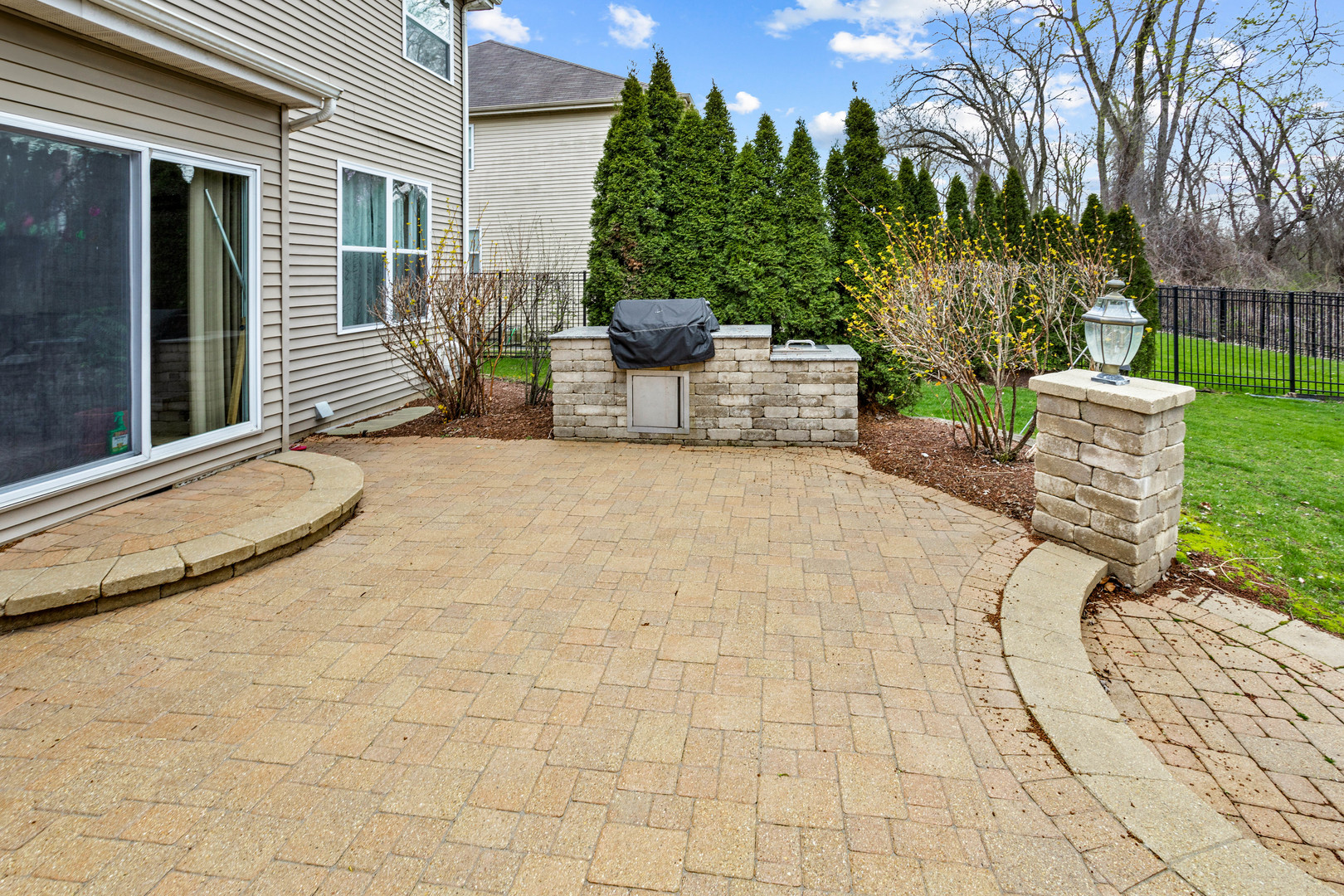 This beautiful maintained home offering 4 bedroom, 3.5 bath with a 3-car garage home in Herons Landing Subdivision. This Devonshire Model featuring 2 story foyer with abundant natural lighting that opens to the living and dining room combination. Elegant crown molding is featured. Dual stair cases, a custom one of a kind for this model offers a 2nd floor laundry room. The open concept gourmet kitchen boasts plenty of cabinet space, New dishwasher (2025), Corian countertops, center island and flows into the expanded family room with a floor to ceiling stone gas fireplace. The main level also has a nice bonus room that can be used as a home office. Master Suite offers 2 walk-in closets. The fully finished basement is an entertainer’s dream offering newer luxury vinyl planking floors throughout, a walk-up bar area with refrigerator for keg and beer tap “As-Is” an entertainment area, work-out area or a play area for the kids and a newer full bathroom with huge walk-in shower w/dual shower heads and plenty of storage areas. Recently painted throughout. Reverse Osmosis System, Nest Thermostat and Ecobee 4 Thermostat to stay, 2 newly installed Hot Water Heaters. As you step outdoors, you’ll find a private, iron fenced backyard & paver walkway to the huge paver patio with built-in outdoor kitchen w/natural gas BBQ grill, granite countertop with cooler. Retractable awning is built-in too making the best day even better while enjoying your private views of Herons Woods State Habitat which is your rear facing view out every window. You need to see this home & the lot it’s on. Located near shopping, restaurants, park with water pad for the kids, the Metra Station, easy access to major highways. You must see it to appreciate this beauty!!!