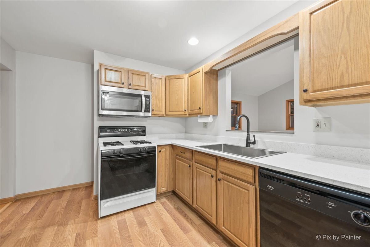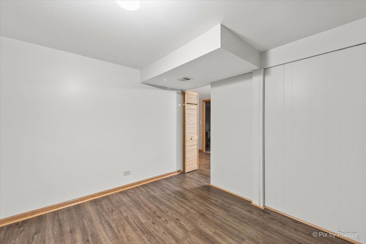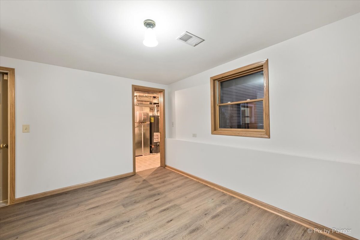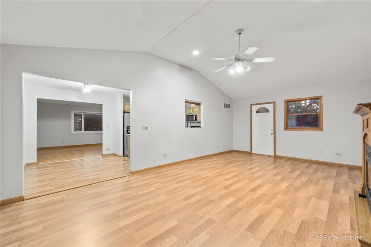 Welcome to this attractive and move-in-ready 4 bedroom, 1.1 bath raised ranch featuring a generous addition. The massive family room boasts vaulted ceilings and a cozy fireplace with new flooring that flows seamlessly into the dining area and kitchen complete with quartz countertops and pantry. From the family room, step out to two outdoor living spaces, a deck and patio, both overlooking a beautifully landscaped and private fully fenced yard. The main level offers a bright and spacious living room with stunning hardwood floors that extend through all three bedrooms, along with an updated full bath featuring a walk-in shower. The fully finished lower level provides exceptional versatility with a large recreation room, a 4th bedroom, a bonus room, a convenient powder room, laundry/utility area, and mudroom offering extensive additional living space and storage. Attached 2 car garage with epoxied floors and an extra storage nook. Freshly painted throughout with new light fixtures. Situated in a prime location near schools, parks, shopping/dining, the Metra, and I-90 for an easy commute.