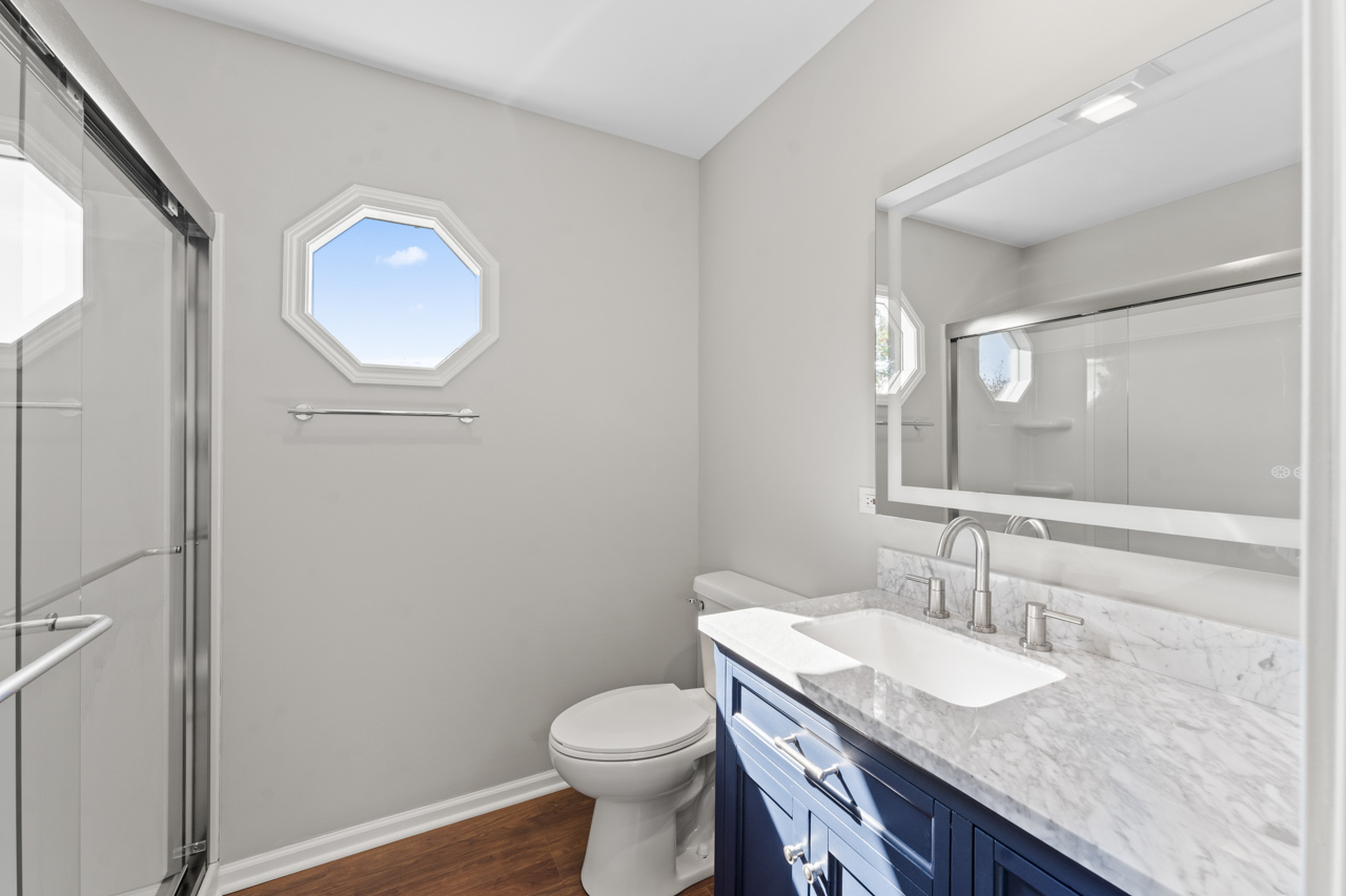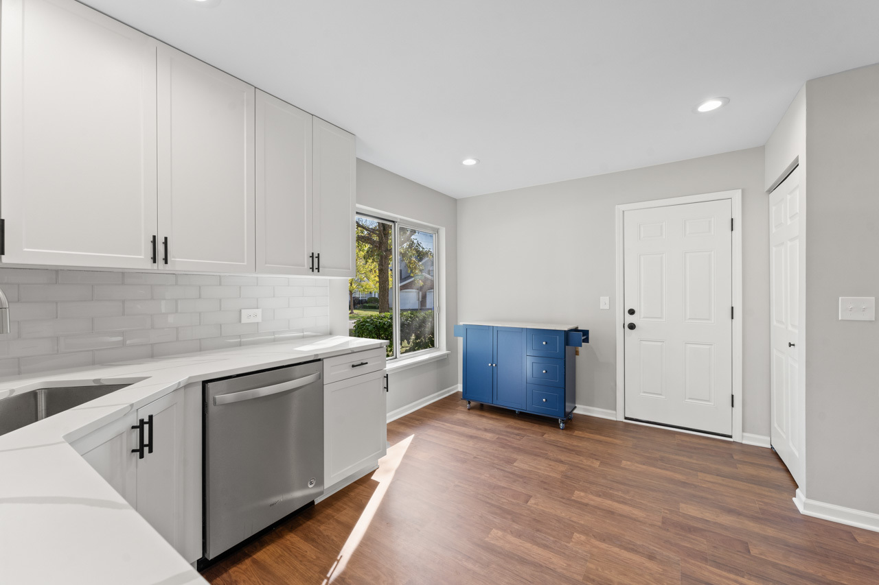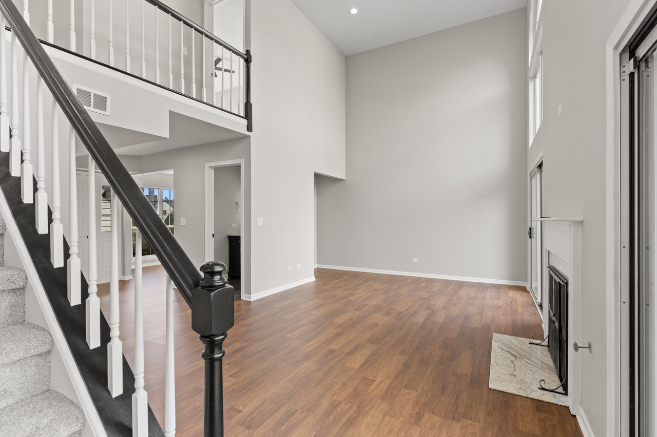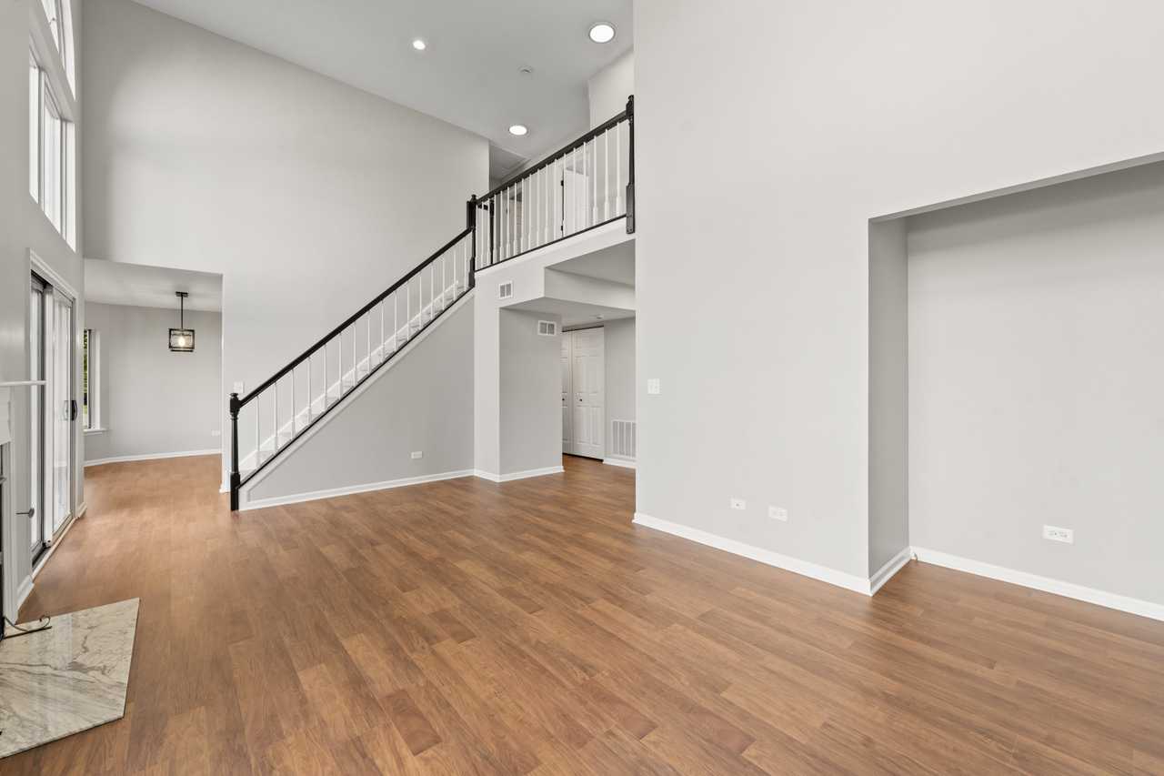 Beautifully Reimagined End Unit Townhome with Rare 2-Car Garage! Step into this fully gut-rehabbed end-unit townhome that blends modern design, functionality, and everyday comfort. From the moment you enter, you’ll notice the brand-new luxury vinyl plank flooring flowing throughout the main level and the light-filled layout that makes every space feel inviting. The all-new eat-in kitchen features crisp white 36″ shaker cabinets, gleaming quartz countertops, stainless steel appliances, and a movable island-perfect for meal prep or casual dining. A dining area off the kitchen offers a seamless flow for entertaining, while the convenient main-floor laundry adds practicality to everyday living. At the heart of the home, the dramatic two-story great room showcases a gas-start fireplace flanked by dual sliding doors that open to the east-facing deck-perfect for morning coffee and relaxing in the gentle afternoon shade. A versatile front room with a modern barn-style door and closet provides the perfect space for a home office or den. Upstairs, fresh carpeting leads to two generously sized bedrooms with ample closet space and a fully rehabbed hall bath. The primary suite is a relaxing retreat, complete with a brand-new private bath featuring a walk-in shower. With a rare attached two-car garage, all-new finishes, and timeless modern updates, this move-in-ready home offers easy living with style and comfort. Enjoy a prime location-just 5 minutes to Rt. 94 and close to great shopping, dining, and everyday conveniences