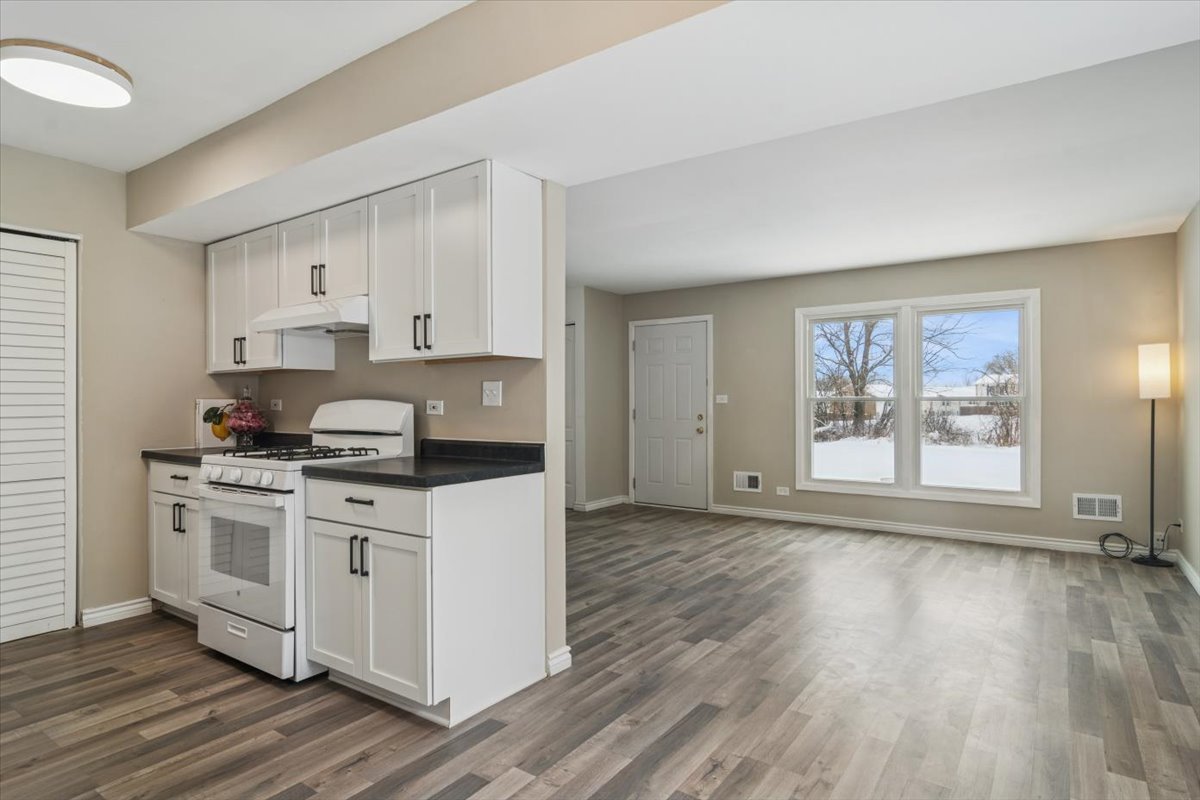 Completely refreshed and move-in ready, this 2-bedroom, 1-bath townhouse is nestled on a desirable, private lot within a sought-after complex. The spacious open floor plan has been freshly painted throughout. In the kitchen, brand new cabinets, countertops and sink. Brand new carpet upstairs. Updates also include newer windows and HVAC for added comfort and efficiency. Second floor features a generously sized primary bedroom with a walk-in closet, pull down attic space, a good sized second bedroom, and the shared full bath has also been recently updated. You’ll enjoy the convenience of in-unit laundry, and 2 assigned parking spaces. Located just minutes from Schaumburg, Woodfield Mall, and major highways, this home offers easy access to everything the area has to offer. A true must-see!