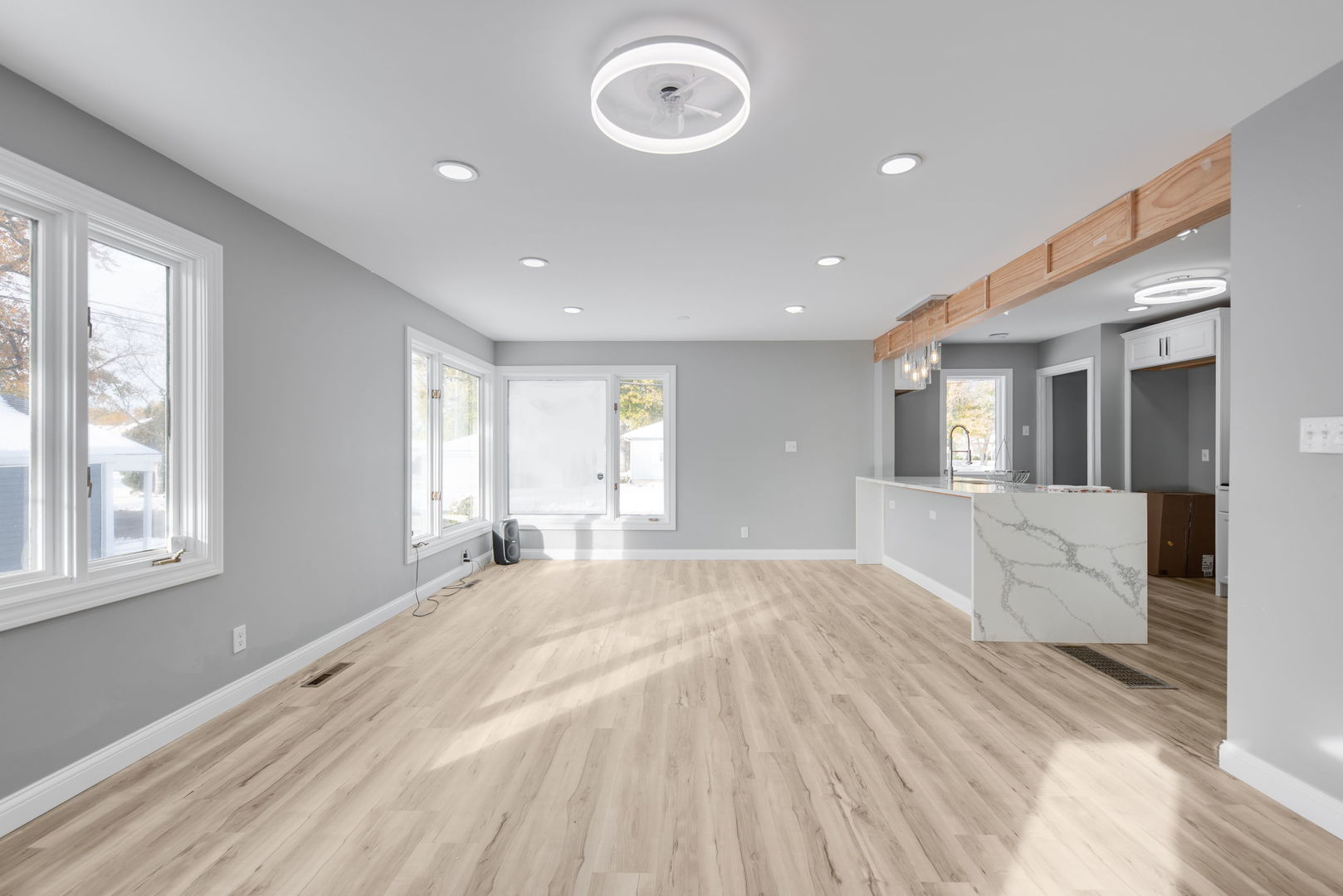 Welcome home to this spacious 4-bedroom, 1.5-bath Cape Cod situated on a generous corner lot in desirable Schultz Park. This home has been thoughtfully remodeled throughout, offering modern comfort and style. Step inside to discover gorgeous hardwood flooring and recessed lighting throughout the main level, along with beautifully updated kitchen and baths. The standout feature of this home is the expansive family room/dining room addition, highlighted by a stunning stone wood-burning fireplace-perfect for cozy nights or entertaining guests. Enjoy outdoor living with a two-car garage and a large covered backyard patio, ideal for relaxing or hosting summer gatherings. The full, partially finished basement provides even more living space, complete with glass block windows and abundant storage. This is a home you don’t want to miss-see it TODAY!
