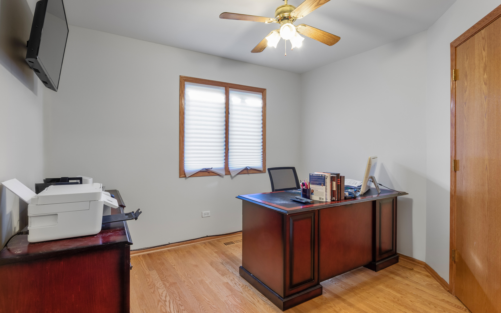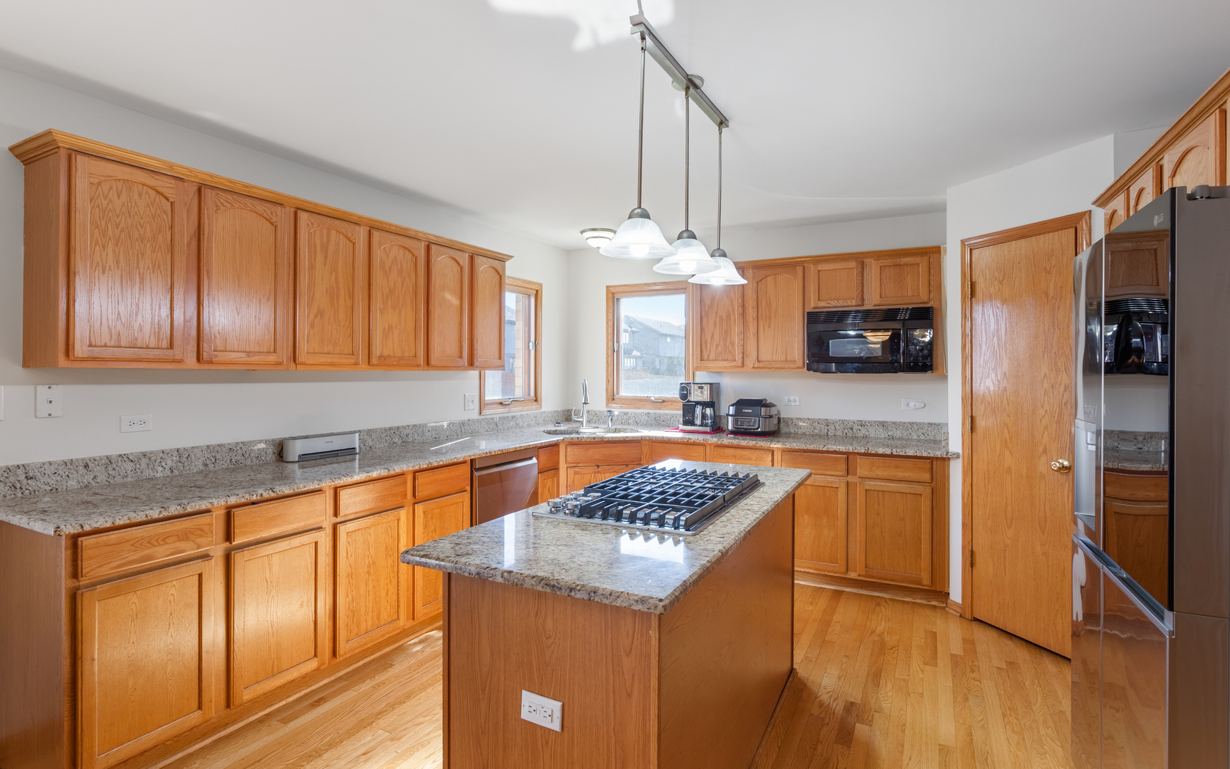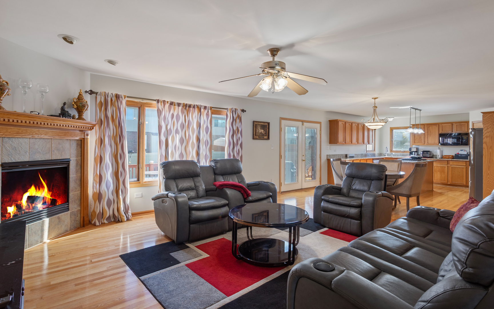 This stunning 2-story home features expansive windows that flood the interior with natural light, highlighting the elegant hardwood floors and inviting fireplace. The open concept main level includes a convenient laundry area, a spacious office / bedroom, and beautifully appointed bath, large family room with fireplace all enhanced by smart appliances, garage doors, and a state-of-the-art alarm system with cameras. Second floor four generous bedrooms, two full baths, there’s plenty of space for family and guests, 3 car heated garage The full, unfinished basement offers abundant storage, is pre-plumbed for an additional bath, and is equipped with a new sump pump and ejection pump for peace of mind. Enjoy the beautifully landscaped rear yard, which boasts a large composite deck, a 20 x 20 concrete patio, a practical storage shed, and an underground sprinkler system servicing both the front and rear yards. All appliances are stainless steel, ensuring both functionality and modern style throughout this award-winning home on Walnut. ROOF REPLACED 2019, whole house vacuum system, too many amenities, IL licensed broker owner.