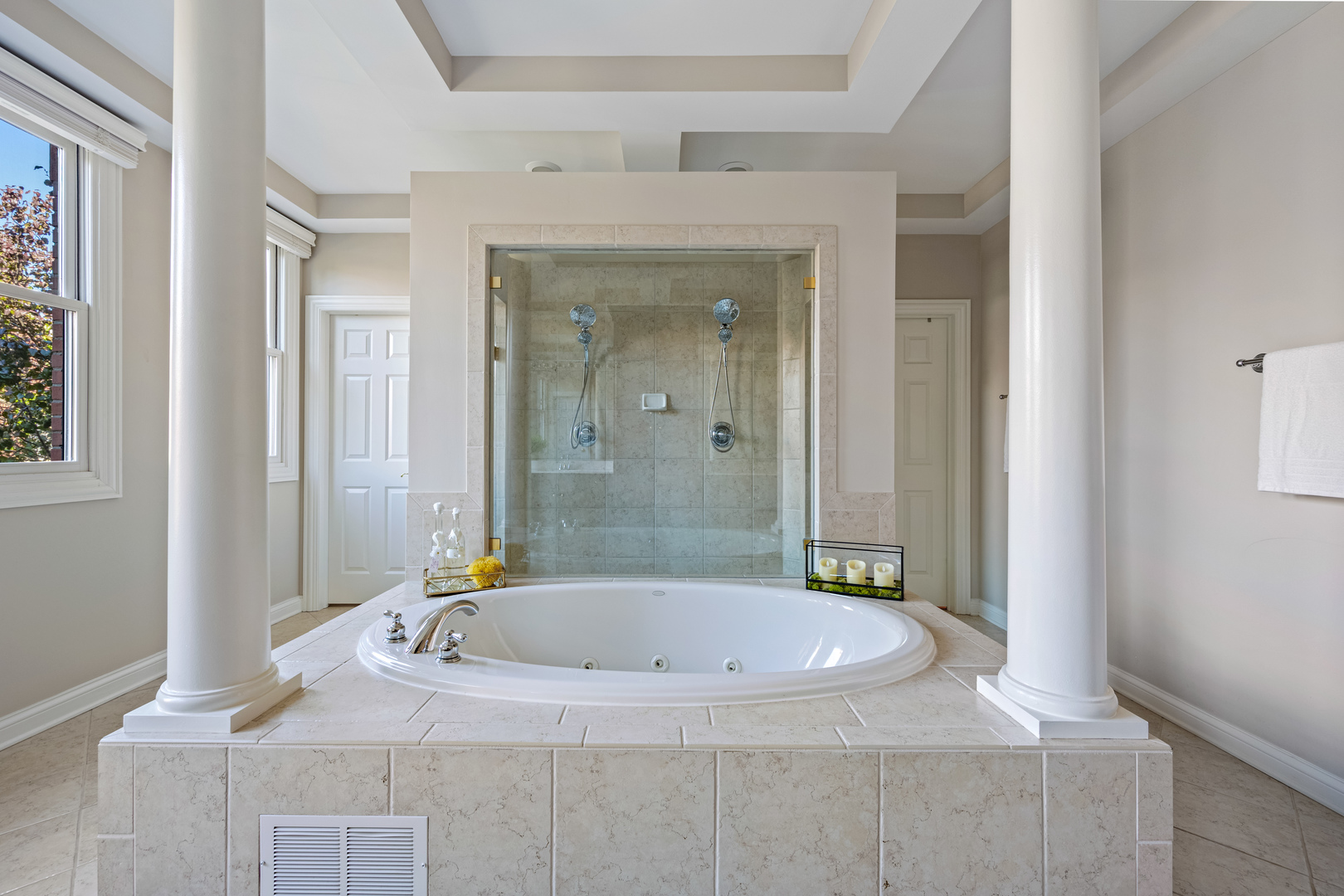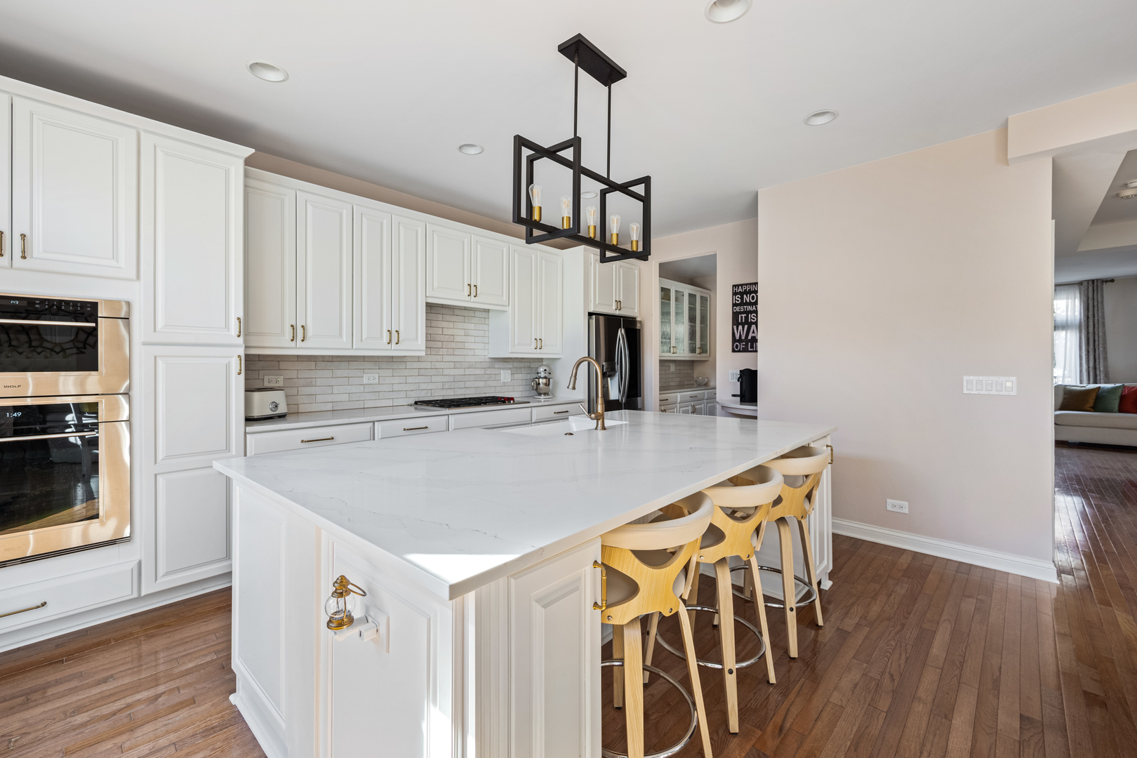 This exquisitely renovated Tower Crossing townhome in the heart of The Glen has been transformed with elegant updates and designer finishes throughout 3,840 square feet of refined living space. The largest Blackstone model in the premiere courtyard location offers four levels of luxury, with stunning all-white gourmet Kitchen renovated in 2020 with custom cabinetry, beadboard island, Wolf 5-burner cooktop, Bosch dishwasher, LG refrigerator and white gourmet Butler’s Pantry ideal for entertaining. The serene Primary Suite showcases a spa-quality bath with double step-in shower with dual sprays and new glass enclosure, along with custom walk-in closets. Beautiful hardwood floors, custom plantation shutters and stylish fireplace enhance the elegant main living areas, while the outdoor patio and private balcony overlook a beautifully landscaped courtyard. Additional highlights include epoxy garage floor, gas line for outdoor grilling, Nest door-ring, dual-zoned HVAC and new water heater (2023). Perfectly positioned just steps from Glen Town Center shops, dining, Metra, tennis, golf, pickleball and rec center in Glenview’s award-winning school district, this residence embodies an amazing lifestyle and sophisticated living at its best.