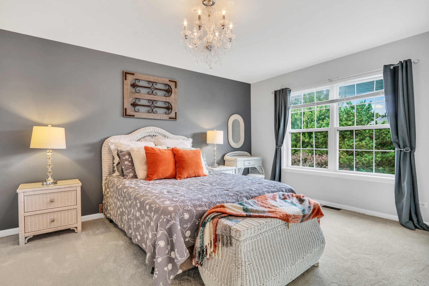 So much to LOVE in this BIG, GORGEOUS home! The stunning curb appeal and huge cover front porch will captivate you and the 3000+ sq feet of living space will say~ Welcome home! Fresh paint, NEW carpet, and fabulous finishes throughout. Formal Living room with French doors greet you from the two story foyer! Expansive dining room leads you to your ideal kitchen! White cabinets, granite surfaces, center island, ss appliances, wide pantry, FRESHLY refinished hardwood, designer lighting/fixtures all open to the walk-out bay breakfast room & sun-drenched family room! Spacious family room with fireplace for cozy fall nights! Custom built ins! If you dream of having huge bedroom sizes, this is it!! Vaulted ceiling in primary bedroom with private UPDATED bathroom featuring dual vanities and NEW custom walk-in shower. Don’t forget about the fabulous walk in closet! Additional guest bedrooms with generous sizes! Finished lower level with recreation room, office area & flex space! Wet bar for Sunday Night Football gatherings! The beauty doesn’t stop inside! Lush professionally landscaped backyard with 19 x 16 patio! Simply Perfection! Minutes from the Warren Township Park ~ dining, shopping, entertainment! Fabulous every way you can imagine! Excellent ages: Roof 2020, A/C 2024, h2o 2025, furnace 2018, concrete walk and porch 2021, FRESH paint, NEW refinished hardwood