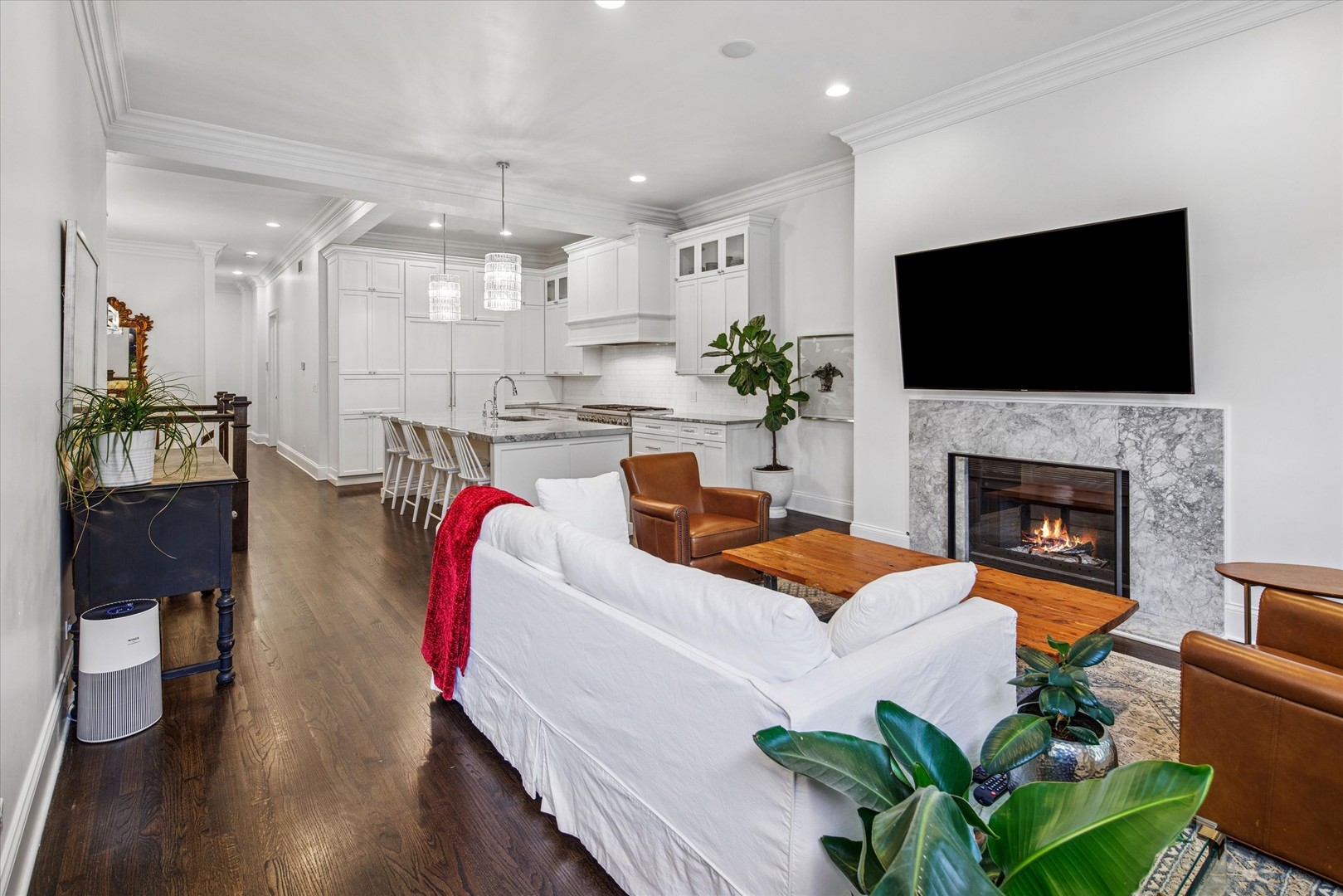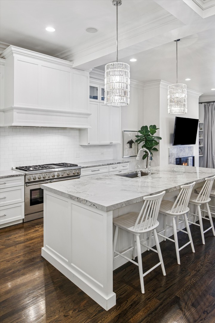 In the heart of Lincoln Park, this residence transports you from the city’s pulse to a space of balance and clarity. Soaring 11′ ceilings and an oversized kitchen with a grand island create an instant sense of presence. It’s the kind of home that feels composed – refined, confident, effortlessly livable. A private entrance sets the tone – this is more than a condo; it’s a home with presence. Spanning two levels, this four-bedroom residence contains two living areas and a full dining room, offering the comfort and flow -and space- of a single-family home. The stand-out kitchen includes thoughtful layout, paneled Bosch and Thermador appliances and two dishwashers. The main level is for connection – cooking, gathering, conversation. Below, the family room with fireplace and home theater is where evenings unfold and memories take root. Originally built in 1910, its historic bones lend depth and texture, while thoughtful updates add timeless ease. Here, design is not just seen – it’s felt. Warmth in the materials, balance in the proportions, room to grow in every sense. Outside, Lincoln Park’s finest experiences – its bistros, wine bars, boutiques, and the park itself – feel like extensions of your own world. Here, heritage meets modern ease, a home that feels private in the heart of it all. Experience city living redefined – grounded, elegant, and distinctly yours.