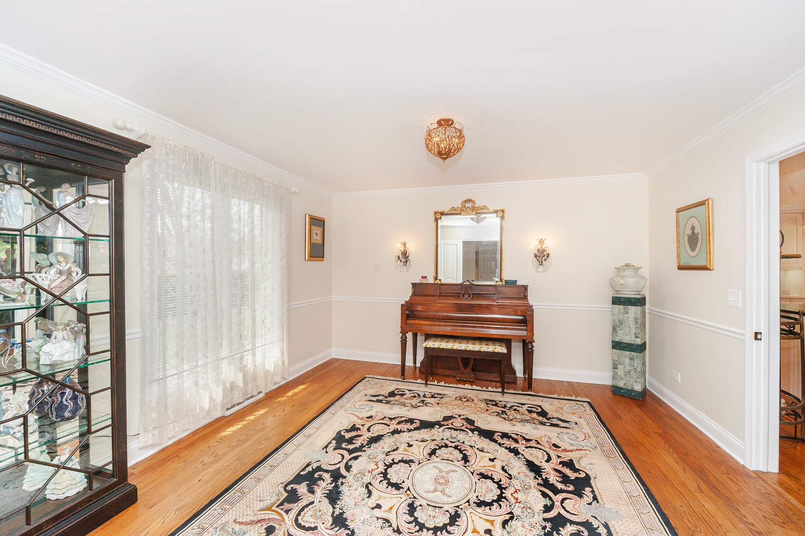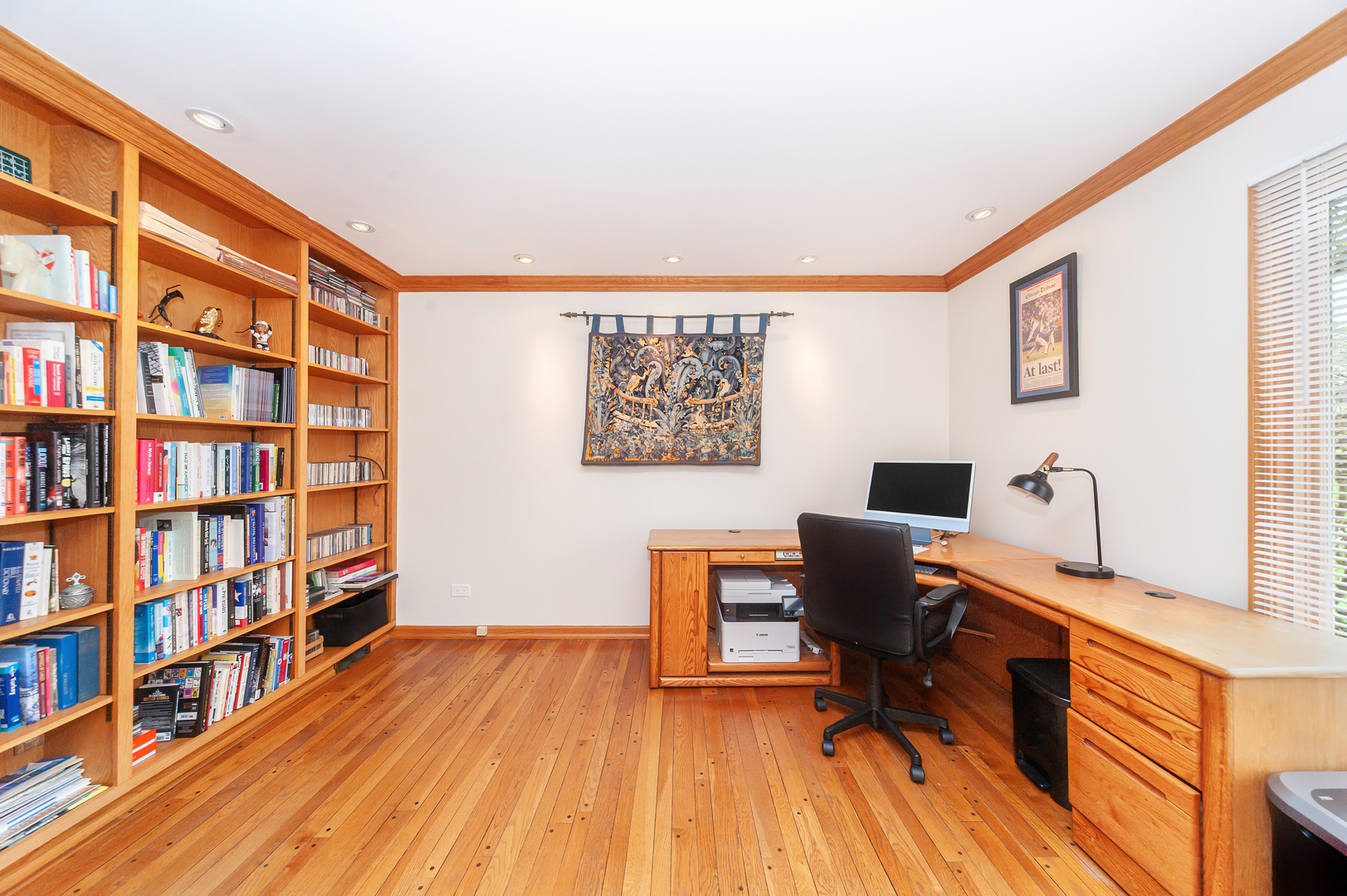 Set on a wooded 3/4-acre, this 3,600+ square foot residence marries quiet privacy with magazine-worthy style. Lake Forest is celebrated for its lakefront, parks, and architecturally rich neighborhoods, and this address enjoys that same gracious, green setting with easy access to town, train, and shoreline. The showstopper is the spectacular kitchen, anchored by a picture-window bay framing the backyard and gardens. An elegant sunken living room opens directly to the patio, extending living and entertaining outdoors. A first-floor bedroom provides a refined work/reading space and can flex as an office space as well. Upstairs, the skylit primary suite is a retreat with a separate office, sitting room, and a lovely bath. With three baths up, the second level easily supports busy routines and guest stays. Downstairs, a huge, light-filled finished basement adds a versatile rec area with a wet bar and bath, new flooring, and abundant storage, think media, fitness, hobby, or play. Come see the light, the volume, and the setting in person, homes with this combination of land, layout, and livability don’t linger in Lake Forest. Welcome home!