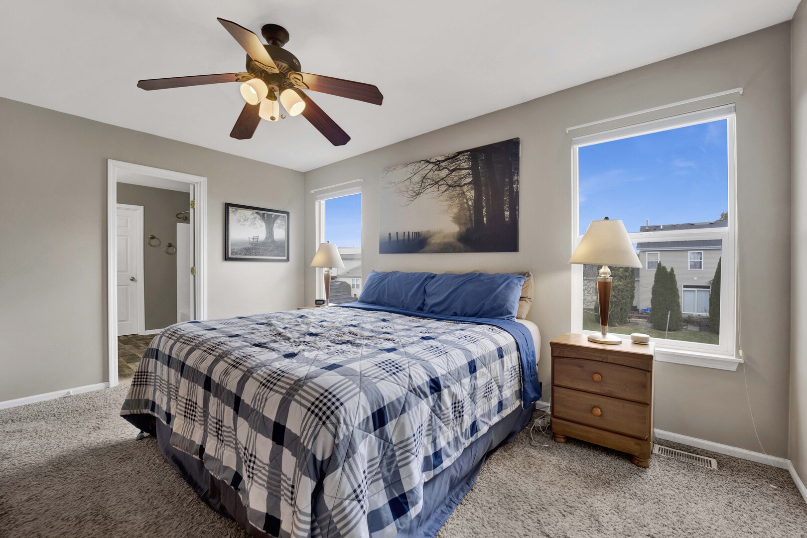 This charming 3-bedroom, 2.5-bath home sits right across from Nature’s Meadows Park and offers the perfect blend of comfort and convenience. The front porch immediately welcomes you into the home, so come on in and see all that this home has to offer. The two story entry way greets you as you walk in. The dining room is perfect for entertaining guests and families. With an abundance of cabinets the kitchen offers plenty of storage, an island and updated lighting. Your private master bedroom offers a large walk-in closet, bath with comfort height vanity, double sinks and ceramic tile flooring. You will find two other nice size bedrooms and a full bath to complete the second floor. Recent updates include a newer roof, HVAC system and HWH to give you peace of mind for years to come. Enjoy a spacious backyard-great for relaxing, playing, or entertaining-and a two-car garage for plenty of storage. With the park just steps away, you’ll love everything Nature’s Meadows has to offer right outside your front door. Located close to major shopping, entertainment, restaurants and expressways, this home has it all. Don’t miss this wonderful opportunity to make it yours!