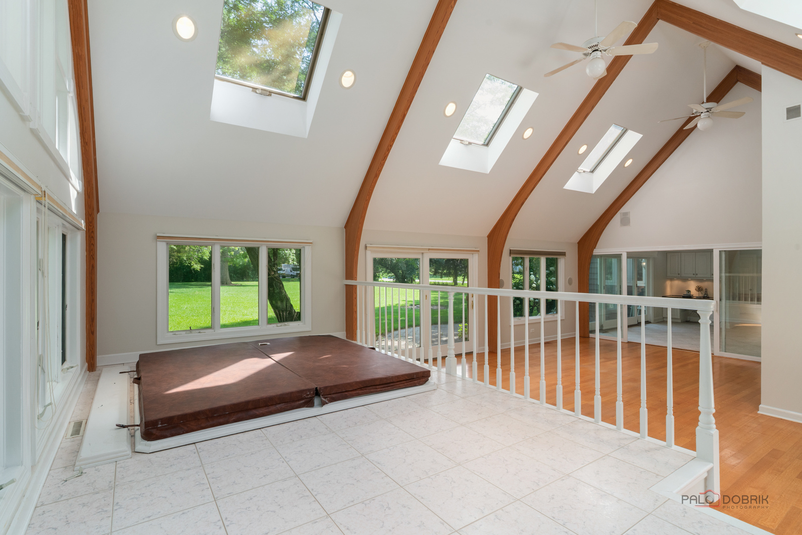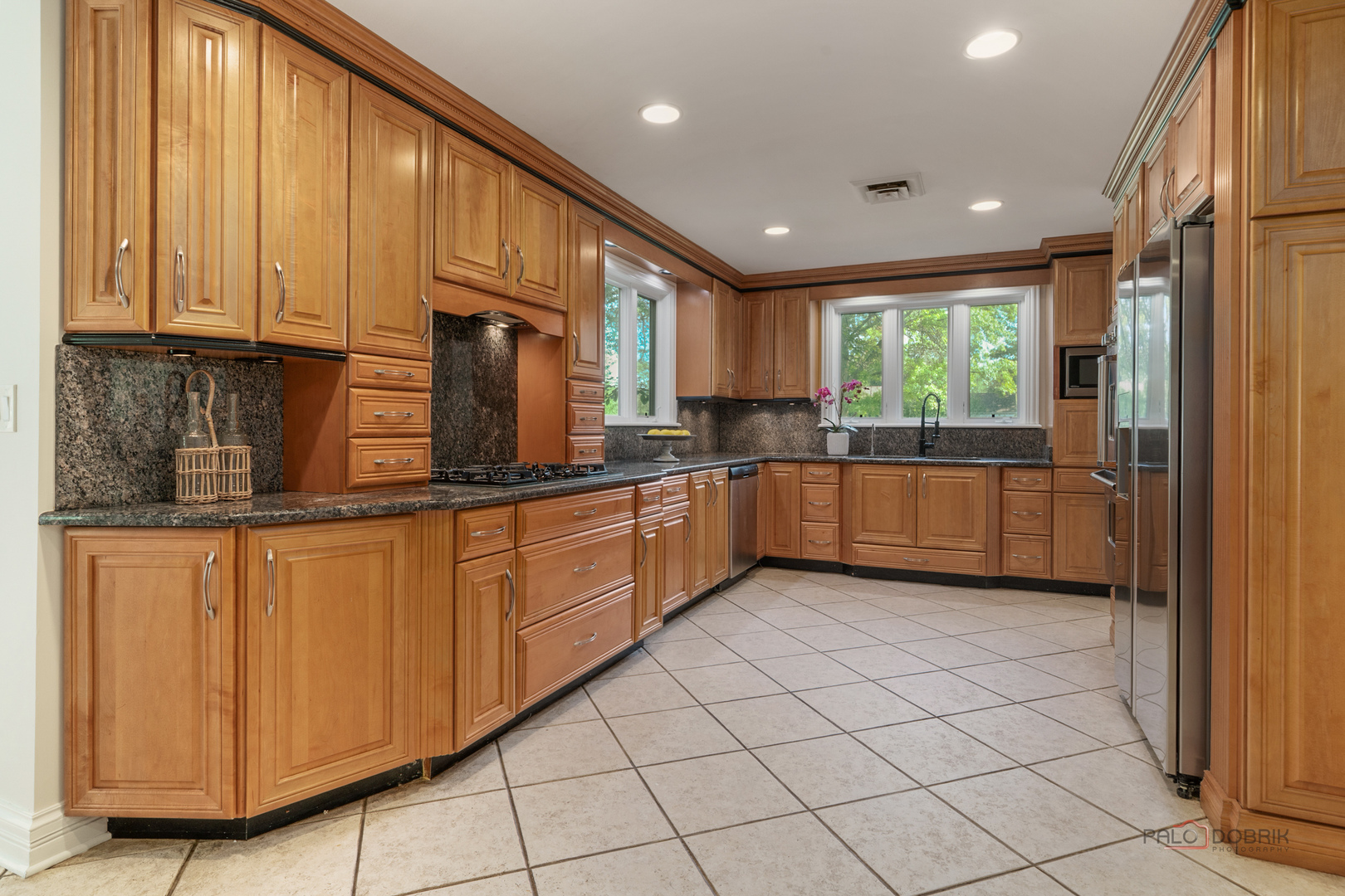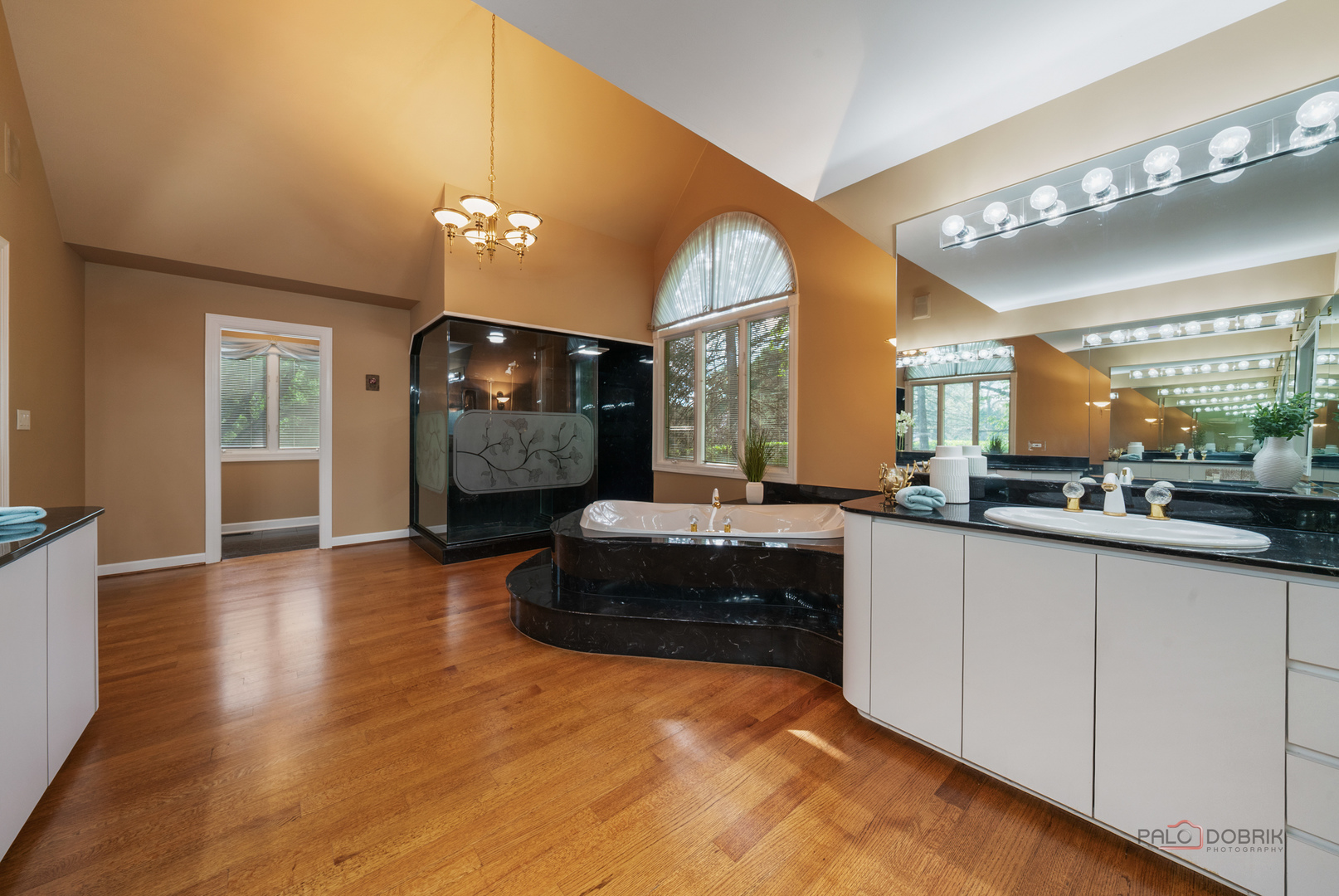 Nestled on over two acres of lush, beautifully landscaped grounds, this stunning 5-bedroom, four of which have an ensuite, 6.2 bath estate offers the perfect blend of elegance, space, and versatility. Thoughtfully updated with fresh neutral paint and stylish new light fixtures, the home boasts 3 fireplaces, a heated 4.5-car garage, and countless special features throughout. The main level showcases a grand family room with cathedral ceilings, skylights, and an indoor hot tub with a full bath, an elegant living room with fireplace, and a spacious dining room adjacent to the kitchen. The gourmet kitchen is a chef’s dream, complete with stainless steel appliances, endless cabinet and counter space, and a bright eating area with access to the outdoors. Two main floor en-suite bedrooms, each with a private bath, provide comfort and flexibility. Upstairs, the expansive master suite is a true retreat, featuring two walk-in closets, a sitting area with coffee bar, and a luxurious bath with soaking tub, double vanities, and a walk-in shower. Two additional bedrooms and two full baths complete the upper level. The finished basement offers even more living space with a cozy recreation room with fireplace, half bath, bar, and second laundry room. Additional highlights include a loft with panoramic views, vaulted ceilings, zoned heating and cooling, and two patios designed for entertaining. With multiple outdoor spaces, a sprawling yard, and a serene setting, this estate is a rare find. All this in a prime location close to shopping, restaurants, and more-come experience everything this extraordinary home has to offer!