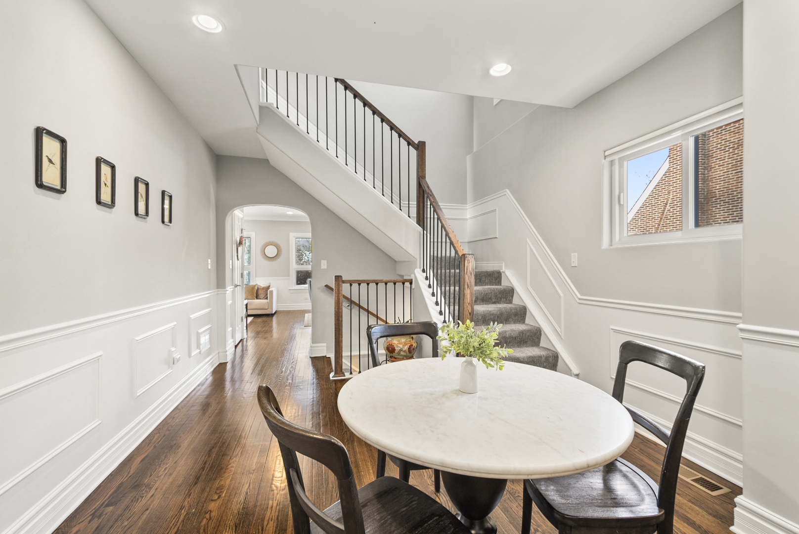 A 1926 Chicago Bungalow flawlessly reimagined in 2020, 1885 W. 108th Pl. is a stunning display of modern elegance, timeless character, and everlasting comfort. With 3,500 square feet of interior living space finished to perfection, this Morgan Park home offers 5 bedrooms, 3.1 baths, and has been completely updated top to bottom with quality finishes. The first floor showcases classic elements of the Chicago Octagon Bungalow, with the original tile foyer still in tact and original hardwood floors beautifully refinished throughout. Large front windows bring in the Western sunset, overlooking the hill-top mansions of Longwood Dr. from your living room. The open concept kitchen features custom 42″ White Shaker cabinets, a farm sink, Quartz countertops, subway tile backsplash, Samsung Stainless Steel appliances, and a wine/beverage refrigerator. Two bedrooms and a full bath are conveniently situated on the first floor, an idyllic layout for those seeking single-level living. The mudroom is the perfect drop zone for shoes, coats, and backpacks. The second floor addition is spacious and functional, featuring 3 bedrooms with walk-in closets, and 2 bathrooms including a luxurious primary suite. Enjoy additional space for play and recreation in the finished basement, including a half bath, laundry room, and potential for a 6th bedroom/office. The 10,000 square foot extra-deep lot is truly park-like… with a lush wrap-around garden blooming with peonies and hydrangea bushes, privacy fence, play-set, and a fabulous patio with a built-in pergola. In addition to the beautiful cosmetic upgrades throughout the home, additional improvements include 6″ trim and crown molding, new windows, doors and trim, 200 AMP electric, dual-zoned high efficiency furnaces and central air units, new ductwork throughout, all new plumbing and roof, exterior brick cleaned and tuckpointed. Located one block from the 107th St. Metra Station (Rock Island Line), locally acclaimed Soul Food Lounge, and Prospect Gardens.