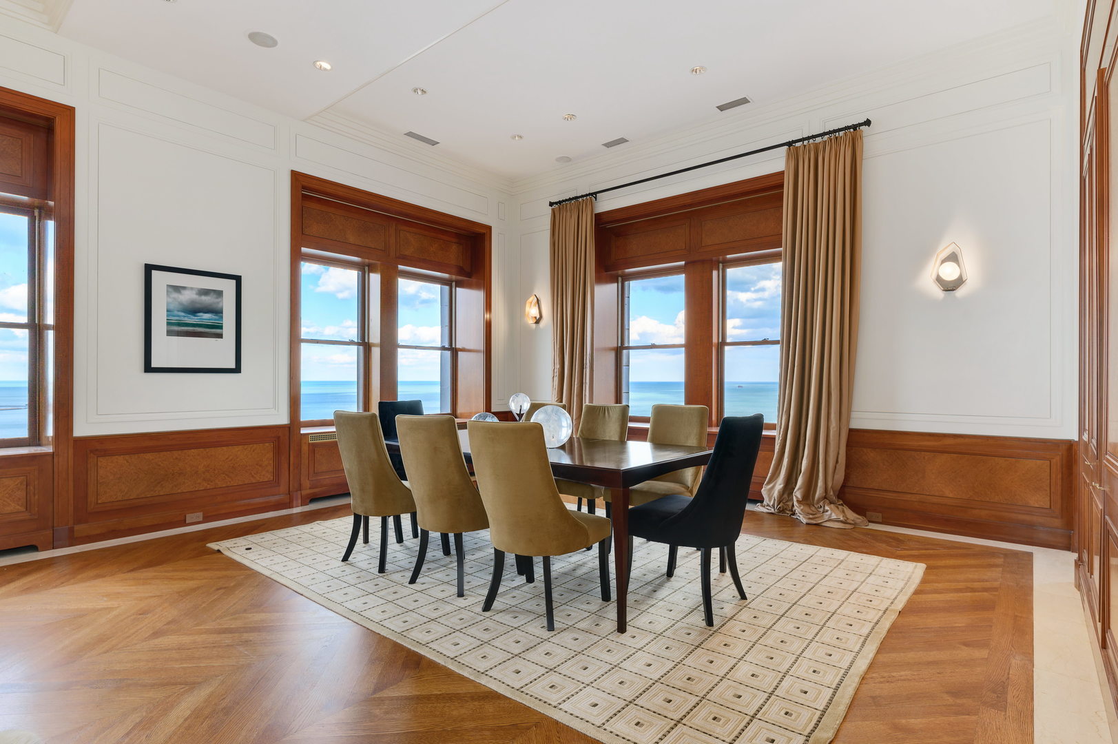 Amazing, dramatic penthouse in a classic vintage building on East Lake Shore Drive! This home has been completely renovated with over 7400 square feet of luxurious finishes and offers expansive lake & city views plus 2 terraces with 550 square feet of private outdoor space. Walk off the elevator into this full floor home featuring oversized windows and extraordinary ceiling height make this home truly one-of-a-kind. The grand living room extends the entire front of the apartment with beautiful paneling and sensational views over Lake Michigan and Lake Shore Drive. Entertaining formally or casually is done with ease by virtue of the thoughtfully appointed, all new chef’s kitchen with additional eat-in area. The grand dining room is fabulous for entertaining or used as a huge great room. The master suite offers a private office and an over-sized dressing room. There is also an additional closet space with a gracious bath and a private terrace. There are four additional bedrooms suites, which are sensibly arranged around a central family room with lovely built ins. The building offers a state-of-the-art exercise facility and has one of the more gracious lobbies the city has to offer. Three parking spaces included!