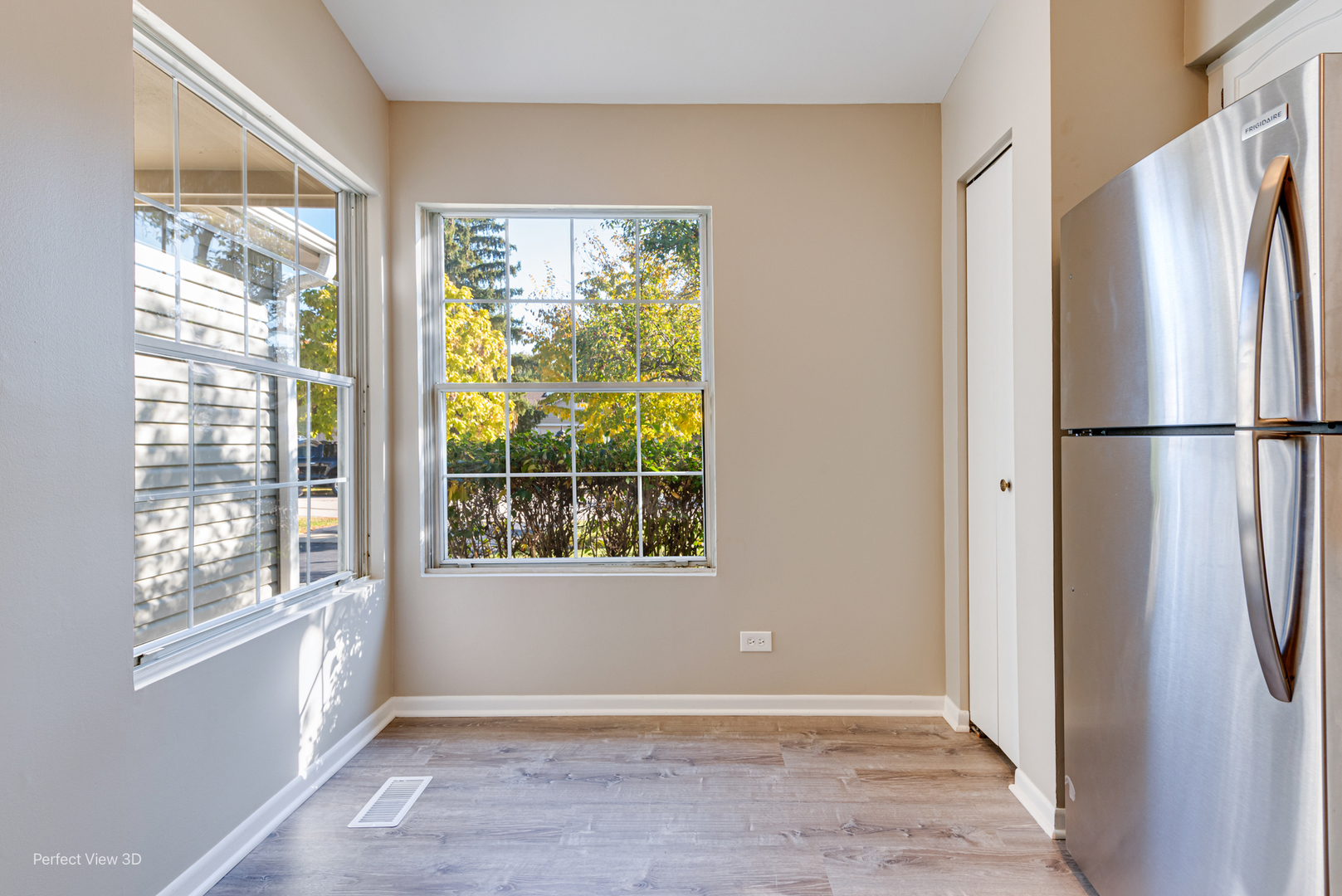 Wonderfully charming and updated two-bedroom, two-bath ranch duplex on quiet street in central Naperville. This home shows magnificently!!! Updates include new roof/skylites, new luxury vinyl plank flooring throughout, new lighting, painted kitchen cabinetry, new refrigerator, new bath fixtures/vanities and smart thermostat. Open floorplan boasts large room sizes, volume vaulted ceilings, lots of light, cozy wood-burning fireplace, eat-in kitchen, and both bedrooms have walk-in closets & full baths! Plenty of storage space plus a large, fully-drywalled and attached 2-car garage. Exterior has been well-maintained and offers a private rear yard with large wood deck. Great location within Naperville School District 203 close to schools, parks, town, shopping, entertainment, expressways, etc. All this and NO HOA FEES!!!