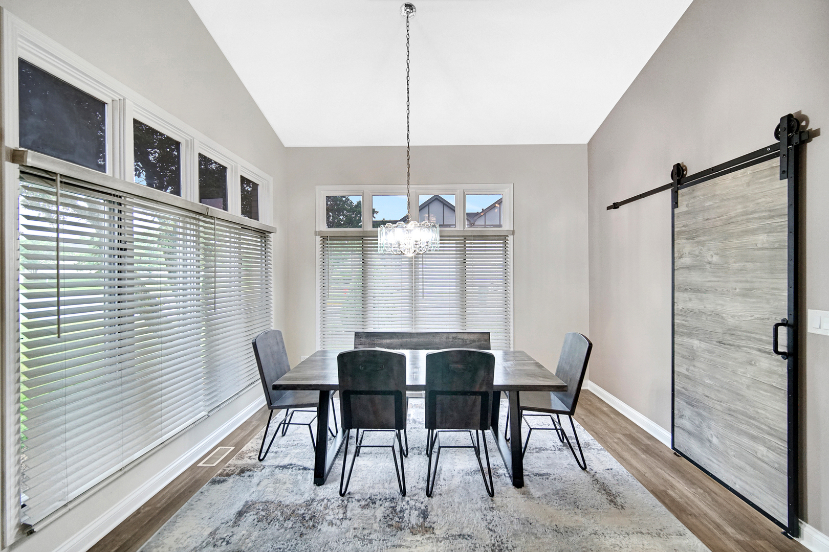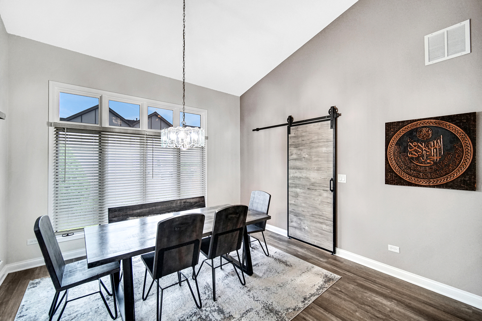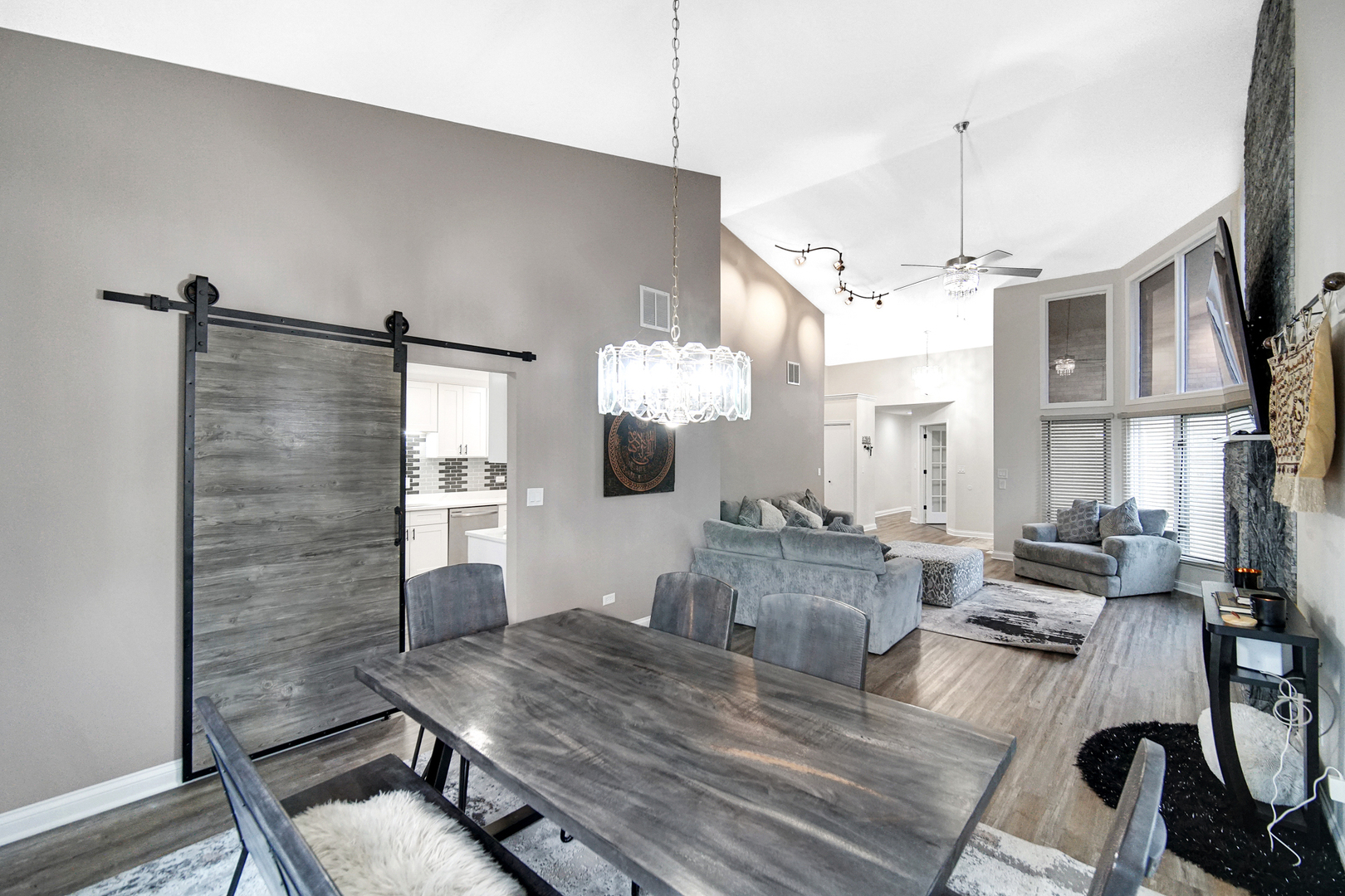 Immaculate Palos Landings ranch style townhome totally rehabbed in 2022. This end Unit beauty offers so much to list, massive cathedral ceilings with open plan foyer, spacious living room and dinning room, high ceilings plenty of sunlight with gorgeous massive windows with transoms.the following was done in 2022, laminate flooring throughout, white trim white doors, light fixtures, neutral paint, high end kitchen with 42 inch white cabinets, granite counter tops, mosiac back splash,, SS appliances, 2.1 totally updated bathrooms, breathtaking two story limestone fireplace, recessed lights, barn door, light fixtures, security system with cameras included, upper window all tinted for sun block and privacy. Huge vaulted ceiling master suite with updated master luxury bath, shower and whirl tub, walk-in closet with organizer & extra closet, 2 other bedrooms, hallway full bathroom is also updated, plenty of closets and pantry plus an update 1/2 bath for guests. large eating kitchen that leads to a private deck. good size laundry room with cabinets, attached garage nicely painted walls & epoxy floors, new high end sump pump in crawl space. great location in desirable Palos Heights, hurry this one will not last.