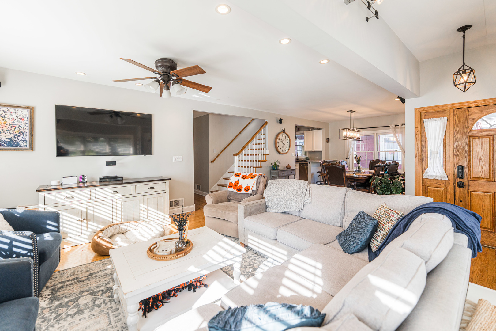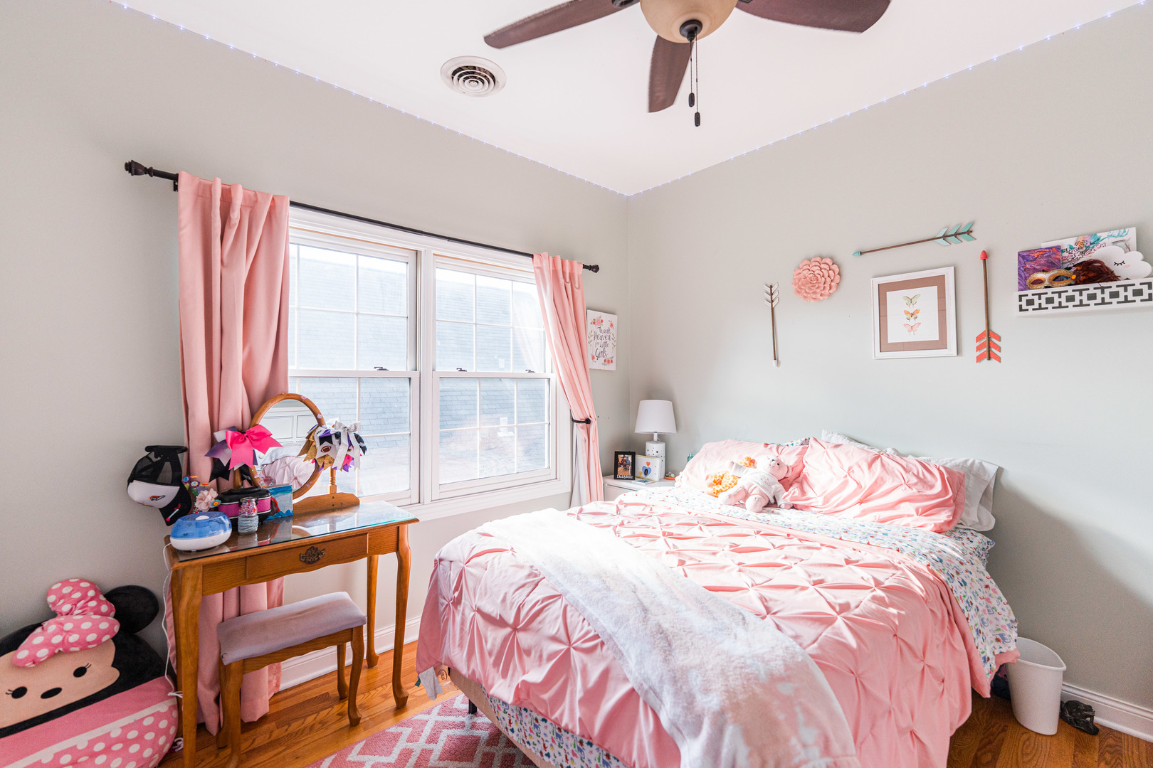 With room for the whole family, this six-bedroom two-bath home is the one you have been waiting for! From the moment you walk in natural light floods the spacious living room. Hardwood flooring continues to flow through the formal dining room that opens to large kitchen. Kitchen features white cabinets, stainless steel appliances, breakfast nook, and walk in pantry! Two first floor bedrooms that would be perfect for a playroom and office along with a full bathroom round off the main level. Moving upstairs, you will find four generous size bedrooms, all with double closets! Primary bedroom is large enough to handle that king-size bed. Second full bath with double sinks and desirable second floor laundry finish off the second floor. Full walk out basement awaits your finishing touches with rough in bathroom already in place. Moving outside you will spend many mornings on your covered front porch, sipping coffee and many evenings on your large backyard deck. Fully fenced in yard, along with a newer 2 1/2 car garage that has a pull-down ladder to loft! Just blocks to downtown Lombard, and train station! Roof, gutters, and flashing 2023. Garage 2022. HVAC 2019, All this plus so much more make your appointment today!