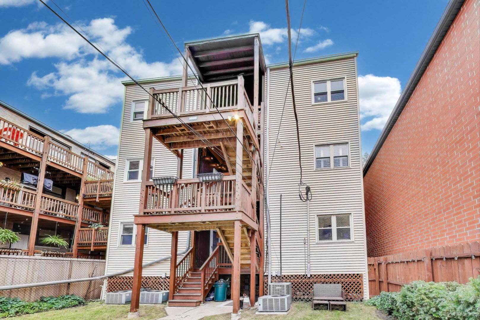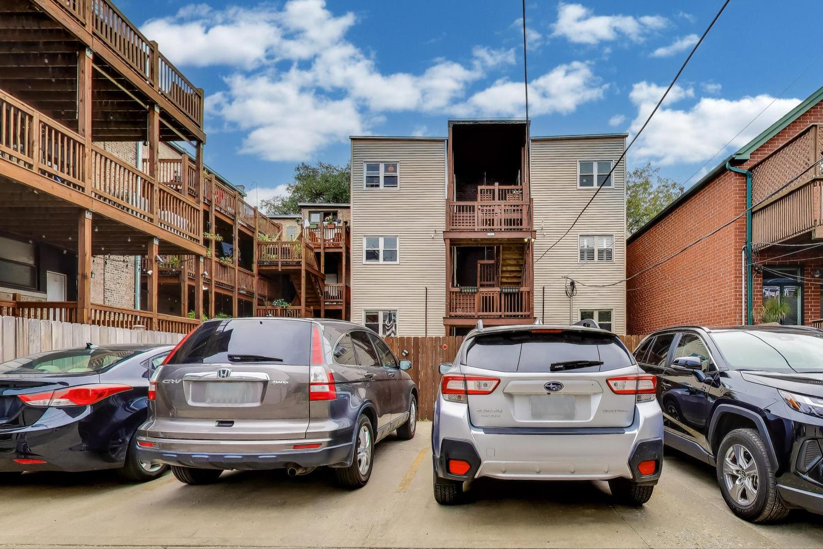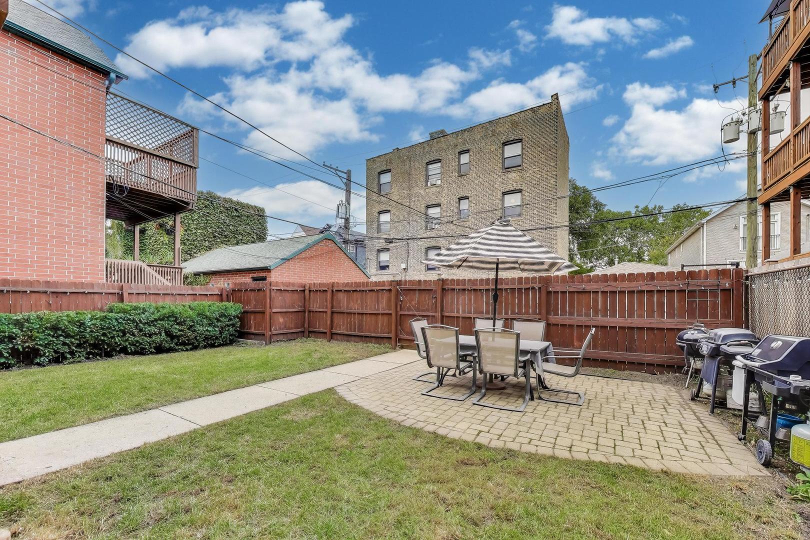 Fantastic 2-bedroom + office condo in a prime location just steps from the Brown Line & Irving Park bus. Thoughtful layout with no wasted space, featuring hardwood floors, nice natural light, & wooden shutters throughout. The kitchen offers wood cabinets, granite counters, ss appliances, & ample storage. Enjoy new gas-forced air heating & central air conditioning, in-unit washer and dryer, & plenty of closets. Includes shared backyard and exterior parking space. Conveniently located near restaurants, shopping, and neighborhood amenities. Floor plans are under additional information.