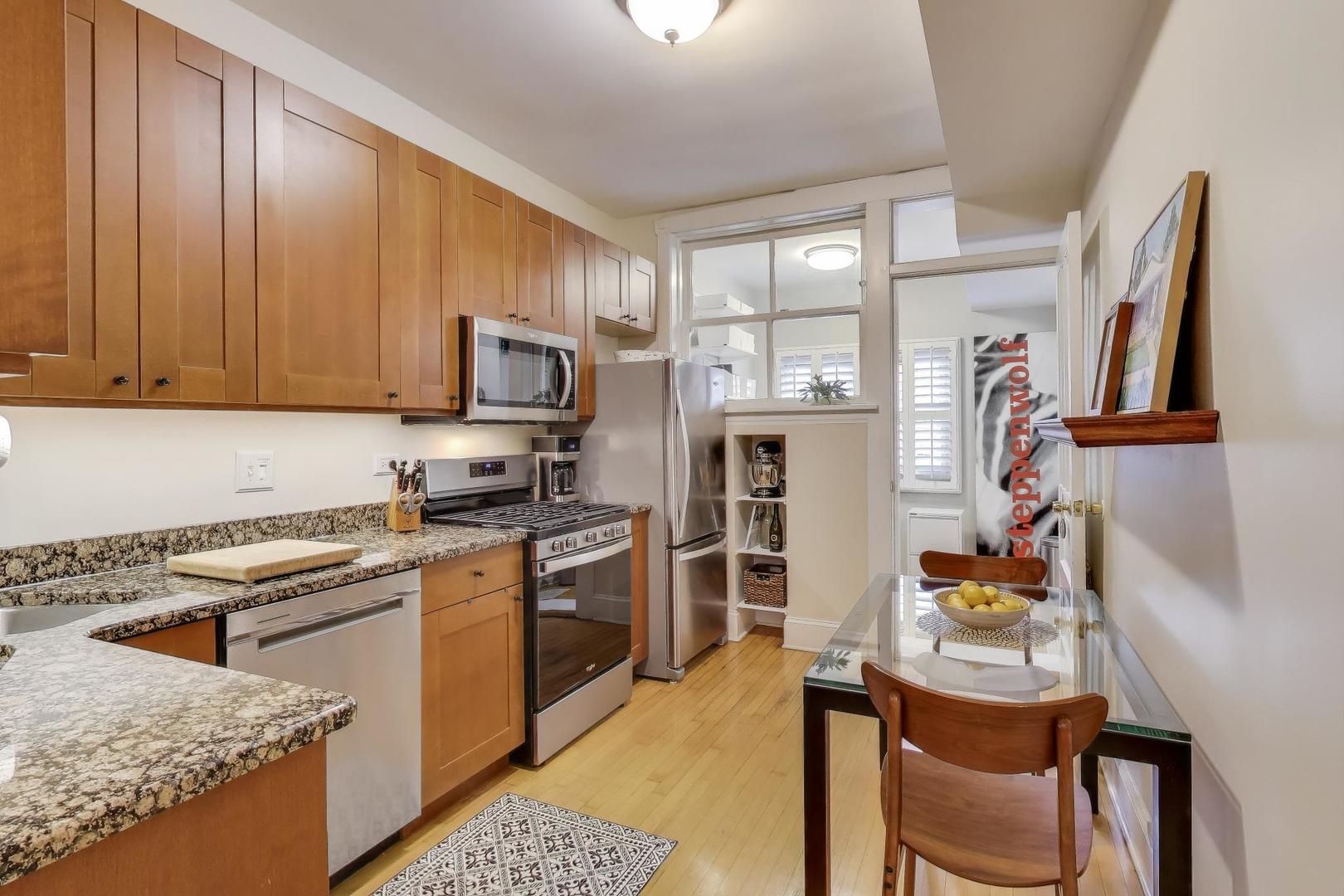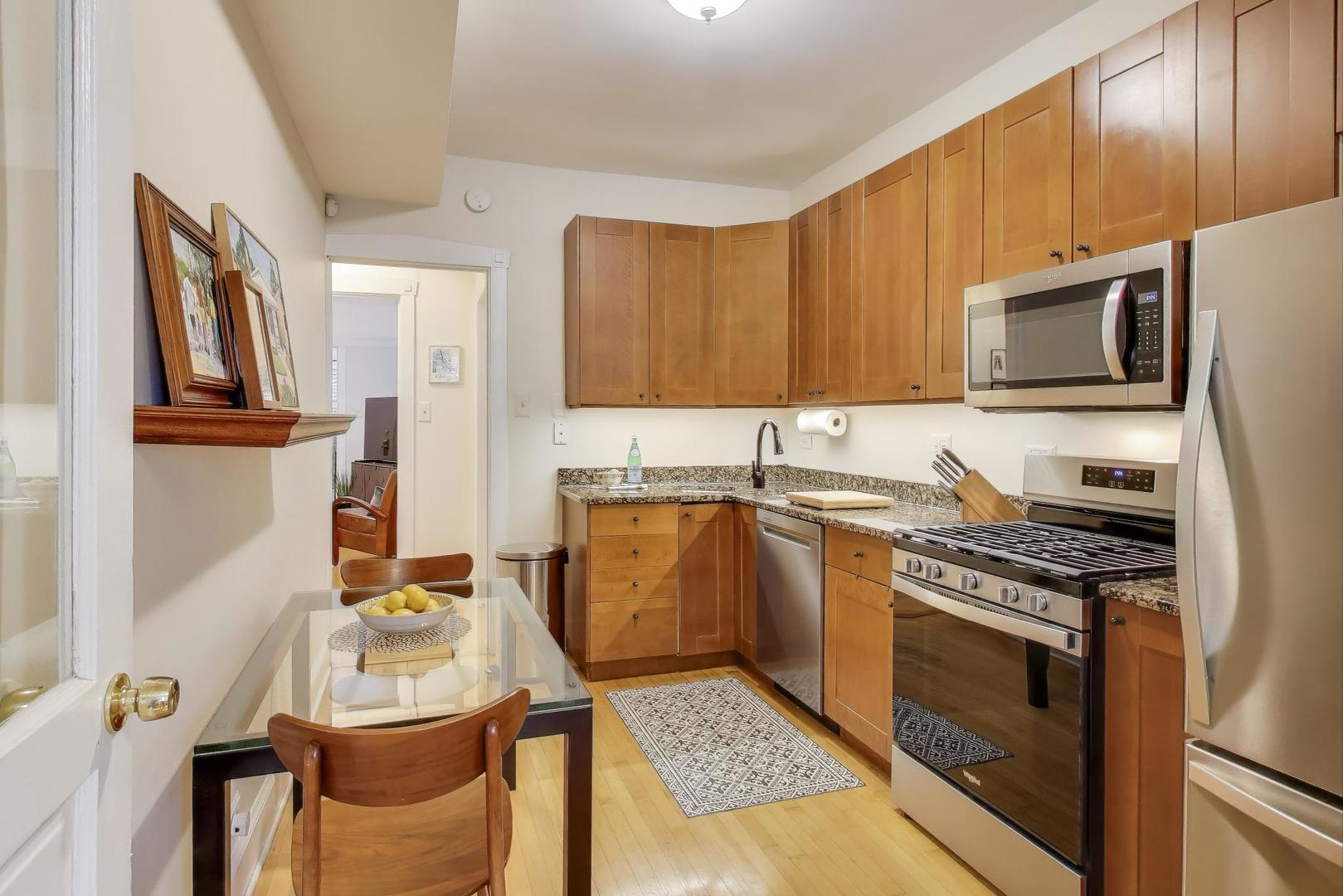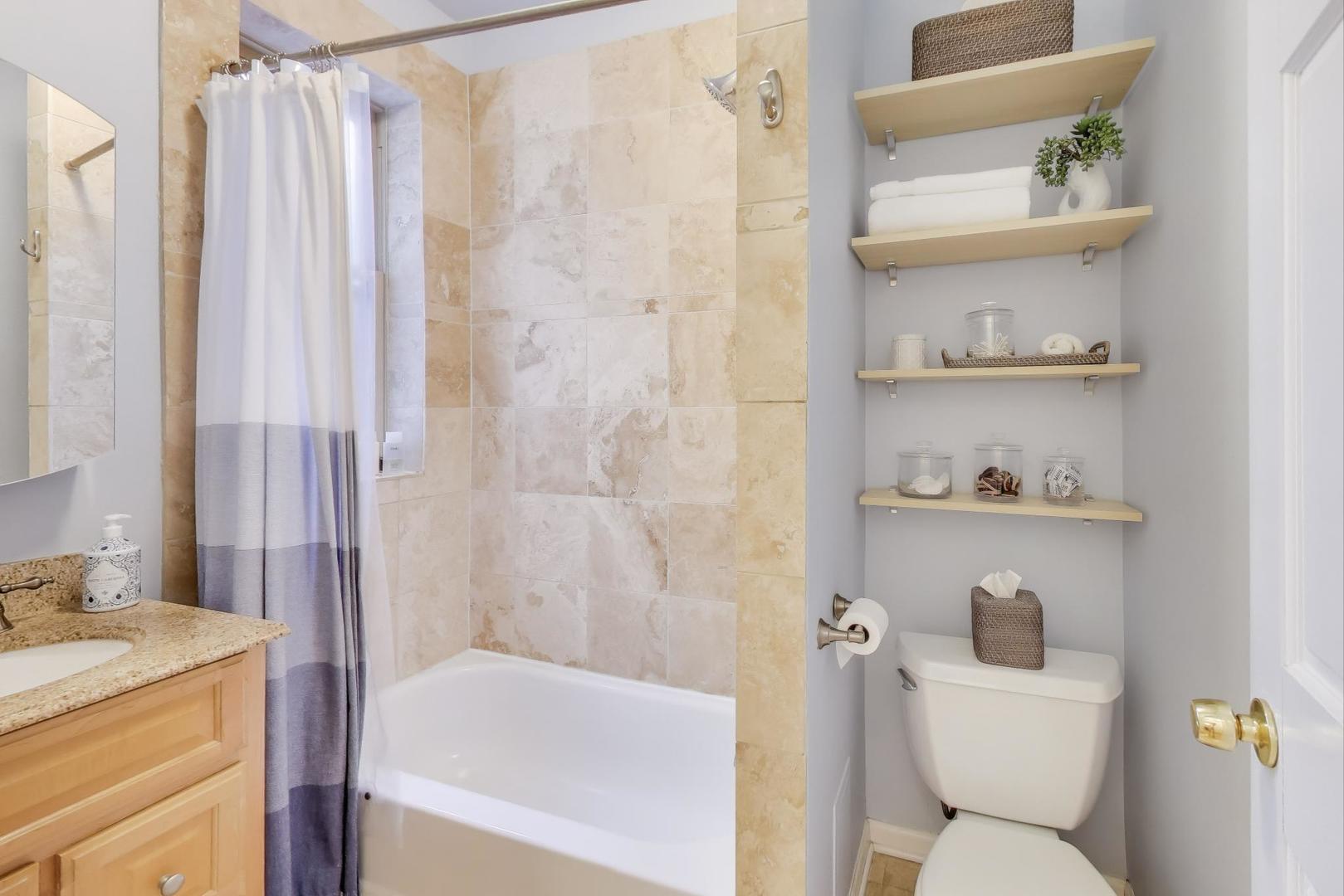 Fantastic 2-bedroom + office condo in a prime location just steps from the Brown Line & Irving Park bus. Thoughtful layout with no wasted space, featuring hardwood floors, nice natural light, & wooden shutters throughout. The kitchen offers wood cabinets, granite counters, ss appliances, & ample storage. Enjoy new gas-forced air heating & central air conditioning, in-unit washer and dryer, & plenty of closets. Includes shared backyard and exterior parking space. Conveniently located near restaurants, shopping, and neighborhood amenities. Floor plans are under additional information.