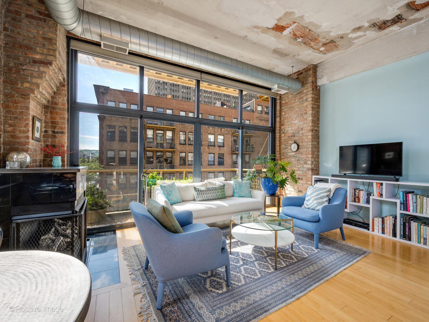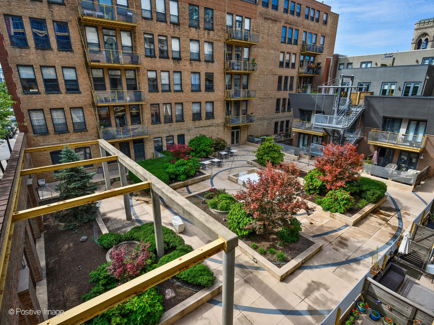 Discover the charm of this vibrant southeast corner loft condo, a two-bedroom, two-bathroom gem nestled in the Bank Note Place Condominium in the lovely Prairie District and close to Motor Row. Bathed in natural light, this residence was built in 1902, ensuring solid concrete foundation and an exceptionally tranquil atmosphere. Your expansive private balcony finished with a medal decorative railing, stretches along the length of the living room, offering serene views of the beautifully landscaped courtyard which won a prestigious award for its design when converted into residential loft condos. Balcony includes a natural gas line for a BBQ. The authentic industrial loft features: an inviting gallery foyer for art work and custom stainless bypass doors, complete with LG in-unit laundry for your convenience. The spacious kitchen is a dream for those who entertain, boasting an oversized 2 tier island and breakfast bar, including a Fisher& Paykel refrigerator w/Active Smart Technology, Kitchen Aid wine cooler, and Superba gas oven/range. Bosch dishwasher, 42″ solid cherry wood cabinets and finished with quartz counter tops. Large primary suite with large closet, bathroom 13 x 9, walk in shower/jet tub combination area, operable frosted window, stainless steel sink with 2 faucets and a separate toilet area which could be closed off if preferred for privacy. Bamboo flooring, exposed Chicago brick walls, 11 foot ceilings. Pet friendly building . One heated garage parking space included and a 3′ x 2.5′ x 11′ storage room on the same floor as unit. Both bedrooms are enclosed. Capital improvements Include: elevators have new mechanical and interior finish, roof had a new layer approximately 7 years ago, newer main hot water heater for complex, updated Fob system and code/key unit door system. Located on Indiana Avenue, a picturesque tree lined street, you’ll enjoy easy access to the Lakefront, Soldier Field, McCormick Place, Museum Campus, and convenient transit options, including the Green and Red lines with a CTA bus stop just around the corner. Trendy dining nearby.