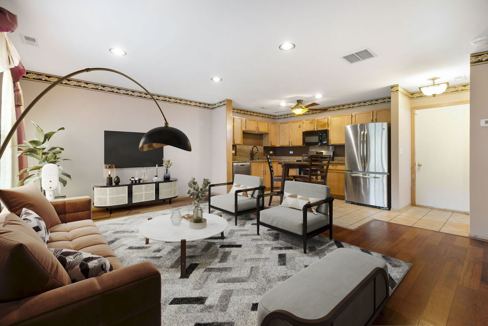 This beautifully cared-for and maintained townhome-style condo in Larkins Pointe has two spacious bedrooms, two baths and a two car garage. Features include recessed lighting and upgraded hardwood flooring on the main level, ceramic tiled floors in kitchen and both baths, and brand new plush carpeting everywhere else. The kitchen has oak cabinets, granite counter tops, and stainless steel appliances. Home has a 2nd floor laundry and includes the washer and dryer. Other features include newer roof, newer central air, lighted ceiling fans, all window treatments and a security alarm system. Finally, you’ll find brand new carpeting in all the carpeted areas. Convenient location to shopping, recreation, parks, schools, restaurants and expressways. This is the “Best Value” in Larkin’s Pointe!