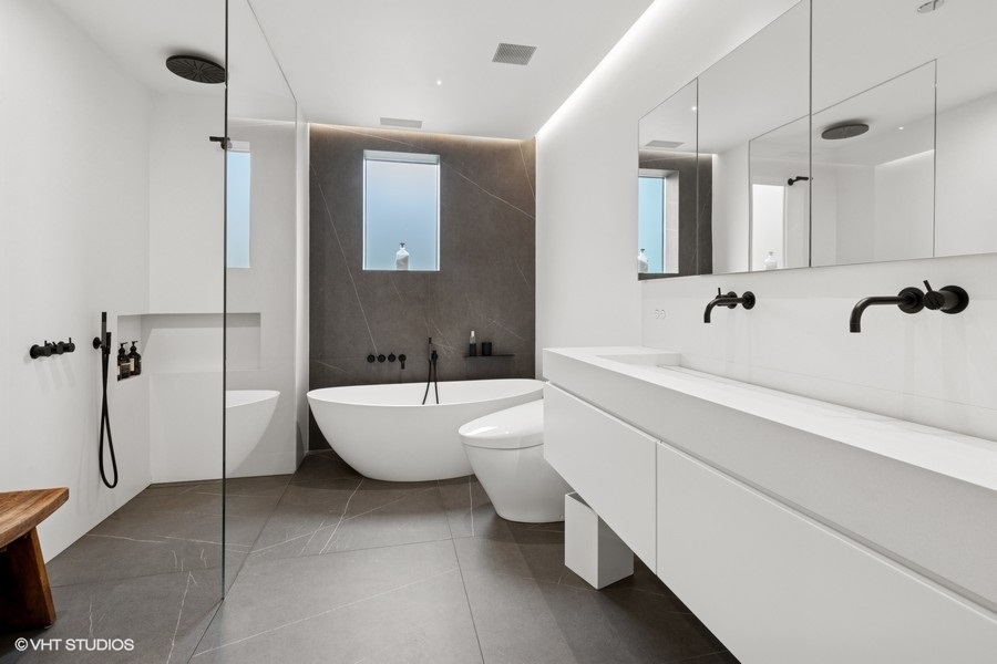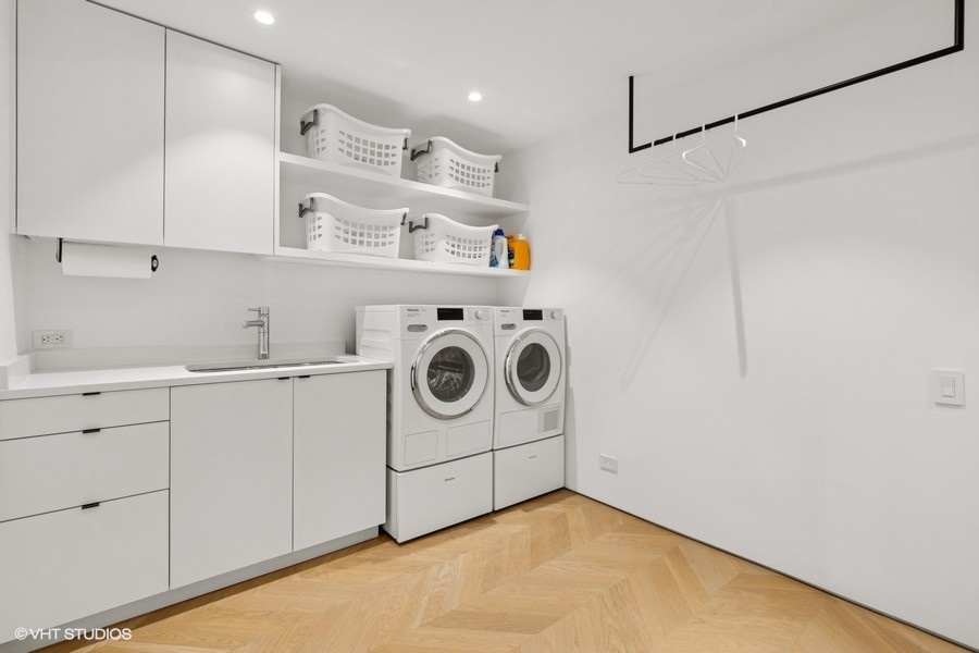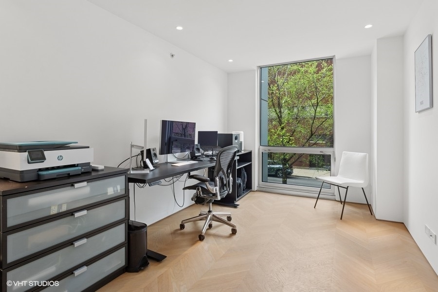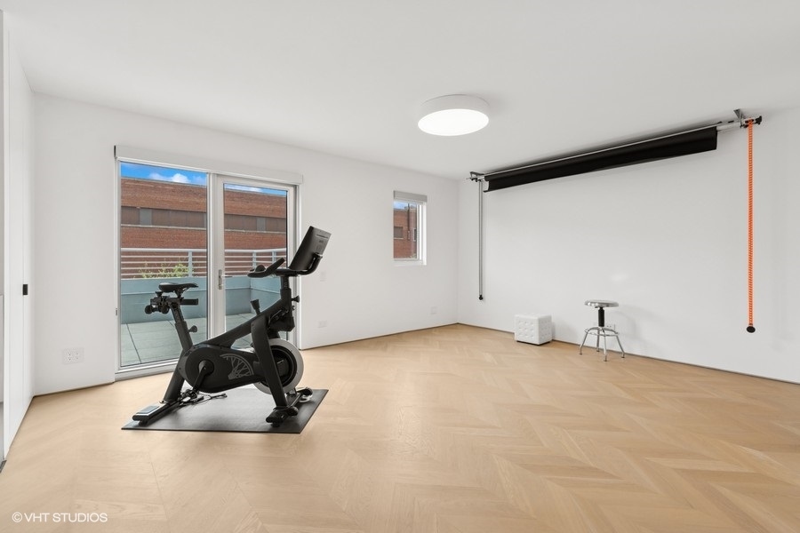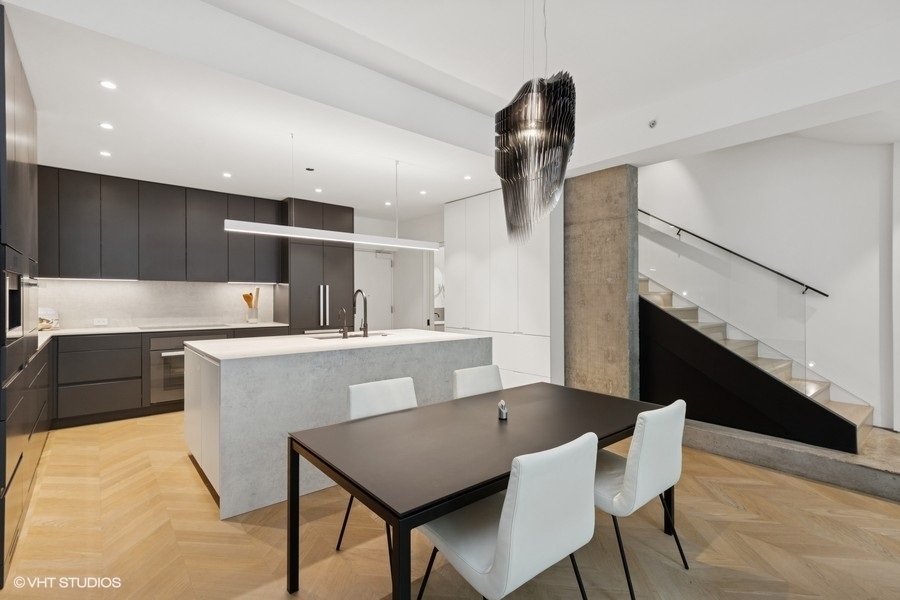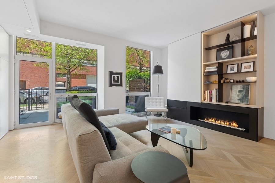Welcome to 1917 South Calumet Avenue, a stunning embodiment of modern luxury nestled in the Historic Prairie District of the South Loop. This impeccably designed three-bedroom, two full and two half bathroom townhome boasts an expertly crafted living space with completely customized modern touches. Features include heated herringbone hardwood floors on all levels, an inviting 60-inch vent free gas fireplace with custom shelving, minimalistic dimmable LED lights throughout, and automatic window shades. The expansive living and dining area offer a seamless blend of style and functionality. The chef’s kitchen is a culinary enthusiast’s dream, featuring high-end Miele appliances including the induction cook top, 24-inch combi steam oven, 30-inch convection oven with steam function, hood venting (that vents out), and built-in coffee system, plus sleek finishes like the Dekton countertops. Multiple outdoor spaces invite you to unwind, offering a serene retreat. A highlight of this home is the full-floor primary suite, an oasis of tranquility complete with a spa-like ensuite bathroom with free standing tub, rain shower, heated floors, Japanese Toto toilets with wash-let, and Vola fixtures throughout all of the bathrooms. This luxurious space offers unparalleled privacy and comfort, providing an exquisite escape within your own home. Two more spacious bedrooms and thoughtfully designed laundry room conveniently located on the same level. Top floor family room, media room, or gym is the prefect versatile added living space with access to the private terrace. Residents have the option to enjoy an array of amenities including a doorman service, fitness center, and rooftop pool. One heated garage parking space included in list price and second space available for 35k, spaces include an EV-charger. Additional upgrades throughout the unit include Heat & Energy Recovery ventilator for fresh air in the primary bedroom, Mitsubishi Mini-Split system with one air handler for each level, staircase foot lights, laundry shoot, 10 base T Ethernet outlets throughout the house and more! Excellent Prairie District location with parks nearby, Museum Campus, the Lakefront Trail, and many wonderful shops and restaurants, with convenient access to the Loop, public transportation and expressways and steps from the EL trains.