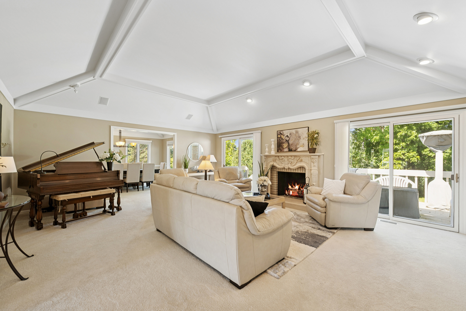 Your next home is this one in Inverness on the Ponds, a highly-desirable, gated community. Lovely 2400 sq. ft. ranch home with a full, finished basement. Kitchen features a fireplace, high- end appliances, granite counter tops, subway tile back splash, beautiful mahogany flooring, undercabinet lighting, white cabinetry with pullout drawers, plenty of pantry space and access to the side deck. An Italian marble mantel on the great room fireplace is stunning, making it the focal point of the room. The open floor plan great room and dining room feature a bay window, dramatic tray ceilings, and access to the large, back deck with mature tree views. In addition to a large, updated first-floor laundry room/mudroom with plenty of storage, conveniently located off the garage, this well-designed home features a main-floor powder room and two spacious main-floor bedrooms. Each bedroom has its own full bathroom. The master bathroom includes a walk-in closet and heated floor. The full English basement includes a large recreation room complete with wet bar and refrigerator, large L-shaped bar with seating for seven plus, powder room, third bedroom with full bathroom, workout room, workshop and large storage areas. Other home features include hot water circulator pump; battery backup sump pump system; new hot water heater, furnace and A/C; heated garage, larger garage; gutter guards and upgraded landscaping. Don’t miss this one!