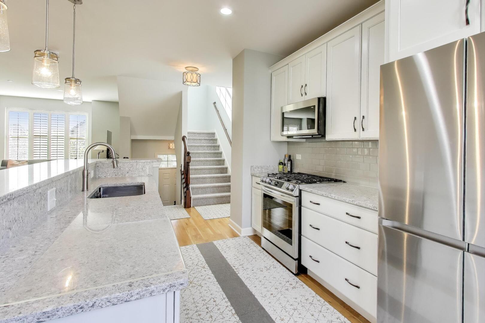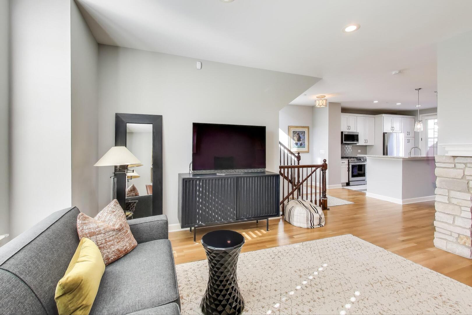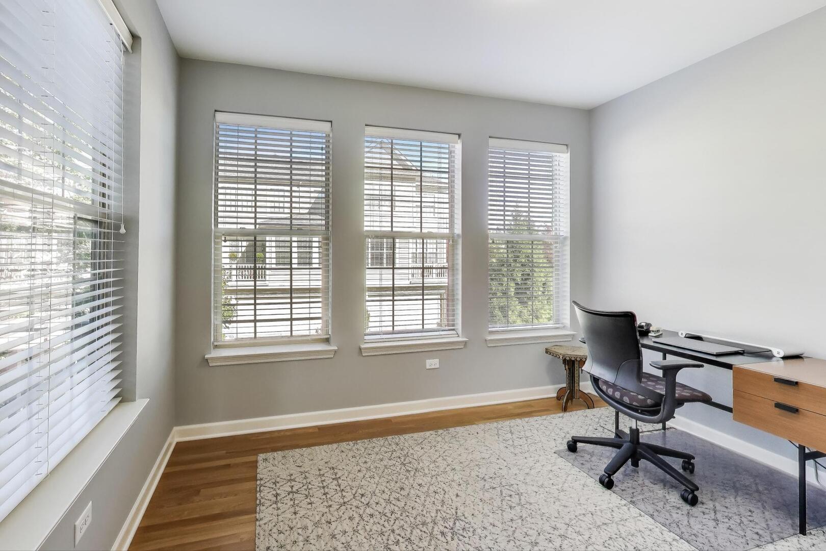 Amazing South facing light-filled townhome in a Premier Westgate at the Glen location with views of the city skyline master bedroom . This home is ready for you to move-in and enjoy. Many updates since 2021 : New Kitchen SS appliances, tiled backsplash, New LG W/D, New front storm door, hardwired ring doorbell, New Smart Liftmaster Garage door with camera, EV 50 amp charging, Family room Cali Vinyl Floors, New Commercial grade carpet on stairs, Refinished hardwood floors , New hardwood floor in primary bedroom and office added , All bedroom organized closets, New plumbing fixtures, Stained Deck, all mechanicals serviced twice a year, plantation shutters, new recessed can lighting, Painted .The kitchen comes complete with white shaker cabinets, granite countertops. The huge center island features a raised breakfast bar with room for six stools and three pendant lights above. The kitchen opens to a spacious dining area with a modern light fixture. Conveniently located near the kitchen/dining room is a great flex space with neutral decor, and lots of windows. This room is perfect for an office or kids’ playroom. A set of French doors leads from the kitchen to a spacious balcony. The second level of the home has three bedrooms and two full bathrooms including a master suite with two hanging closets and an en-suite bathroom with a stand-up shower and large vanity with plenty of storage and quartz countertop. The additional two bedrooms share a hall bathroom with a tub/shower and vanity with granite countertop. In addition, there is a conveniently located washer and dryer on this level. Further expanding the living space is a large lower-level family room with neutral decor, full size windows for natural light in addition to overhead recessed lighting. The lower level offers direct access to the attached heated two PLUS car garage that is drywalled and has an epoxy floor. The GLEN is the BEST location in Chicago north suburbs : 2 GOLF courses, Paddle Ball, Train, Town, Parks, Lake, Retail, Community Center, School, Grocery, Costco and Whole Foods just minutes away. Fast onto 294 and 94 highways. Great for all!
